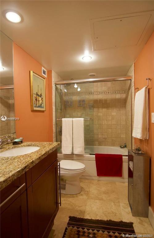 Tastefully remodeled Studio with large open kitchen, Spacious bedroom with walk-in closet. Large bathroom completely remodeled. Lots of storage space and roomy living area with great view of Miami Beach, Bay and Miami Skyline. World Class amenities and literally steps to the beach. Unit is convenient to elevators, laundry and trash chute. Building is in the process of completing extensive interior upgrades making the Roney a world class building.