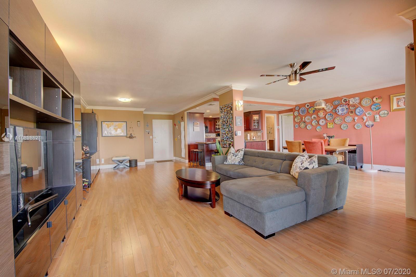 Beautifully updated 1218 Sq. Ft. open floor plan with magnificent $$$$ views, sunsets, intracoastal and plenty of boat action. The kitchen is opened and richly done with designer cherry cabinets, granite counter, free hanging stove fan, stainless appliances, bonus washer/dryer, plus views to die for. Large master with Jacuzzi bath, walk-in-closet, floor to ceiling windows thruout, impact sliding doors to 10x12 balcony, hurricane shutters and a beautiful guest bath, BRAND NEW A/C. There is a bike room, full gym, personal storage bin, heated pool, ocean across the street, Hollywood broadwalk and all its fun, a short walk. Rent 1st year per cap rate, 15Lb. dogs OK. Great price!
