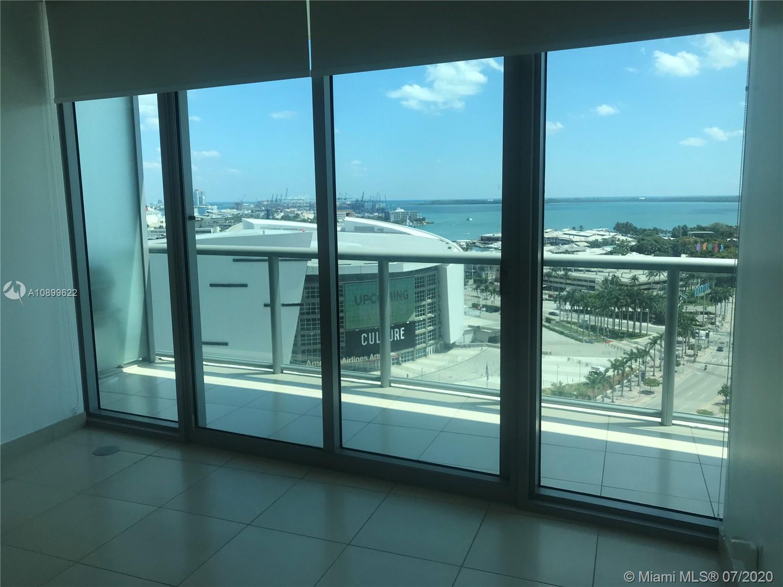 Amazing open bay & city front views great Downtown Miami location in front of American Airlines Arena and Cruises Port, spacious 1/1.5, plus den, tile flooring, high ceilings, impact windows, contemporary kitchen, stainless steel appliances. All the amenities you will need to have a luxurious life: State of the art fitness center, two beautiful swimming pools, party room, convenience store, business center and 24 hour secured lobby. Close to Metrorail stations, highways, museums, shopping, parks, banks, restaurants and night life