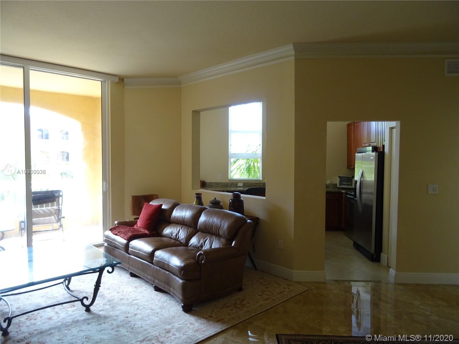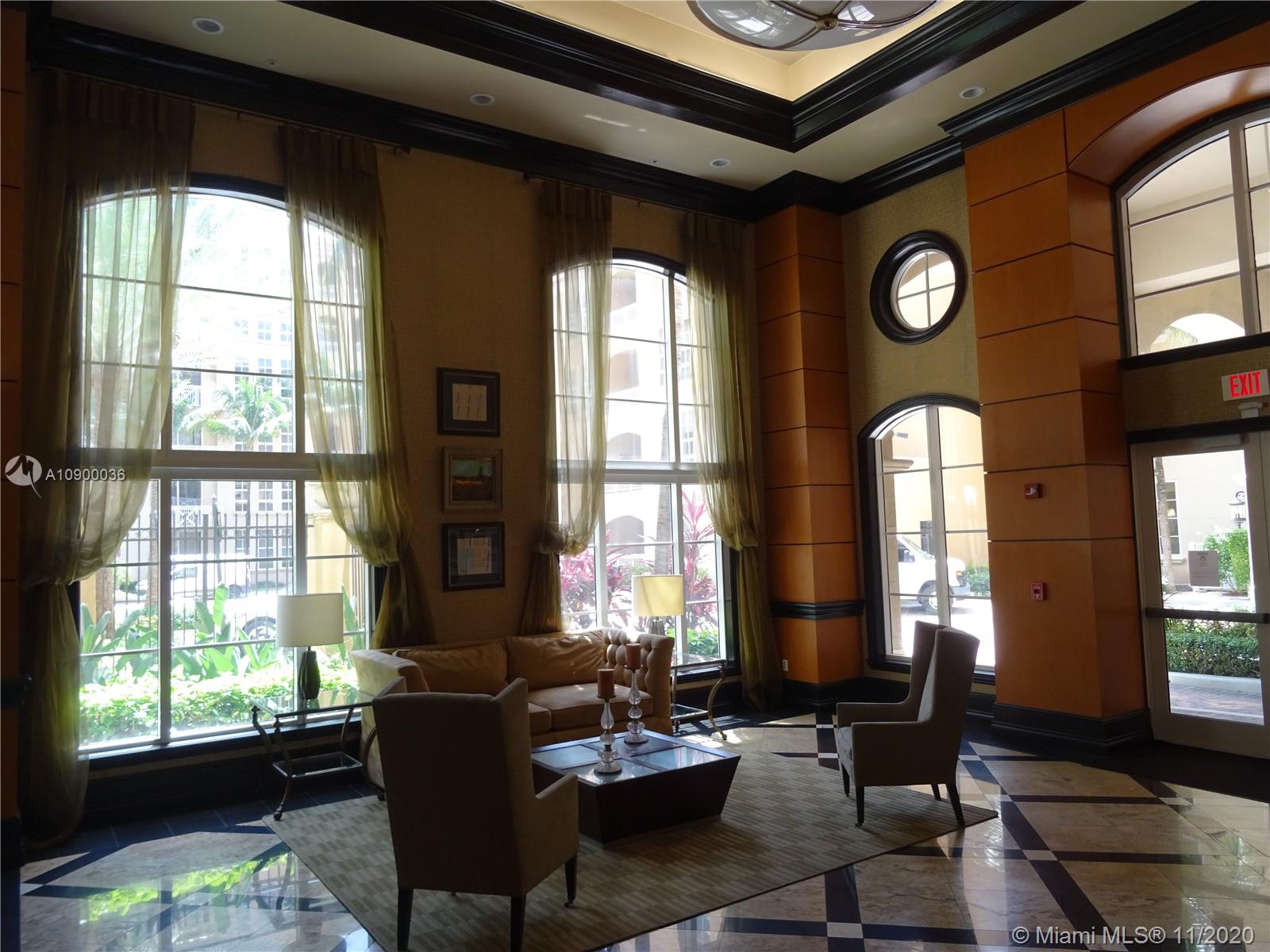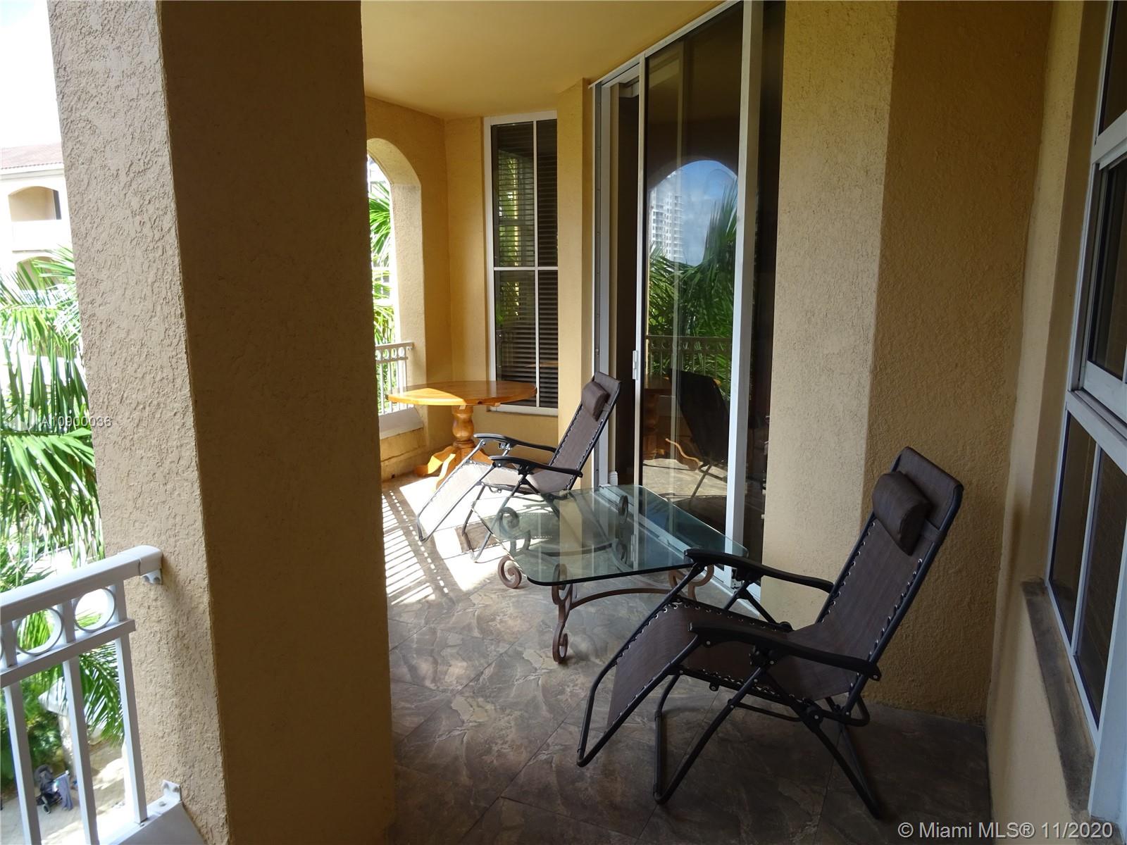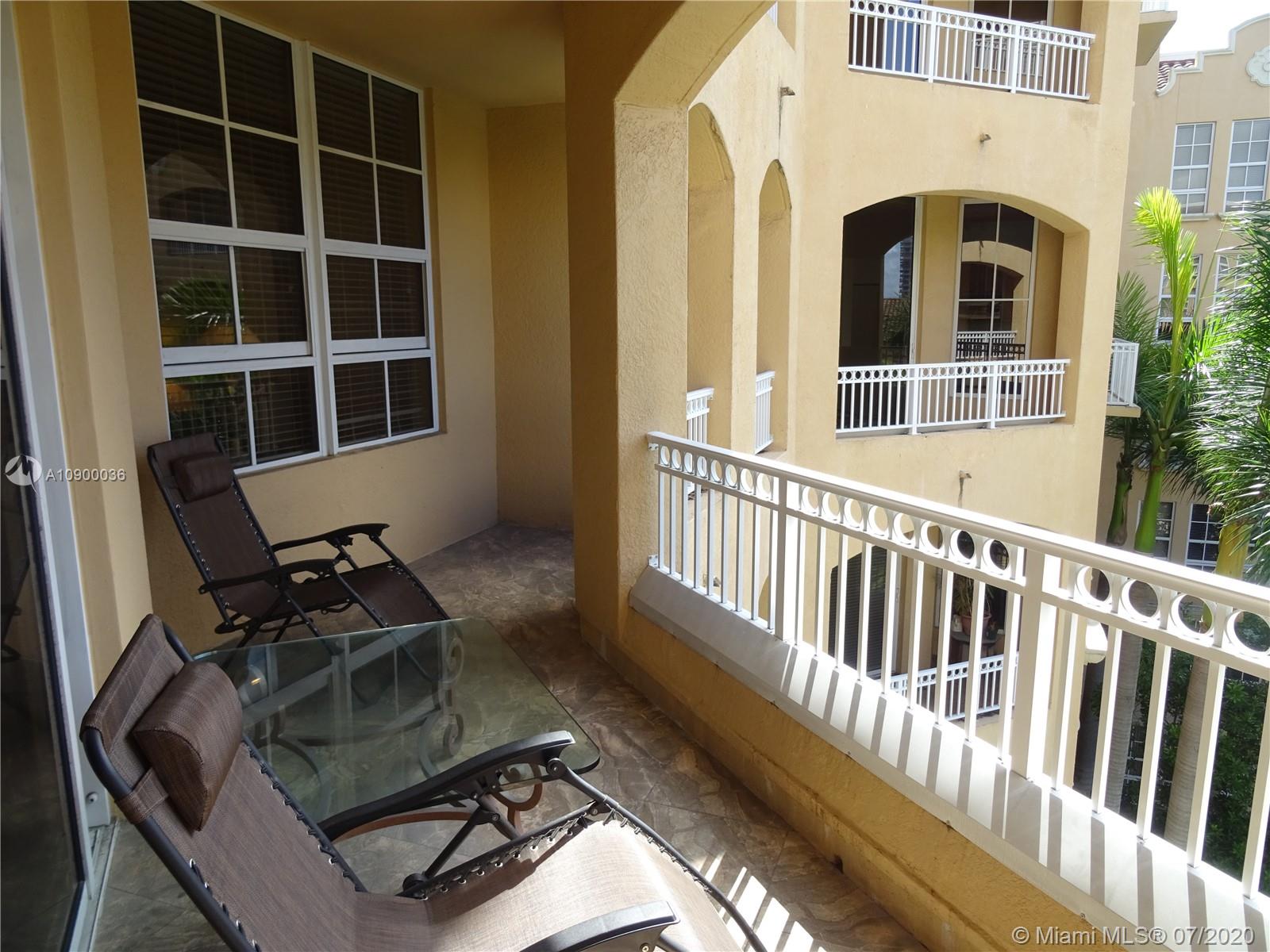 INVITING and spacious 2 beds 2 baths (1,343 sq.ft. - plus 2 terraces) residence located on the 5th floor with 10' high ceilings, fantastic floor plan w/ split bedrooms overlooking the pool area in the beautiful City of Aventura. Move-In Condition, Open kitchen with granite countertops, cherry wood cabinets, stainless steel appliances, huge bathrooms. Washer and Dryer inside of the unit. Alaqua is a Mediterranean style waterfront, gated community in a great location, great schools, house of worship, parks, just minutes away from the Aventura Mall and THE BEACH. Pets & Rental OK. 2 assigned/covered parking spaces & awesome amenities: tropical lushly landscaped pool area, Gym , Community Room and much more…