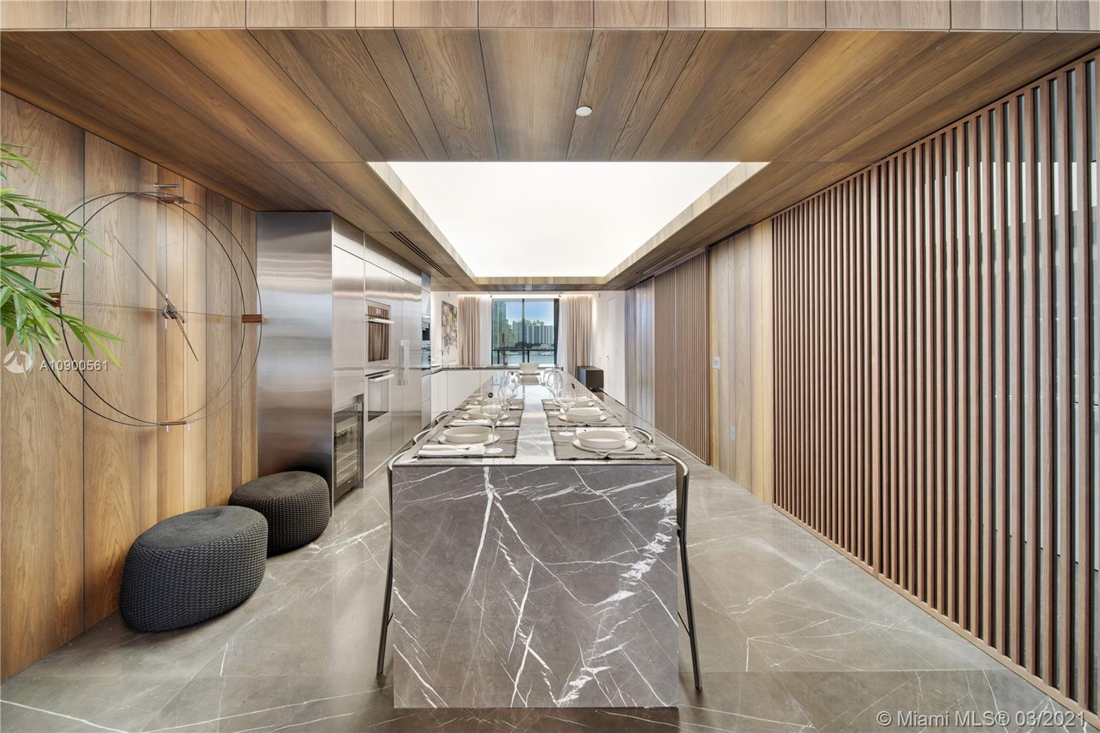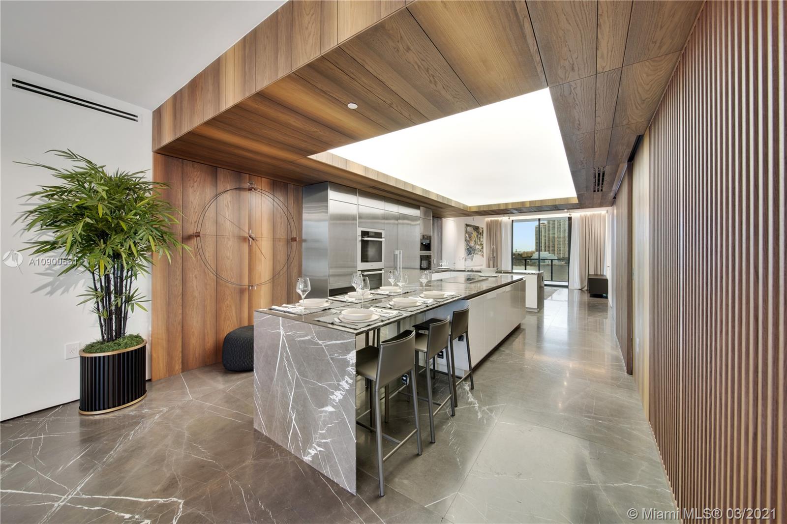Explore this impressive, turnkey unit at Prive Aventura. Three bedrooms + four-bath + maids quarters with bathroom attached + powder room. Finest Italian furniture and finishes: imported Italian furniture, Rimadesio doors, Italian closets, custom made Italian panels - just to name a few. Rare Italian marble throughout the unit and wood flooring in the bedrooms. Many upgrades: improved kitchen with Miele appliances, all AC ducts upgraded to linear diffusers, dropped ceilings with LED lighting, blackouts, and custom window treatments throughout the unit. Don't forget to check out the virtual Video Tour. Call now to schedule a showing!