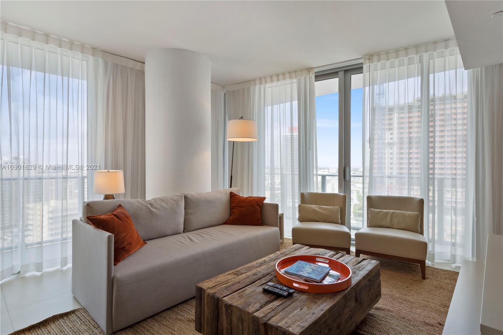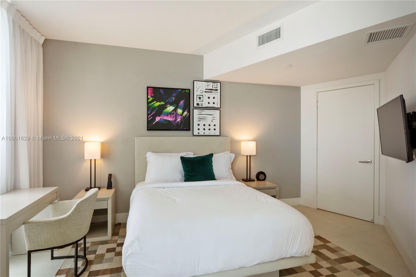 Right on the beach, CORNER UNIT with ocean and city views, wrap around balcony, fully furnished and decorated, spacious floor plan, washer and dryer, plenty of closet space plus owner's closet that can be kept locked while renting. High demand for short term rentals at AIRBNB. Sophisticated condo hotel and resort. Beautiful and convenient amenities including a restaurant, cafe, pool, spa, gym, store, beauty salon and beach service. This unit can be rented by owner with no restrictions or included in the hotel program. More details provided upon request.