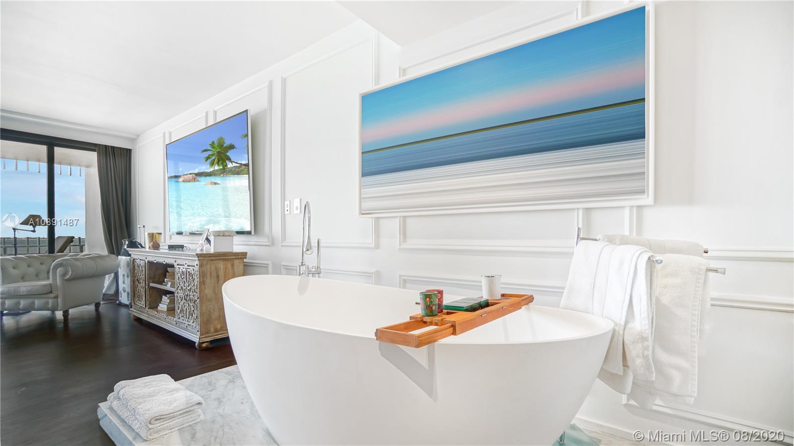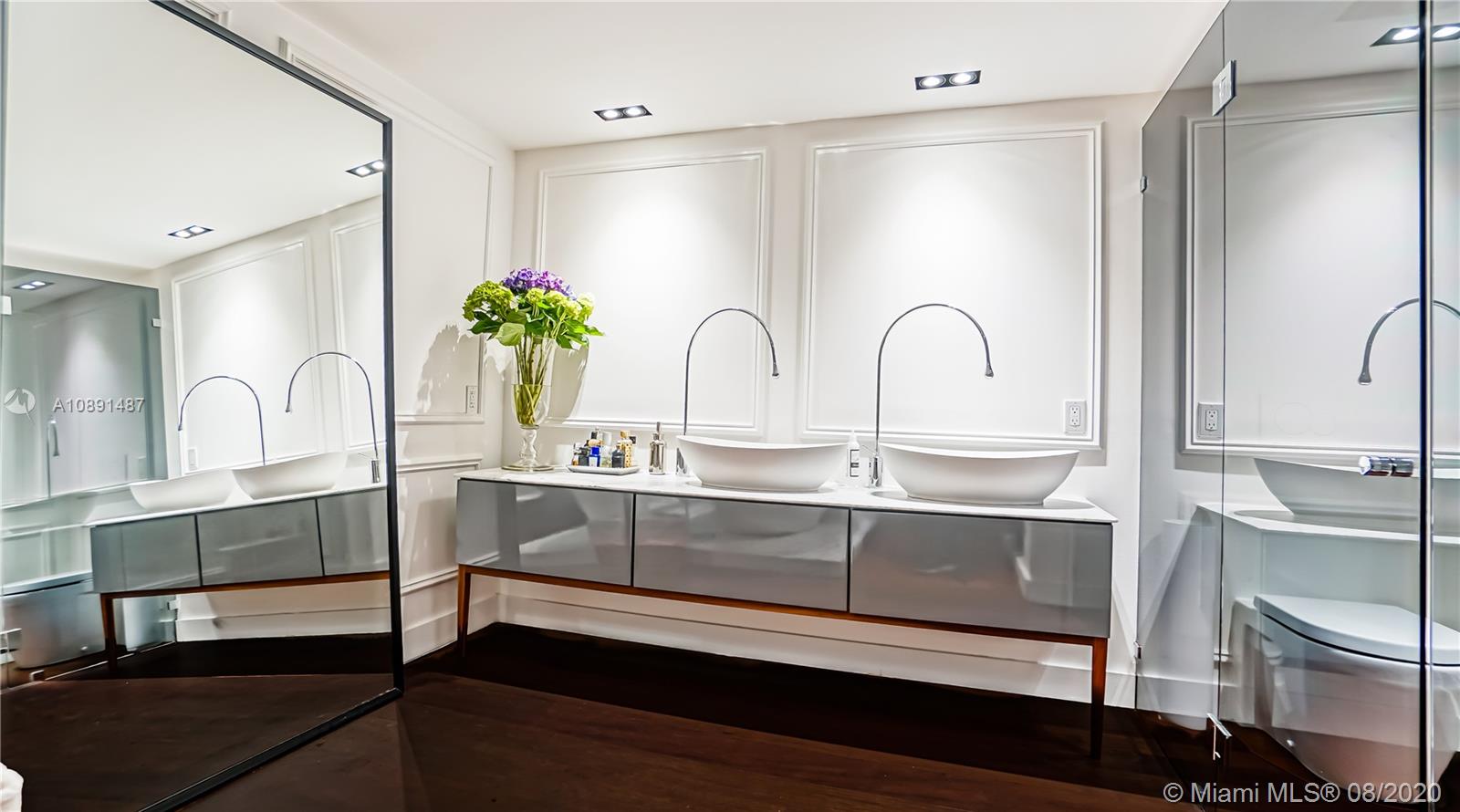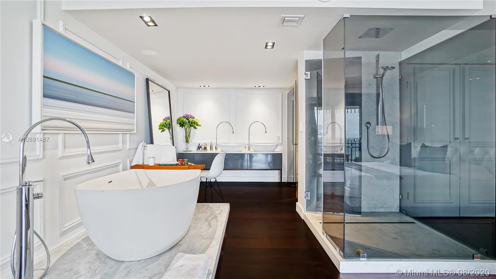 This One-Of-A Kind Spectacular residence is immaculate and move-in ready. Appraised at 1.4 Million, the 2/2.5 NE corner unit can be easily converted back to a 3/2.5. Exquisite custom interiors are enhanced by amazing Bay and Downtown Miami Skyline views. Elegant foyer, spacious living and dining room. Modern custom Poggenpohl designer kitchen, Sub-Zero, Wolf & Gaggenau appliances, and stylish breakfast nook. Stunning, expansive Master Suite with oversized, custom walk-in closet and private balcony overlooking the Bay. The residence has raised ceilings, impeccable architectural details and Brazilian Cherry hardwood floors throughout, custom built-in cabinetry, Europhase LED Lighting, motorized shades and more. Ultimate Luxury Living on a Private Island with world class amenities and Marina