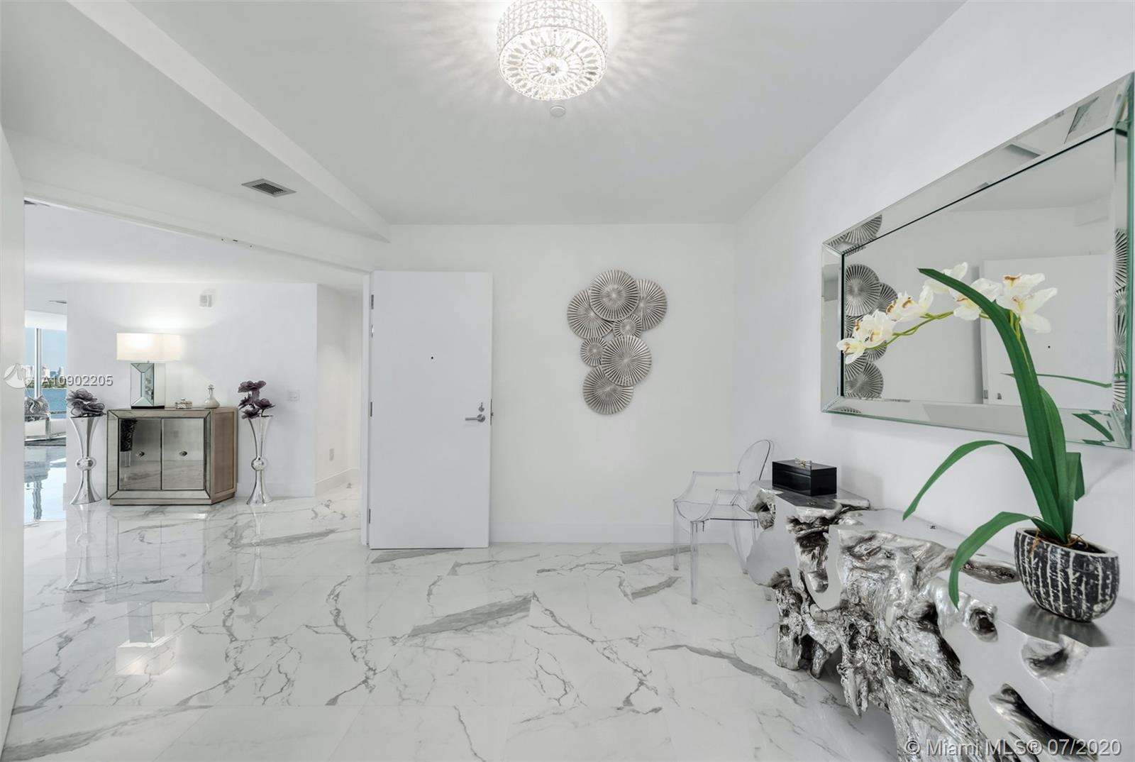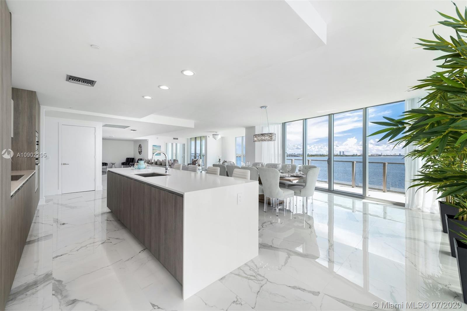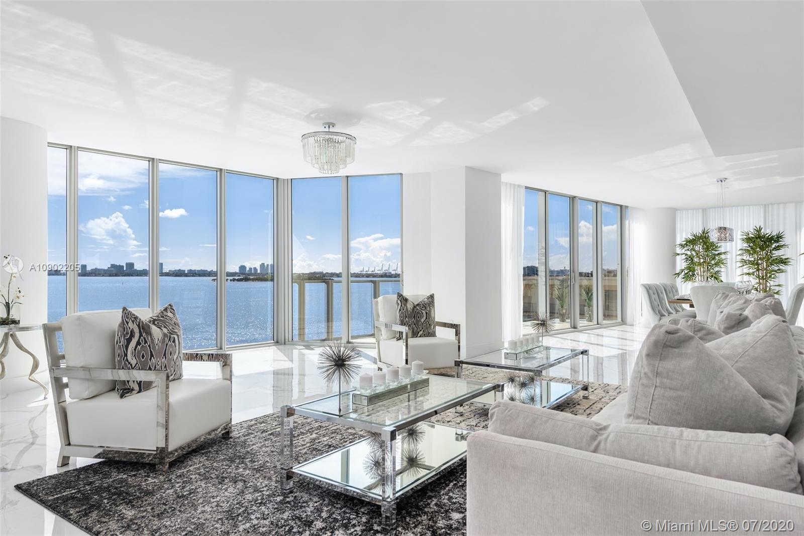 Enjoy unobstructed bay & Miami Beach views in this stunning residence in coveted Biscayne Beach. Enter this 4,473 SF residence through a private foyer that opens to breathtaking Biscayne Bay views w/80 linear ft. of living space facing directly east to the bay, floor-to-ceiling windows, 5 bedrooms, 5 full bathrooms & 1 half bath. Luxurious features incl captivating porcelain flrs, gourmet chef's kitchen with top-of-the-line appliances & 2 balconies overlooking the water. Oversized master w/sitting area & spacious closets in all bedrooms. Resort-style amenities that incl beach club w/cabanas, summer kitchen, 2 pools, jacuzzi, restaurant, lounge rm, theatre, business center, fitness center. Two reserved (side by side) parking spots –steps from your private vestibule on the same level.