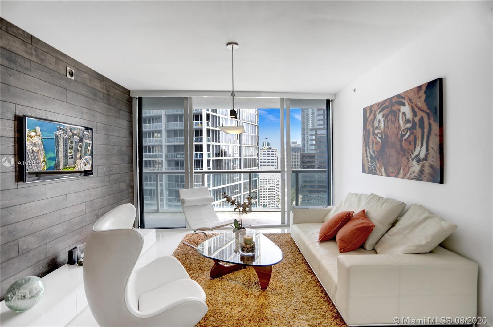 Iconic building on Brickell like no other! This inviting corner unit has a split bedroom plan finished with custom made wood doors and closets. Beautiful 24 x 24 white flooring throughout, top of the line appliances, assigned parking space and electric shades with blackout in bedrooms. Access your expansive balcony from every room and enjoy bay views to the East, the Brickell skyscrapers to the South and the Miami River to the West. With fine dining like Cipriani Italian Restaurant and Cantina La Veinte, over the top amenities like the IconBrickell Spa, three infinity pools, poolside lounge service, 24hr valet, state of the art fitness center, protected green spaces on either side of complex and more, there's no other place to live but at Icon Brickell!