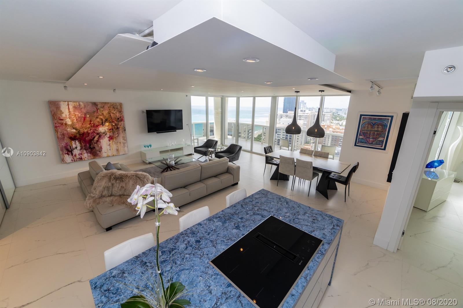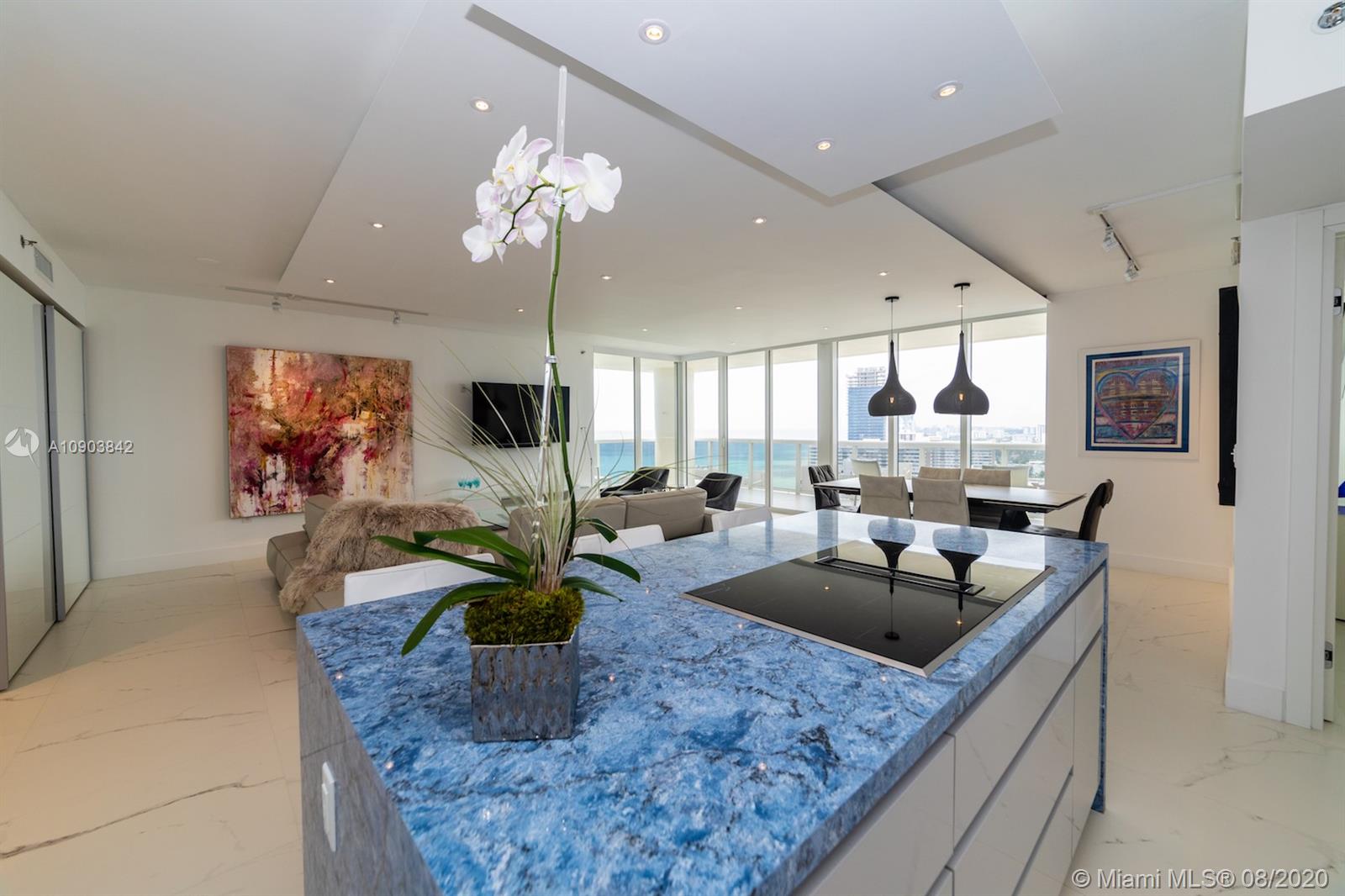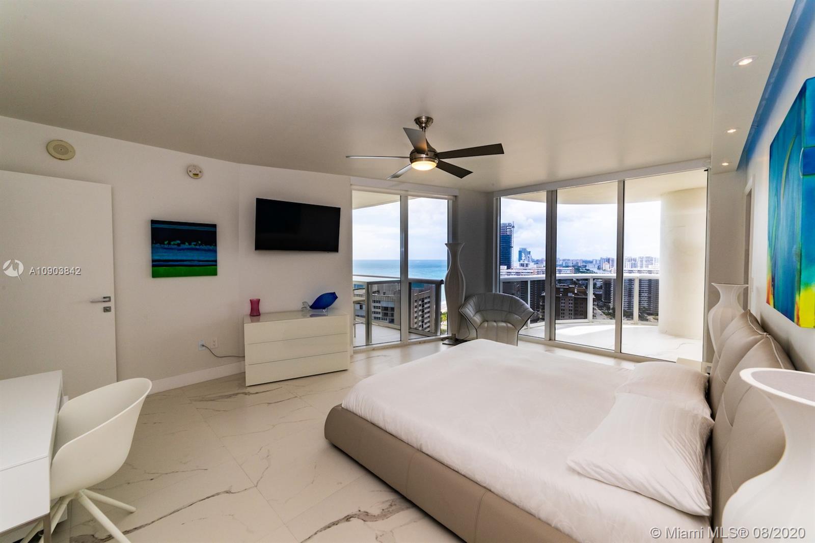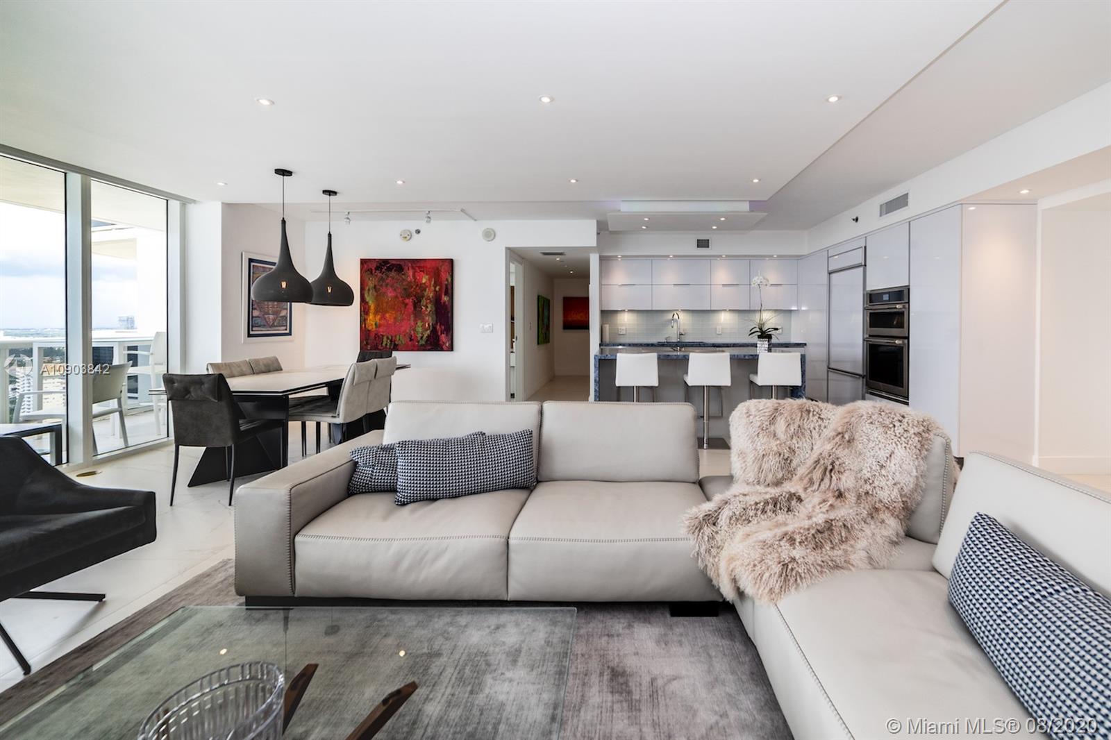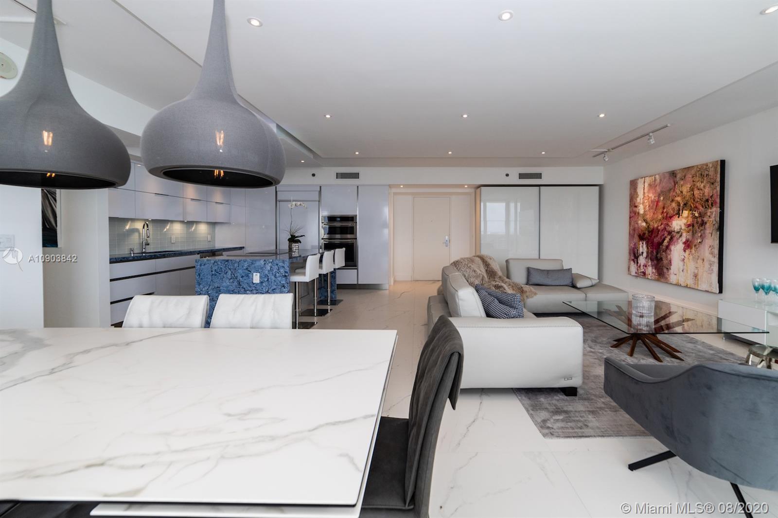Amazing opportunity, one of a kind completely remodeled corner 2 bedroom, 2 baths SE/W exposure with stunning Ocean and Intracoastal unobstructed views from every angle including 2 balconies . With over $200,000 in upgrades, unit features marble floors, upgraded kitchen with marble counter tops, all new appliances including washer and dryer, new bathrooms, custom lights, drop ceiling, custom fans, electric window treatments, spacious and open layout , great for entertaining, large walk in design closet. Top of the line furniture available for sale. 5 star Luxury building offering 3 pool decks with stunning ocean views and lounge chairs with umbrella services at no extra charge. Pool restaurant with room services, 50,000 sq.ft. fitness center overlooking the ocean,