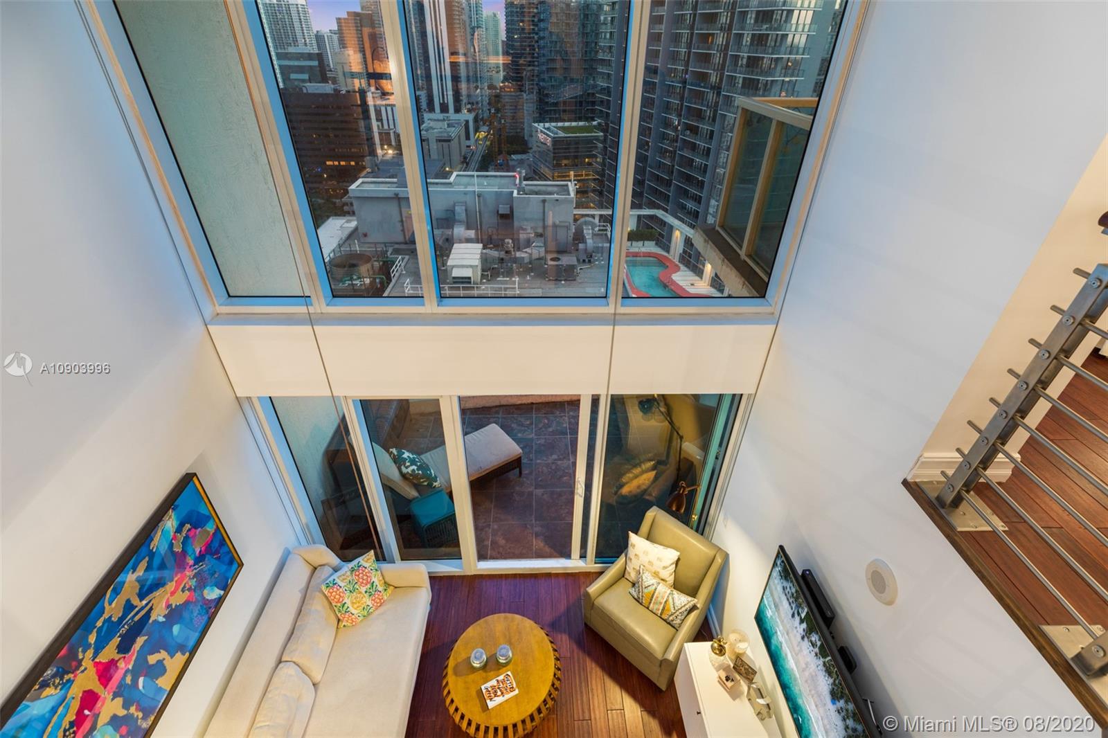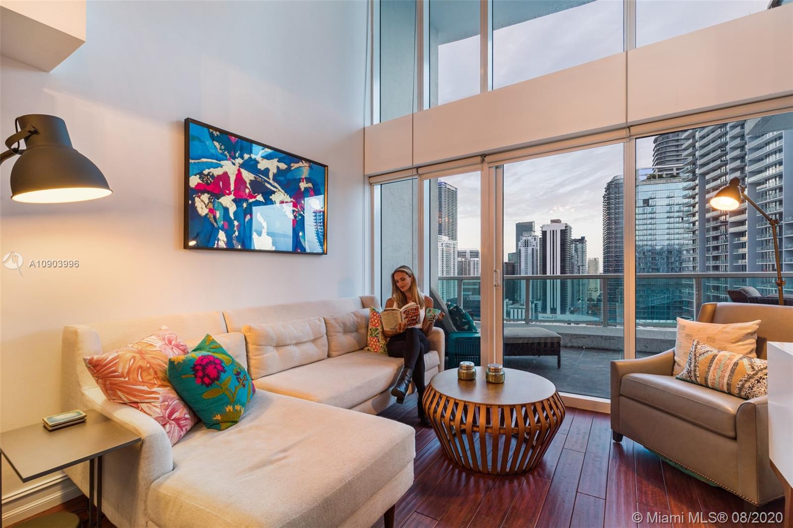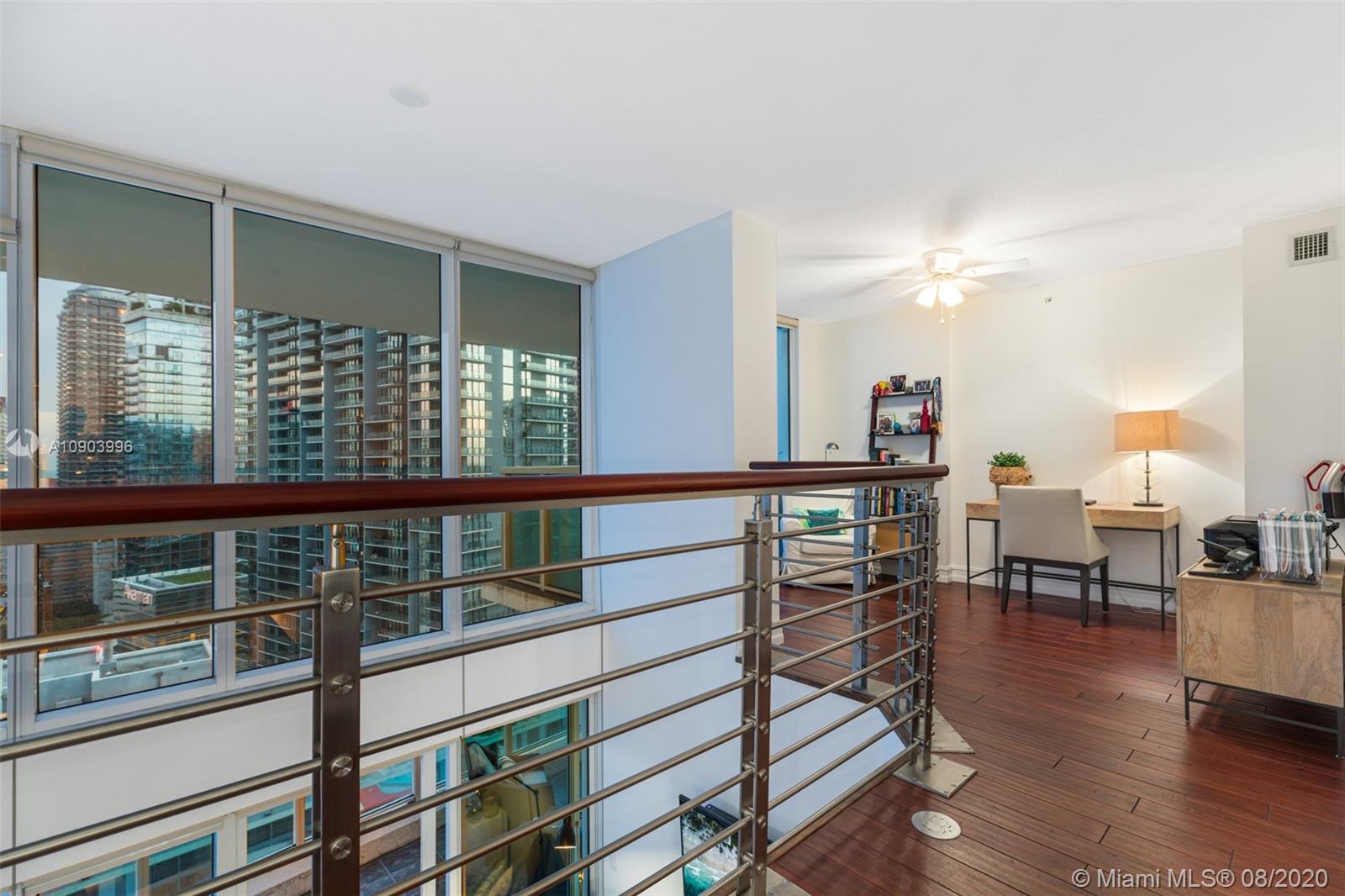 Turn the key to the Lovely Loft - the cutest 2/2 with a huge double story balcony and extra den/office space. Because of the double-height ceilings, this “18th floor” unit is really on the 36th, giving residents magnificent, unobstructed Brickell views. What makes this 1,402 SF unit different is the amount of storage - 6 closets including a large area under the stairs. The open master bedroom upstairs overlooks the living space downstairs, and there is a spacious nook that can be used as an office space or seating area. Namely, Brickell on the River is in a prime location - in the middle of the action but also on a large lot with a riverwalk, a restaurant, and metro access. Residents love the luxurious feel and the amenities, including 2 infinity pools and 5 level fitness center.