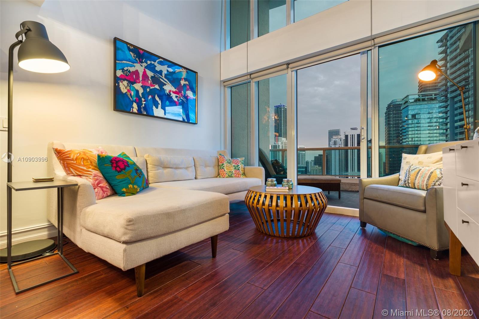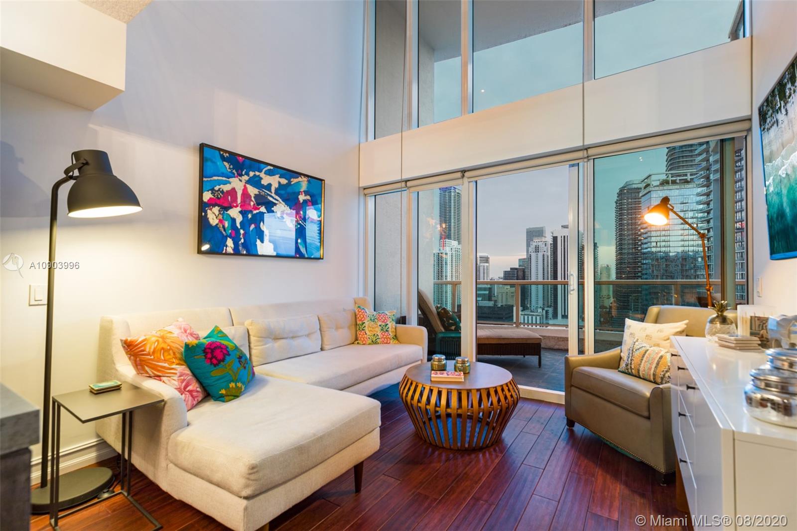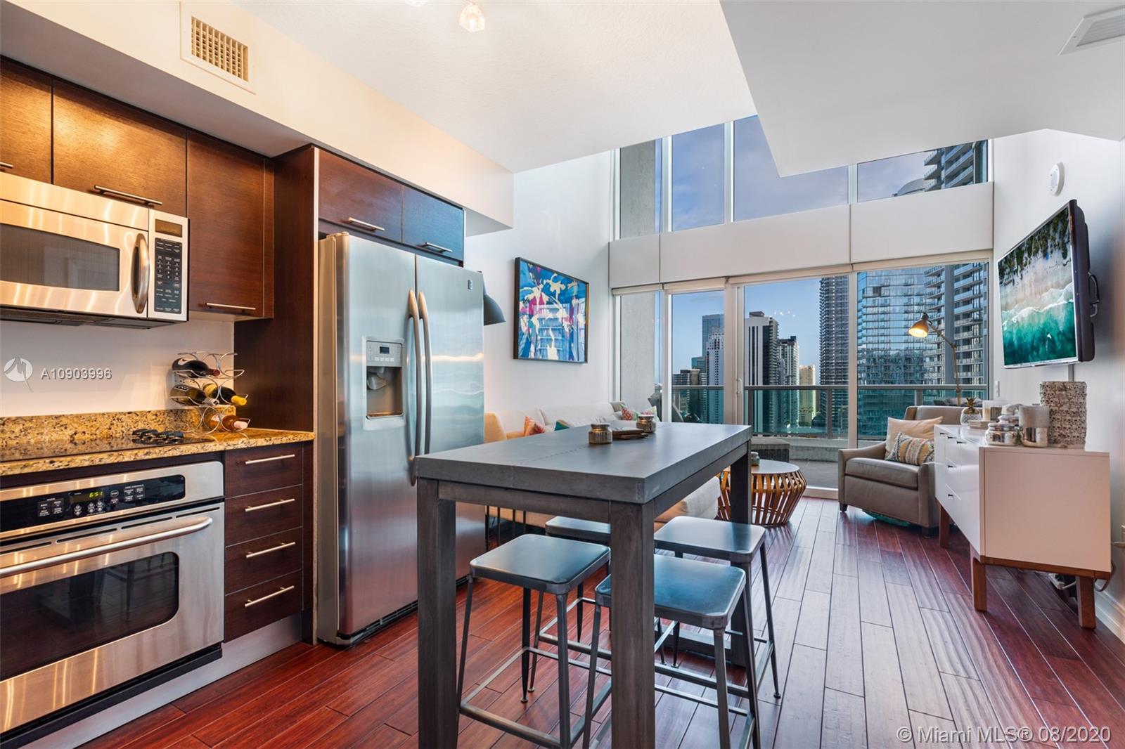 Turn the key to the Lovely Loft - the cutest 2/2 with a huge double story balcony and extra den/office space. Because of the double-height ceilings, this “18th floor” unit is really on the 36th, giving residents magnificent, unobstructed Brickell views. What makes this 1,402 SF unit different is the amount of storage - 6 closets including a large area under the stairs. The open master bedroom upstairs overlooks the living space downstairs, and there is a spacious nook that can be used as an office space or seating area. Namely, Brickell on the River is in a prime location - in the middle of the action but also on a large lot with a riverwalk, a restaurant, and metro access. Residents love the luxurious feel and the amenities, including 2 infinity pools and 5 level fitness center.