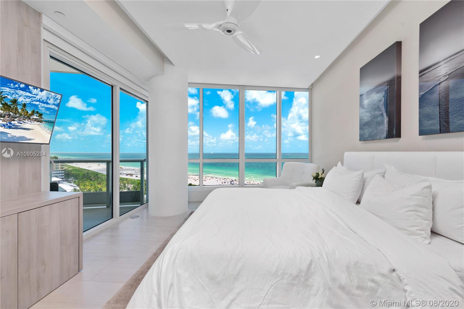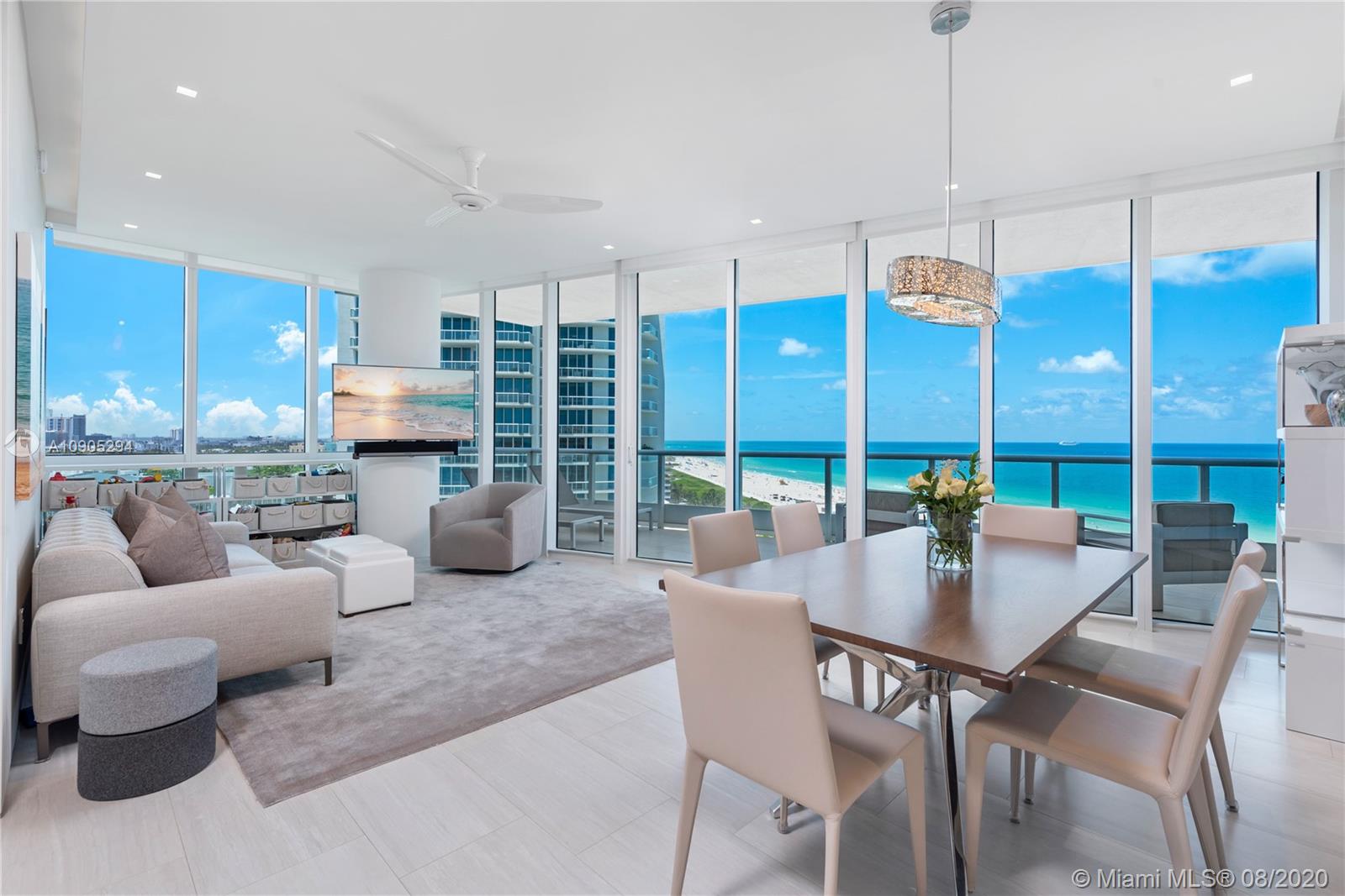 Meticulously and completely remodeled with the finest elements and a streamline minimalist design, the luxe condo perfectly frames some pretty stunning ocean views. Entertain or relax in the spacious living dining area with custom designed open kitchen featuring a porcelain island, Miele refrigerator, convection ovens. An oversized oceanfront terrace overlooks the South Beach coast line + the iconic tip of South of Fifth, ushering in the parading cruise ships. Continuum offers its residents a unique lifestyle within a private 12.5 acre beachfront oasis. An al-fresco Italian restaurant, beach club +lounge service, tennis club with Har-Tru courts, two freeform pools, 18K SQFT gym, lap pool, spinning +Pilates all offer a lifestyle of wellness.
