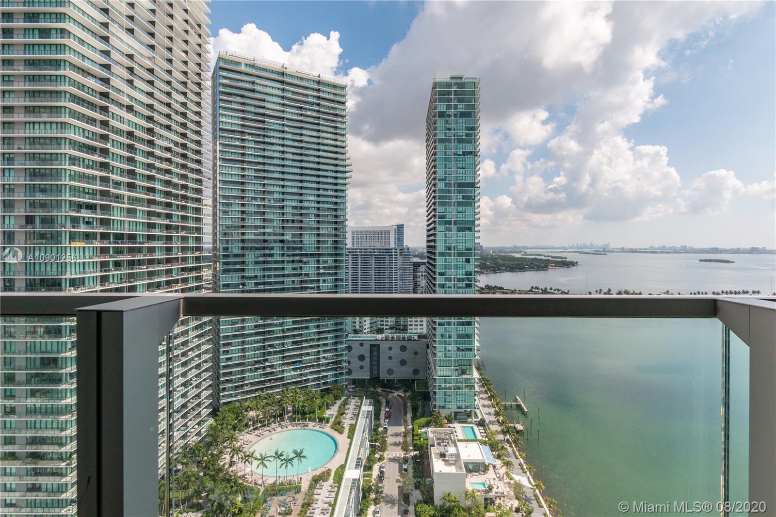 Stunning 3 bedroom + den, 4 bathroom corner unit situated at the luxurious Biscayne beach building in Edgewater. Enjoy breathtaking views of Biscayne Bay while being a step away from the most vibrant locations in Miami. This amazing unit has been designed by Luciana Bueno, featuring wood panels, woodwork, electric shades, porcelain floor imitating wood, top of line appliances and staggering finishes throughout. Full of natural light this high ceiling unit has 2 parking spaces. Delight yourself in luxury amenities, which includes full service beach club pool, 2 pools, vallet parking, concierge, beach cabanas and lounge areas, fitness club and spa, 2 tennis court, basketball court, party room, bbq area and great room with library, theater and pool tables.