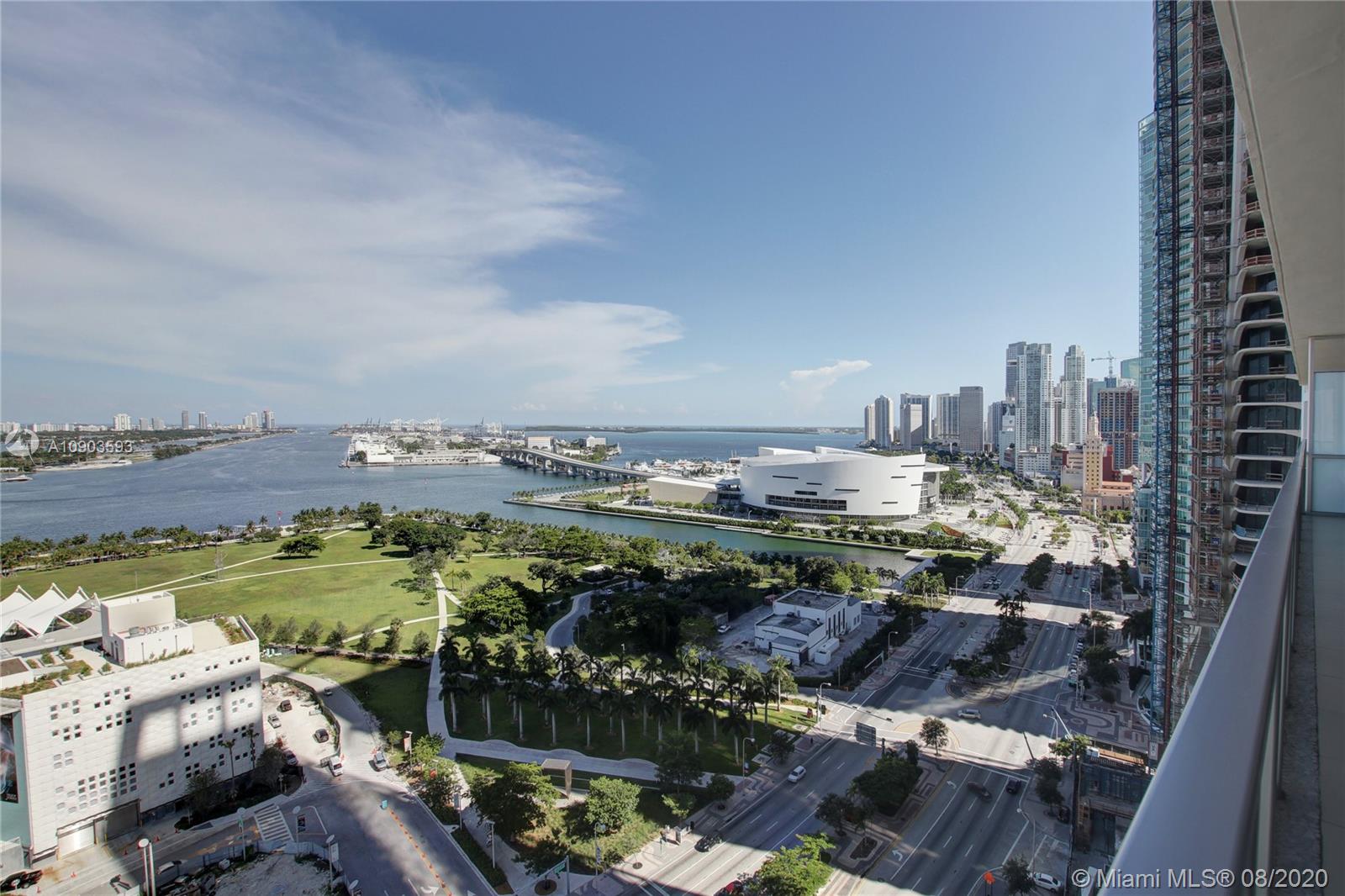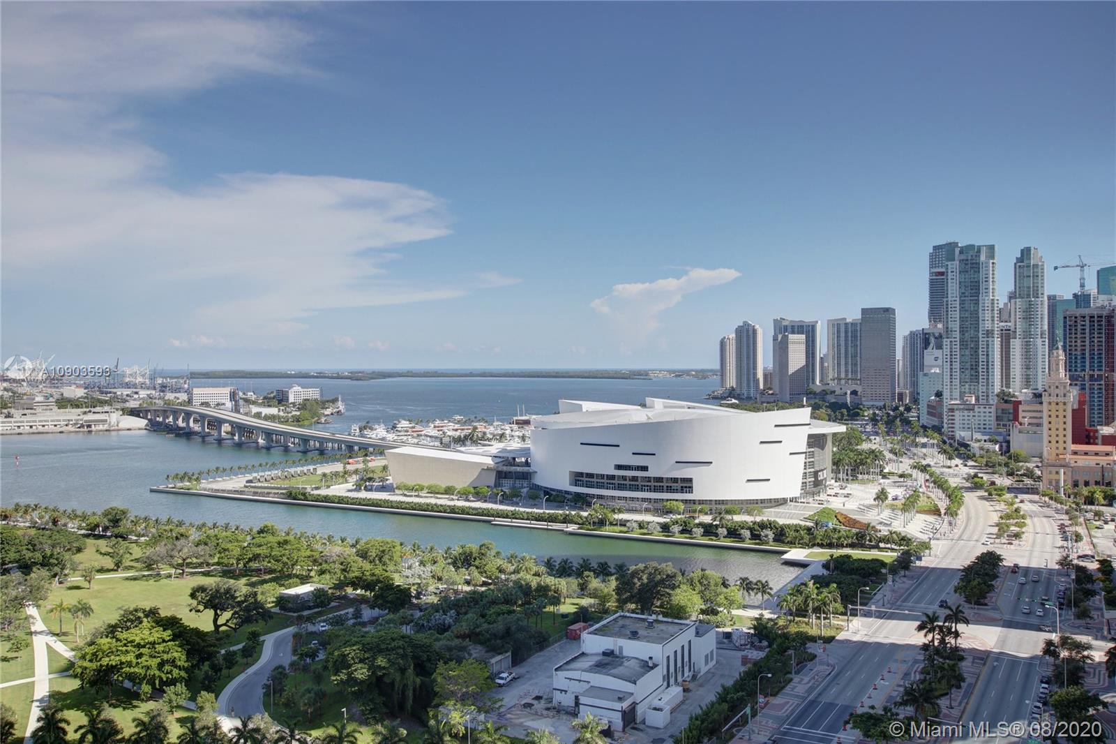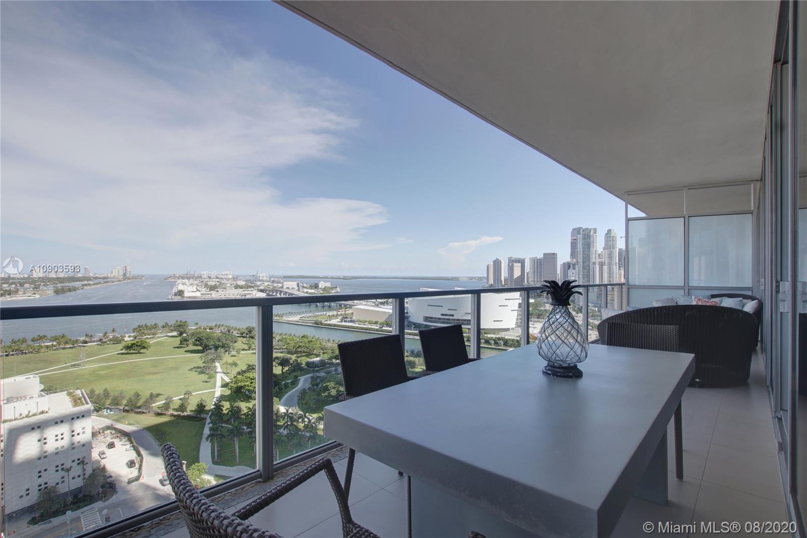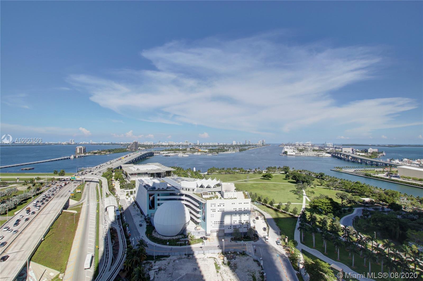 The only one of its kind in the fabulous Marquis Residence.Transitional elegance is personified in this unique Residence.Open floor plan,unobstructed 180' views of bay & ocean.10' ceilings throughout.Three bedrooms (2 master suites),impact-resistant glass door & windows;extra-thick,noise reducing partition walls;porcelain tile flooring,Creston Audio,drapes & lighting,security system,Ilnear diffusers,European Style kitchen (Viking appliances) & quartz countertops,custom built in bar,cove ceiling with fiber optic lighting,private elevator,bathroom with over-sized glass-enclosed showers;24/7 doorman, bellman, security, valet & concierge;smart-building technology;signature spa & fitness center,open-air sky pool deck (14th floor) with hot tubs.Many services are available in building.