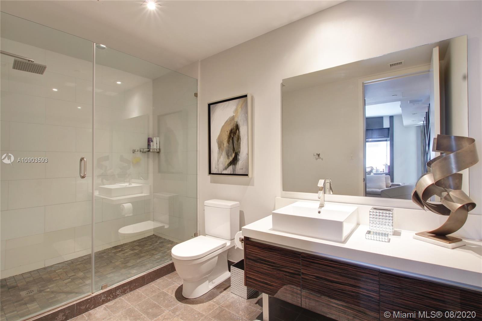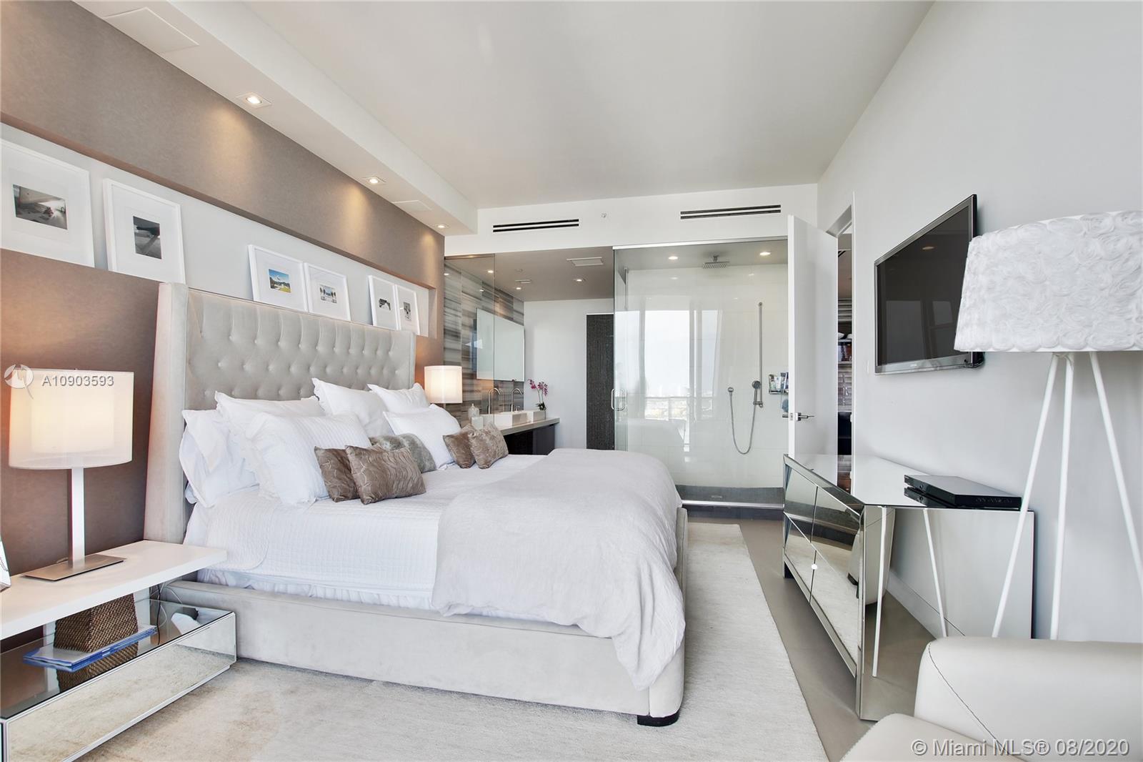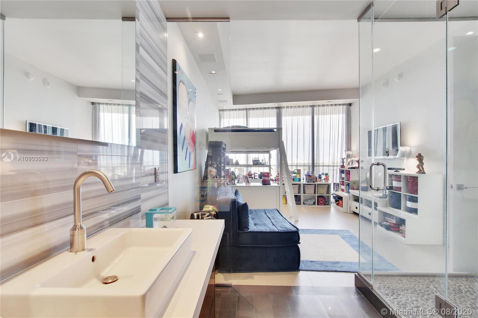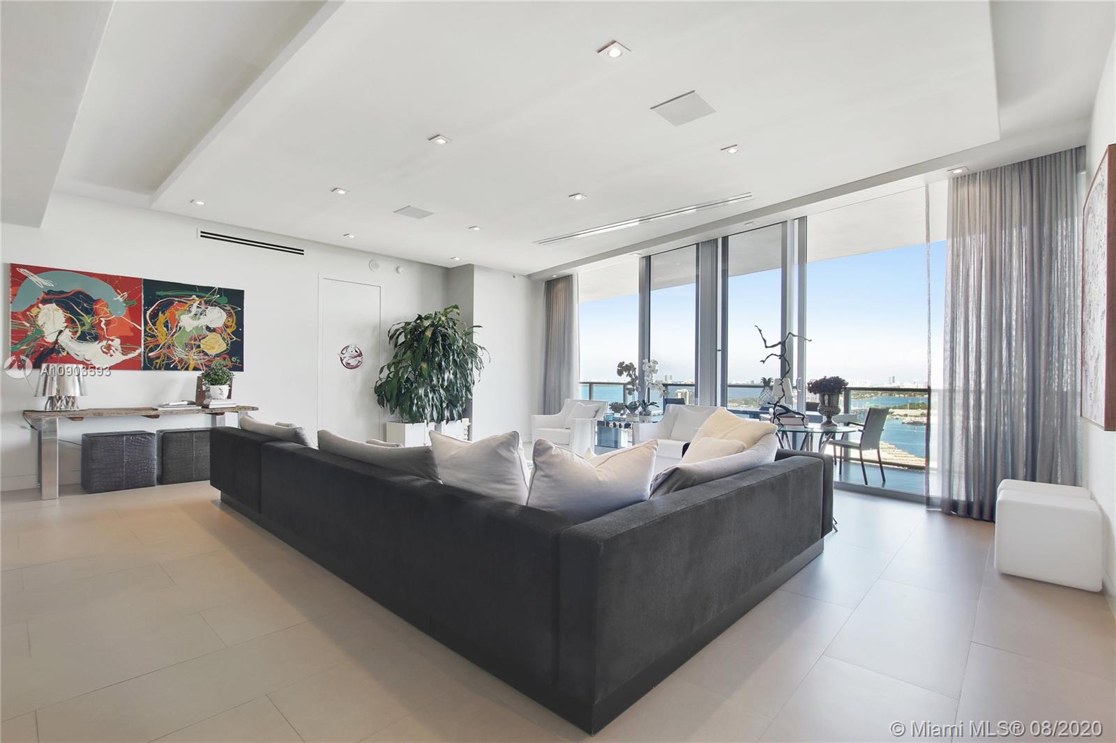 The only one of its kind in the fabulous Marquis Residence.Transitional elegance is personified in this unique Residence.Open floor plan,unobstructed 180' views of bay & ocean.10' ceilings throughout.Three bedrooms (2 master suites),impact-resistant glass door & windows;extra-thick,noise reducing partition walls;porcelain tile flooring,Creston Audio,drapes & lighting,security system,Ilnear diffusers,European Style kitchen (Viking appliances) & quartz countertops,custom built in bar,cove ceiling with fiber optic lighting,private elevator,bathroom with over-sized glass-enclosed showers;24/7 doorman, bellman, security, valet & concierge;smart-building technology;signature spa & fitness center,open-air sky pool deck (14th floor) with hot tubs.Many services are available in building.