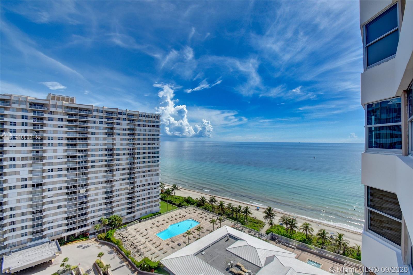 Oceanfront 1BR/1.5BA unit with panoramic Ocean, Intracoastal and city skyline views! 3rd balcony from the Ocean! Fully tiled unit with spacious living areas and a huge master bedroom with walk-in closet. A/C, Water and Cable TV are all included in the maintenance fee! Beautiful resort-style building features beach service, 2 Restaurants, 2 heated pools, snack bar, 2 mini-marts, 2 Fitness gyms, Sauna & Steam rooms, Beauty salon, Tennis courts, Marina w/dock available, putting golf, Billiard rooms, Shuffleboard, Basketball, kids playground, BBQ area, 24 hr Security and Valet. Interior photos are virtually staged.