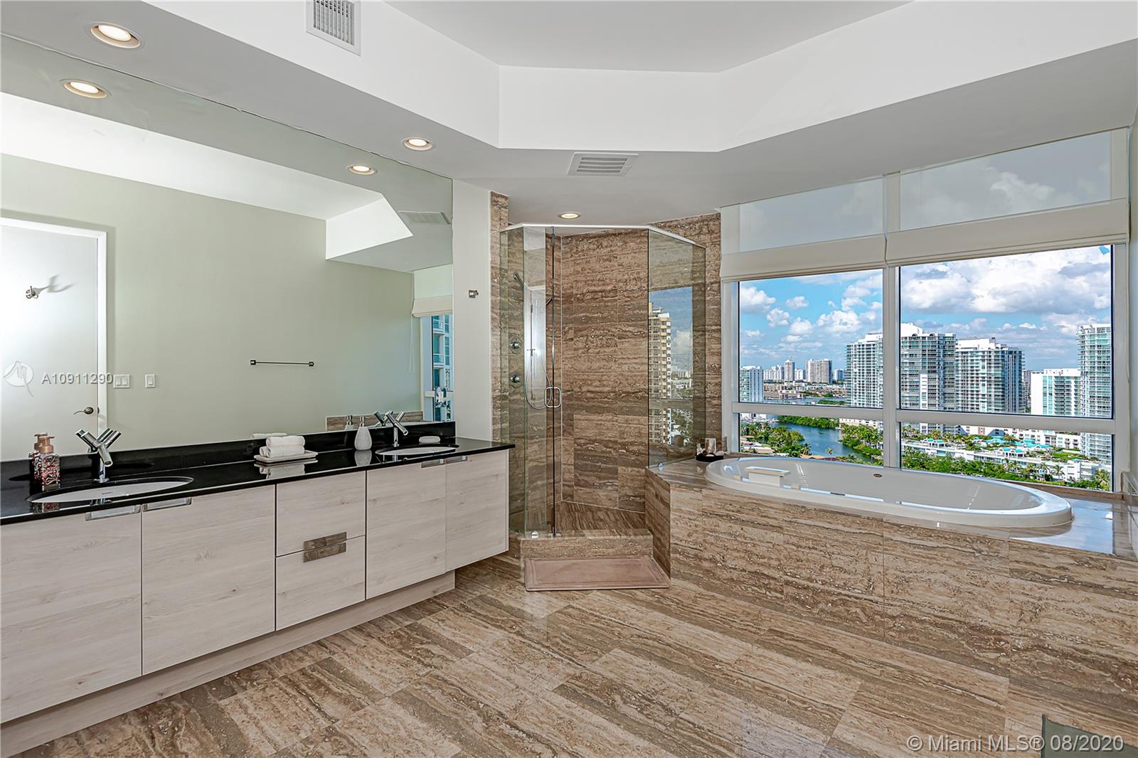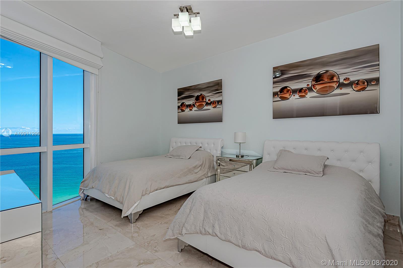 Direct oceanfront flow through residence with private elevator entrance & amazing ocean views make this renovated 3 bedroom, 3.5 bathroom an extraordinary gem. The split floor plan offers 2327 sq/ft & the large living room creates a very spacious layout. The property features four private balconies with access from every bedroom which provides tons of outdoor living space. A modern, recently updated kitchen with new tile backsplash & granite countertops is fit for any chef. Marble tile throughout & electric blinds. Huge master bedroom with ocean views & a massive master bathroom. The other two bedrooms each feature on-suite bathrooms. Trump Towers is a top-notch building with valet parking, heated pools, restaurant, beach services, gym, sauna, & steam room. Furniture negotiable.