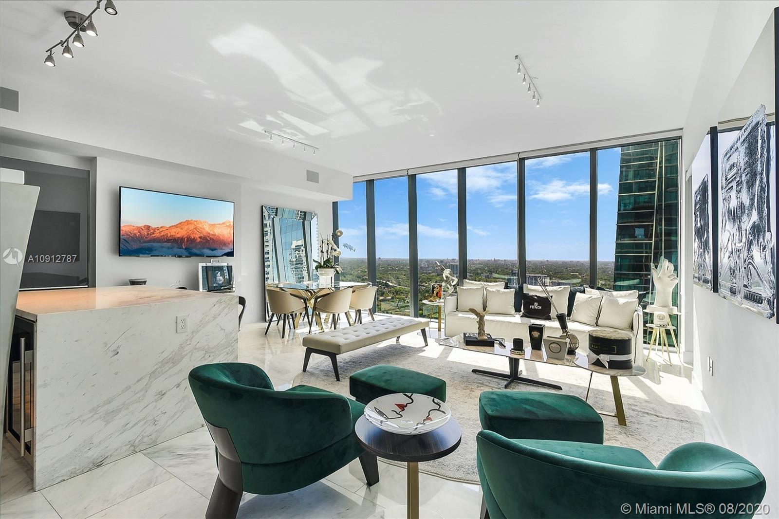 An immaculate corner unit nestled in the heart of Brickell, this 2-bedroom, 2.5-bathroom home is a seamless contemporary boutique chic condo with bay and skyline views of Brickell. Features include gorgeous marble floors, high ceilings, hurricane proof windows, Custom MAGNIFICENT closets, Italian glass cabinetry, marble counter tops, Sub-Zero, Wolf, Bosch, outdoor BBQ, Apple Home Technology. BUILDING FEATURES: Infinity-edge pool, state-of-the-art gym and spa deck with panoramic views of Biscayne Bay and Downtown Miami, 24/7 concierge, valet, pets are welcome and dog walker available, a TRUE GEM!