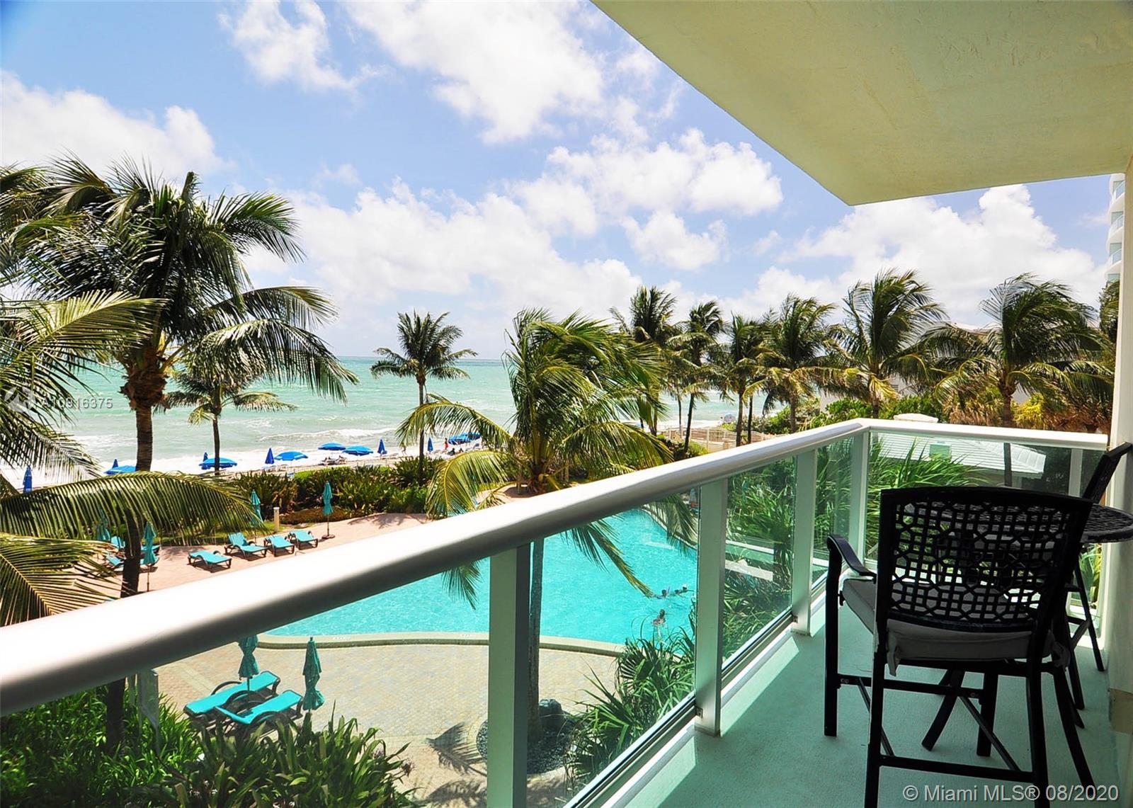 Full ocean view corner unit at The Tides Hollywood Beach! This beautifully kept 3rd floor 2BR/2B unit is a must have! Turn Key with furniture and furnishings included. *NO RENTAL RESTRICTIONS* Maintenance fee includes A/C, water, cable, internet, sewer, garbage and garage parking! Enjoy full resort amenities: Entertainment Room, Fitness Center, Heated Pools, Bike Room, Business Center, Car Wash Station, Storage Room, Theater, Tiki Hut and Yoga Studio.