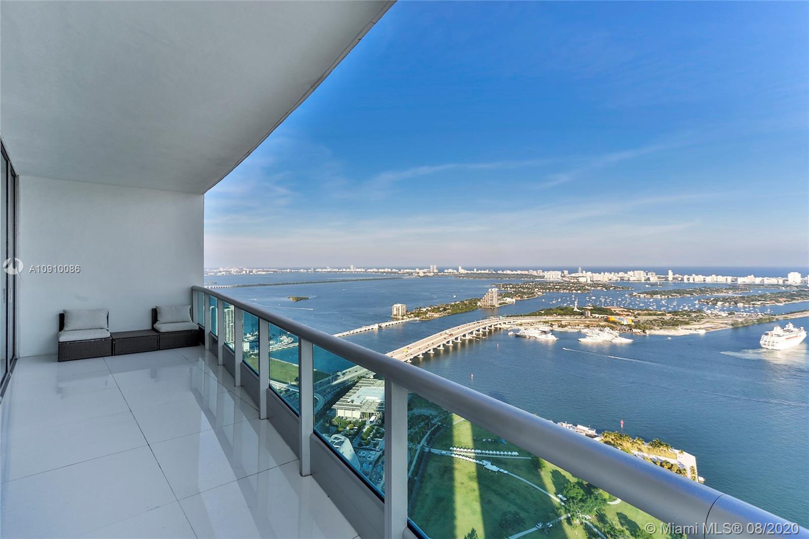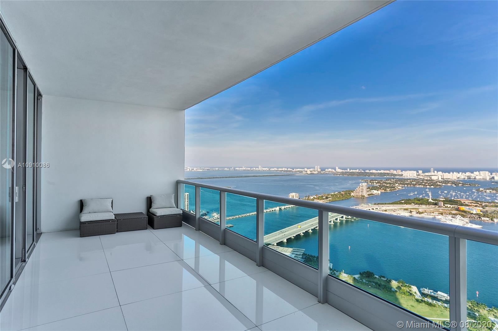 Miami’s prime penthouse is a showcase in versatility: serenity of design & space can flow into an entertainer’s paradise. Arriving at your private elevator foyer you are greeted with diverse & mesmerizing views, all while located in the beating heart of the new Miami! A 270-degree view corridor overlooks Biscayne Bay & the islands of South Beach to the E, the cityscape of downtown to the SE & endless lights of Miami to the west. Huge SE corner balcony is a real treat & functional space you will use endlessly - 1 of 3 oversized terraces featuring over 1,200 sq. ft. Huge kitchen w/waterfall counter makes cooking a pleasure. Easy access to SoBe, Wynwood, Arsht Center, Brightline, Perez Art Museum, AAA – this is the center of it all!