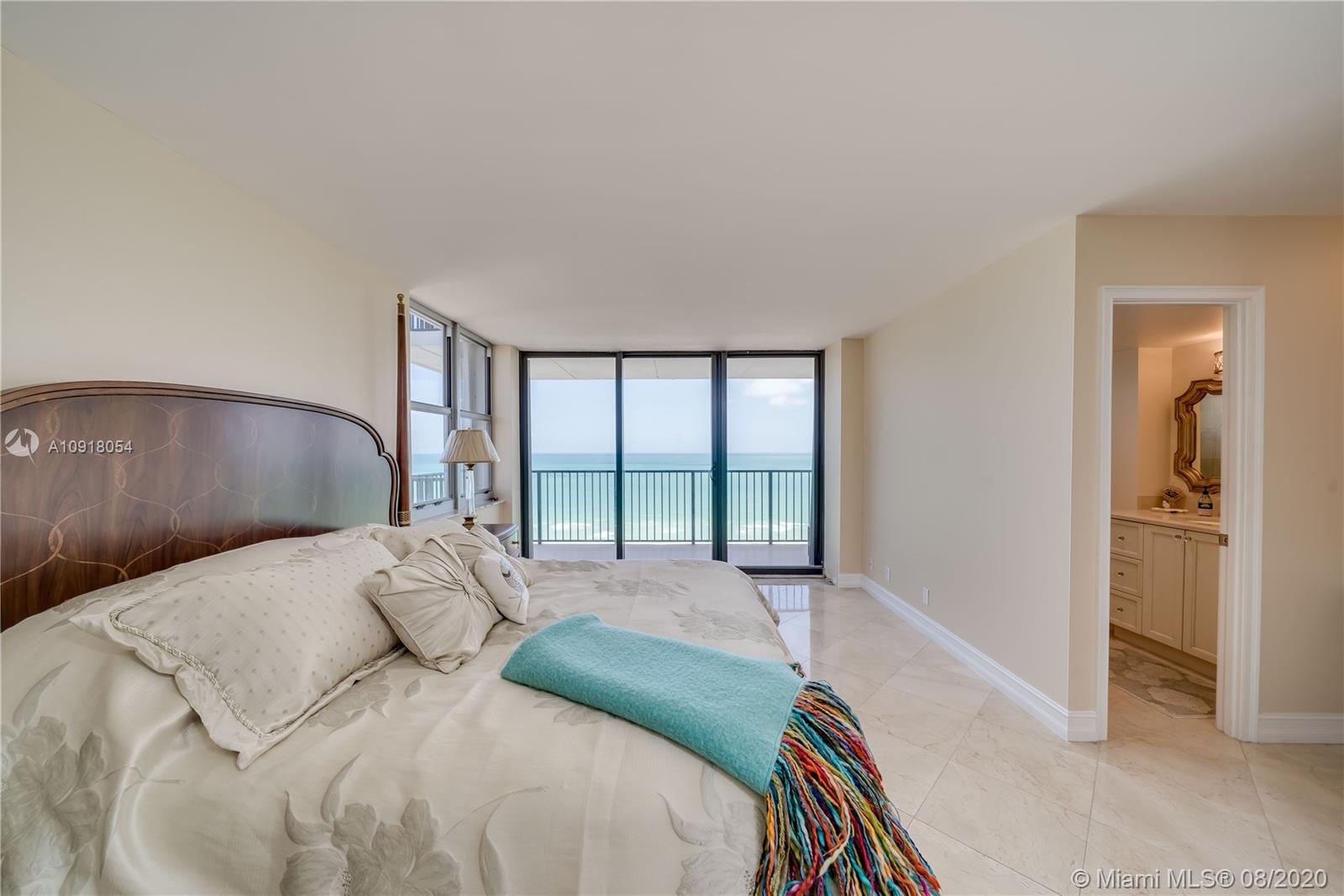Spectacular, Direct Ocean View from the moment you walk in the door! Totally remodeled 18th fl. corner unit, located in Grenoble Bldg., in Quadomain on Hollywood Bch. Gorgeous lobby, greeted by security. Nothing spared in the remodeling details. Floor-ceiling Impact sliders & windows, Marble Flooring, Granite countertop kitchen w/solid slab granite backsplash, serving bar, SS appliances, custom cabinetry. Both bathrooms seamless shower enclosures, lots of storage. Separate vanity area in Master w/huge walk in closet & custom closet inserts. Guest BR also has custom closets. Light, Bright, Corner unit w/huge ocean front balcony, & view of intracoastal from corner. Covered parking, 1 spot, resort amenities, Restaurant, pool, gym, valet guest parking & ocean access. No lease first 2 yrs.