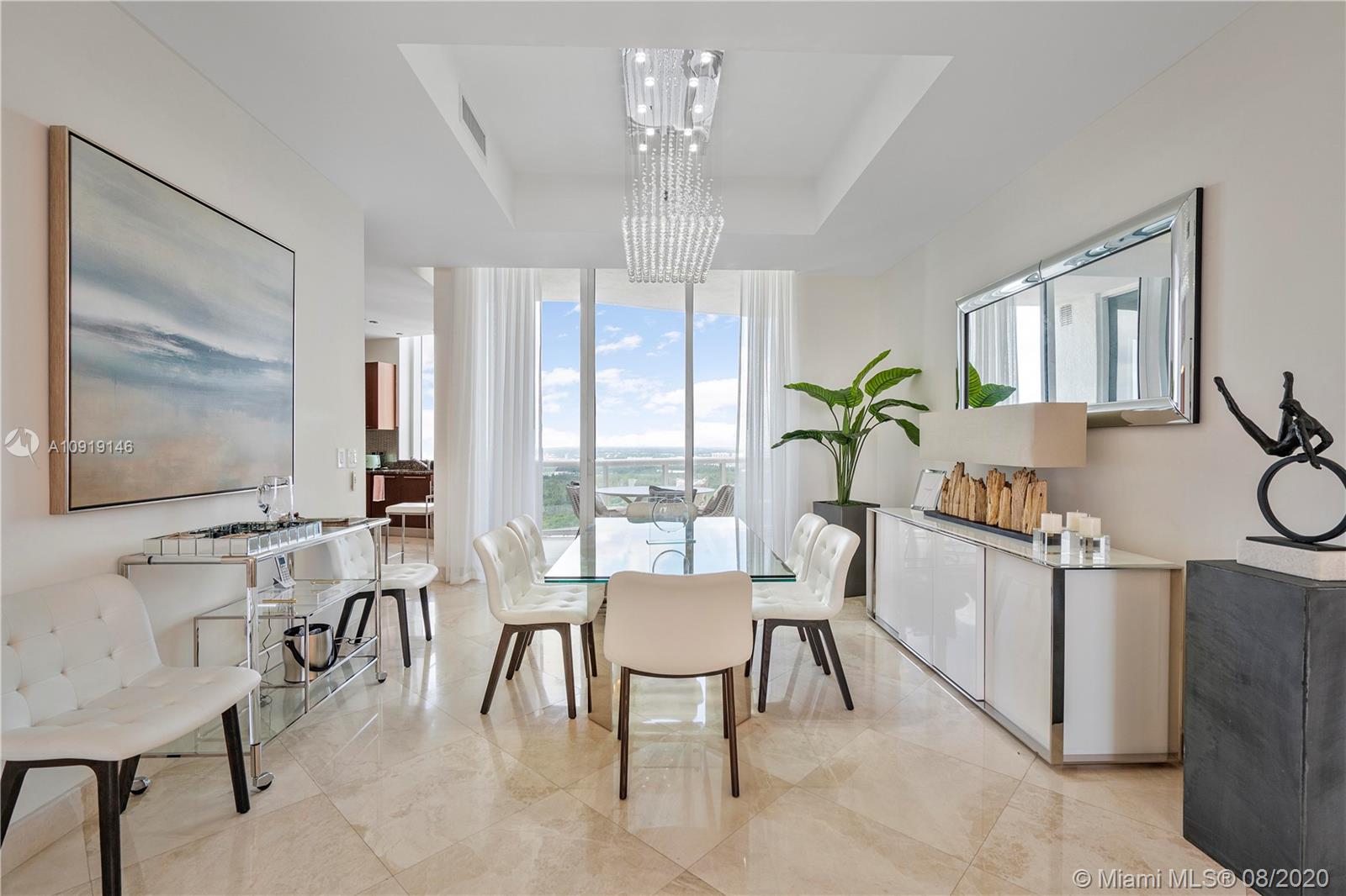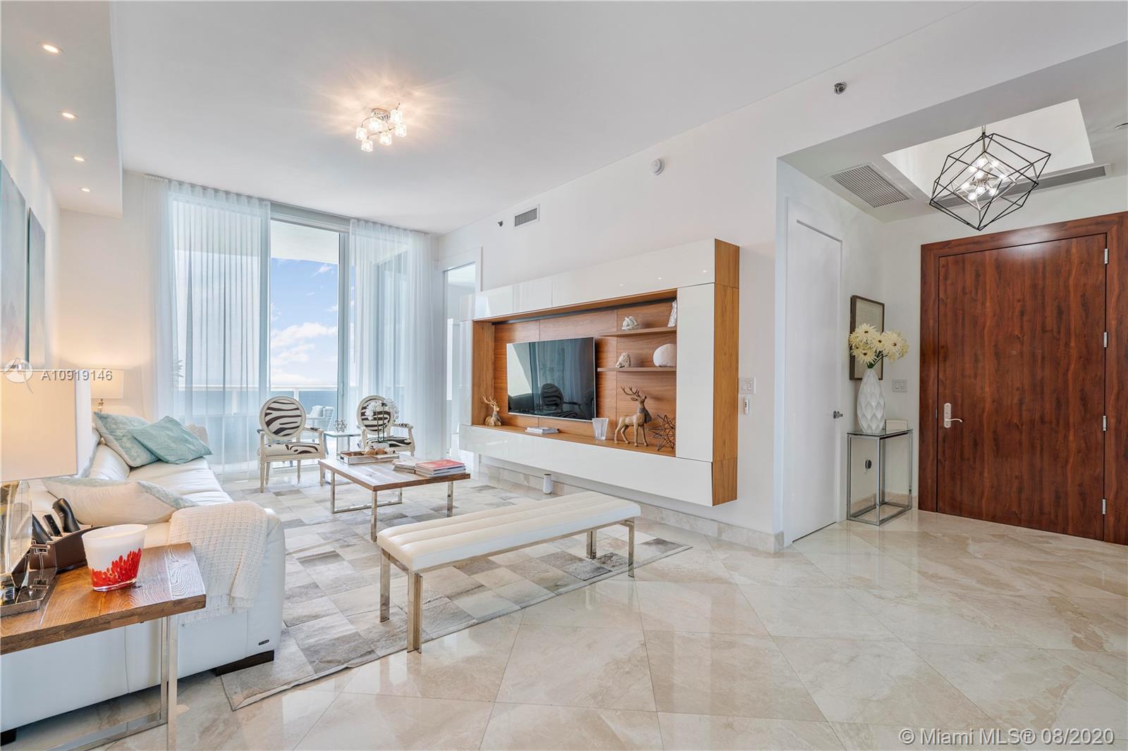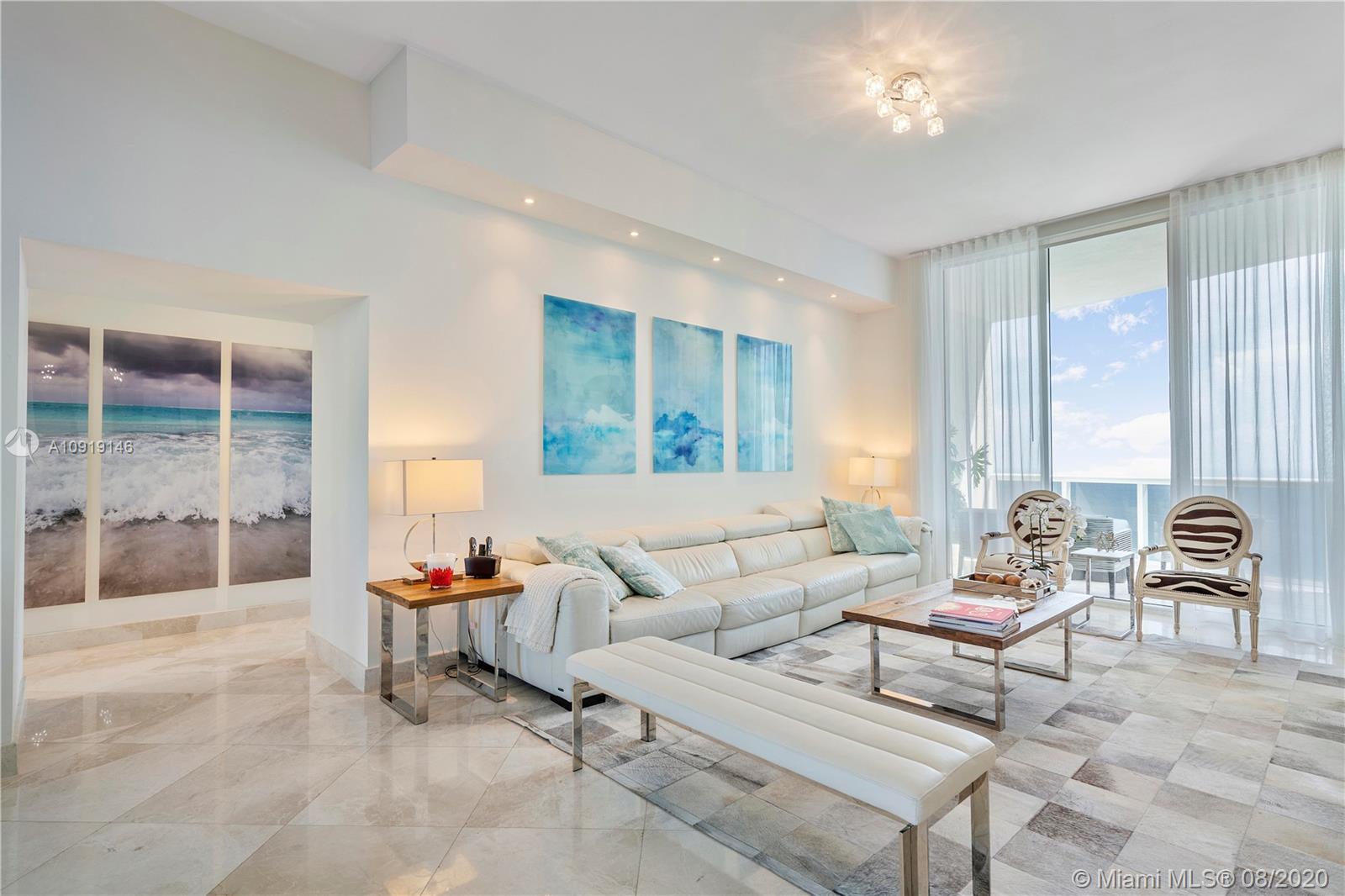 Impeccably decorated bright 3 bedroom/3.5 bath residence in Trump I located directly on the Ocean in Sunny Isles Beach. This condo offers direct ocean & Intracoastal views and top of the line finishes. 40th floor offers 11 Ft ceiling heights that makes it completely unique...Just bring your toothbrush! Trump Towers is one of Sunny Isles best addresses. Trump Towers offers an array of amenities including 24 hour concierge, valet, state of the art fitness center, health spa, heated pools and most important an excellent beachfront restaurant with delivery service, plus...club rooms and so much more!. The building sits on 250 feet of white sand Atlantic Ocean frontage. Residence offers beautiful contemporary furnishings, marble floors and spectacular views.