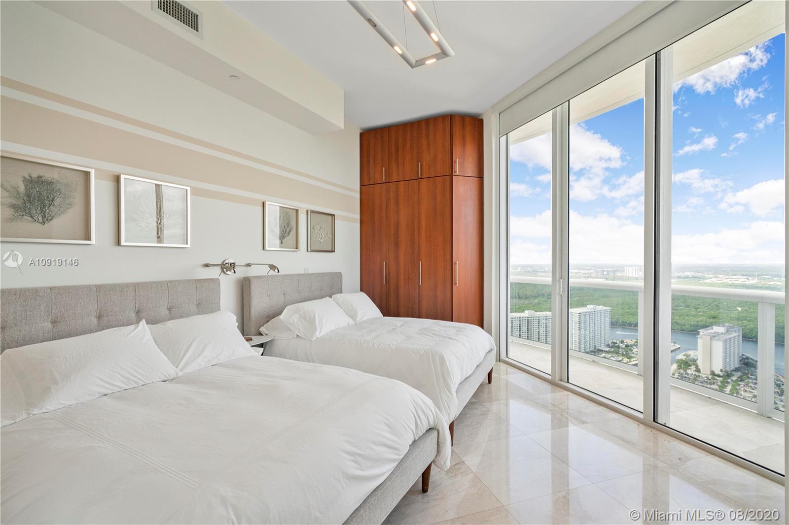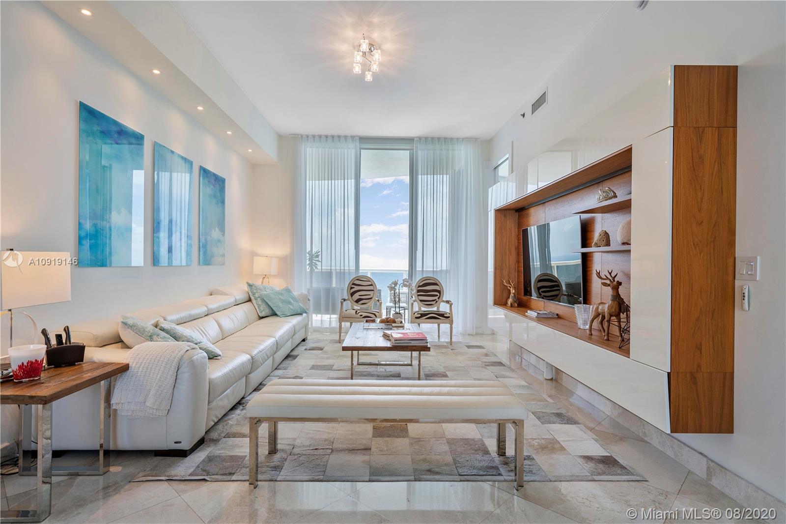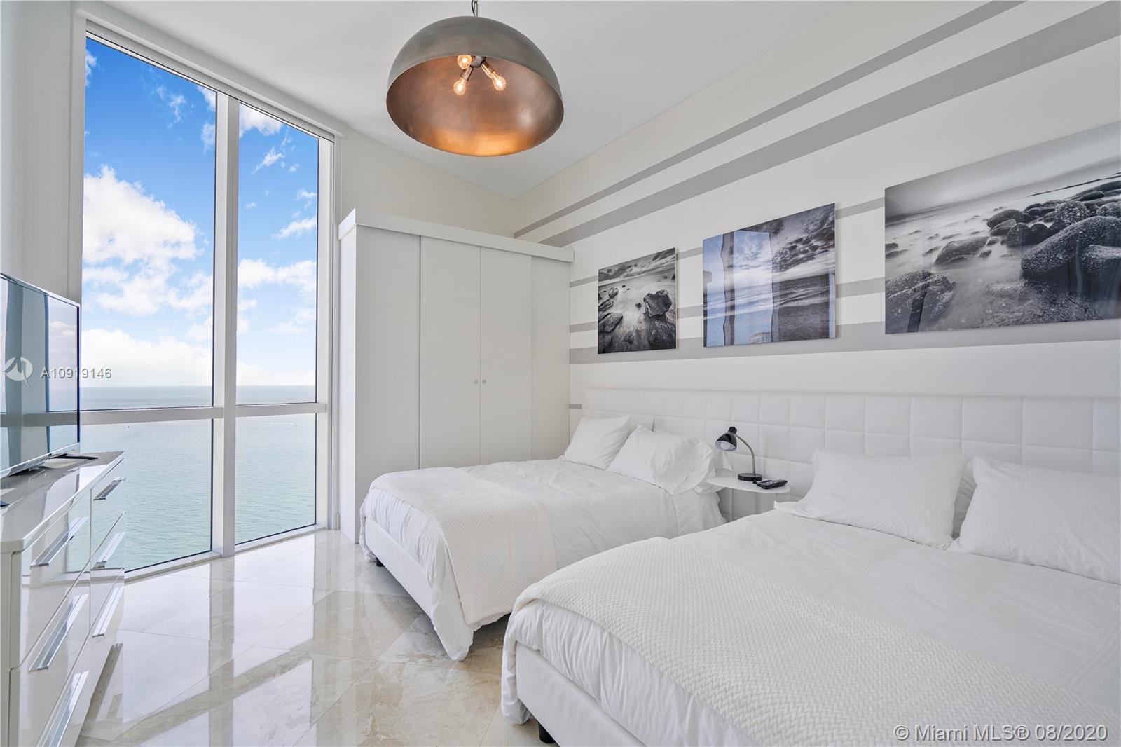 Impeccably decorated bright 3 bedroom/3.5 bath residence in Trump I located directly on the Ocean in Sunny Isles Beach. This condo offers direct ocean & Intracoastal views and top of the line finishes. 40th floor offers 11 Ft ceiling heights that makes it completely unique...Just bring your toothbrush! Trump Towers is one of Sunny Isles best addresses. Trump Towers offers an array of amenities including 24 hour concierge, valet, state of the art fitness center, health spa, heated pools and most important an excellent beachfront restaurant with delivery service, plus...club rooms and so much more!. The building sits on 250 feet of white sand Atlantic Ocean frontage. Residence offers beautiful contemporary furnishings, marble floors and spectacular views.
