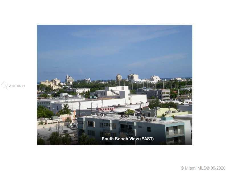 SPECTACULAR CITY & BAY VIEWS FROM THIS UPGRADED STUDIO 350 Sq. Ft PENTHOUSE!! GRANITE COUNTER TOPS, STAINLESS STEEL APPLIANCES, TILE THRU OUT, LOW MAINTENANCE. NEW ELEVATORS, NEW ROOF, CODE COMPLIED ON EVERYTHING, STREET PARKING, PETS ACCEPTED UP TO 25 LBS. ASSOC HAS ITS OWN RESERVES. BUILDING HAS A NEW GENERATOR, NEW RESURFACE POOL. DELI ON BUILDING AT SIDEWALK LEVEL. WALKING DISTANCE TO LINCOLN RD SHOPS, CAFES, RESTAURANTS & NIGHT LIFE!! WALKING DISTANCE TO THE BEACH AND ALL SoBe HAS TO OFFER!! HURRY THIS WONT LAST!!! Owner Motivated.
