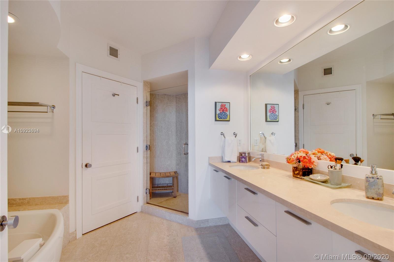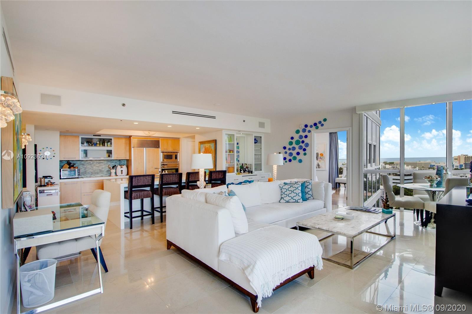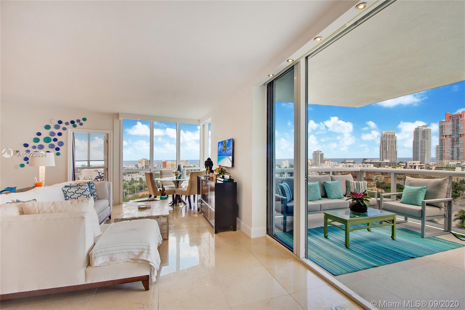 Welcome to gorgeous #1410 at Murano Grande! This first class luxury building is located in the upscale South of Fifth neighborhood in world-famous South Beach. From the moment you enter this designer-renovated condo, you see stunning panoramic water views. The home has 2 large bedrooms with private baths & a 1/2 bathroom for guests. Enjoy your morning coffee on the spacious, private balcony with SE exposure & watch the cruise ships sail by. The open kitchen has Miele & Subzero appliances. Living room includes a custom-built bar with wine cooler. Resort-style amenities with a waterfront pool, restaurant, tennis, spa & gym. Steps from the Miami Beach Marina & the best restaurants in South Beach. A waterfront path leads to the beach & South Pointe Park. Adjacent condo #1411 is also for sale.