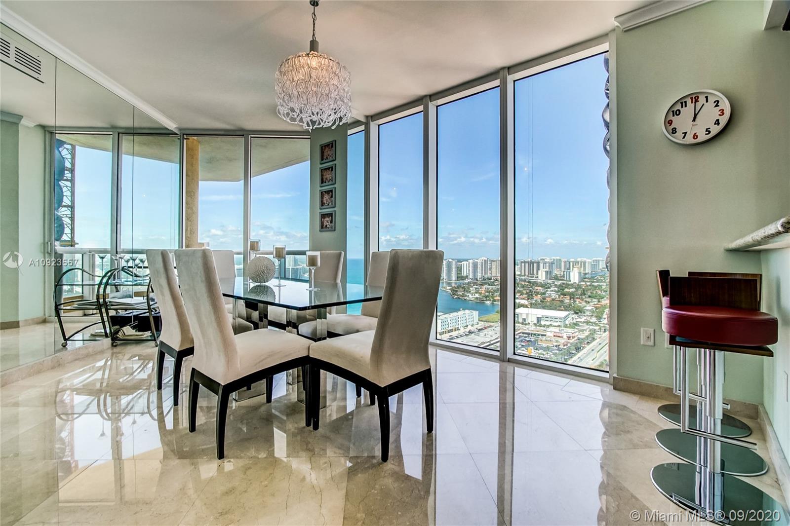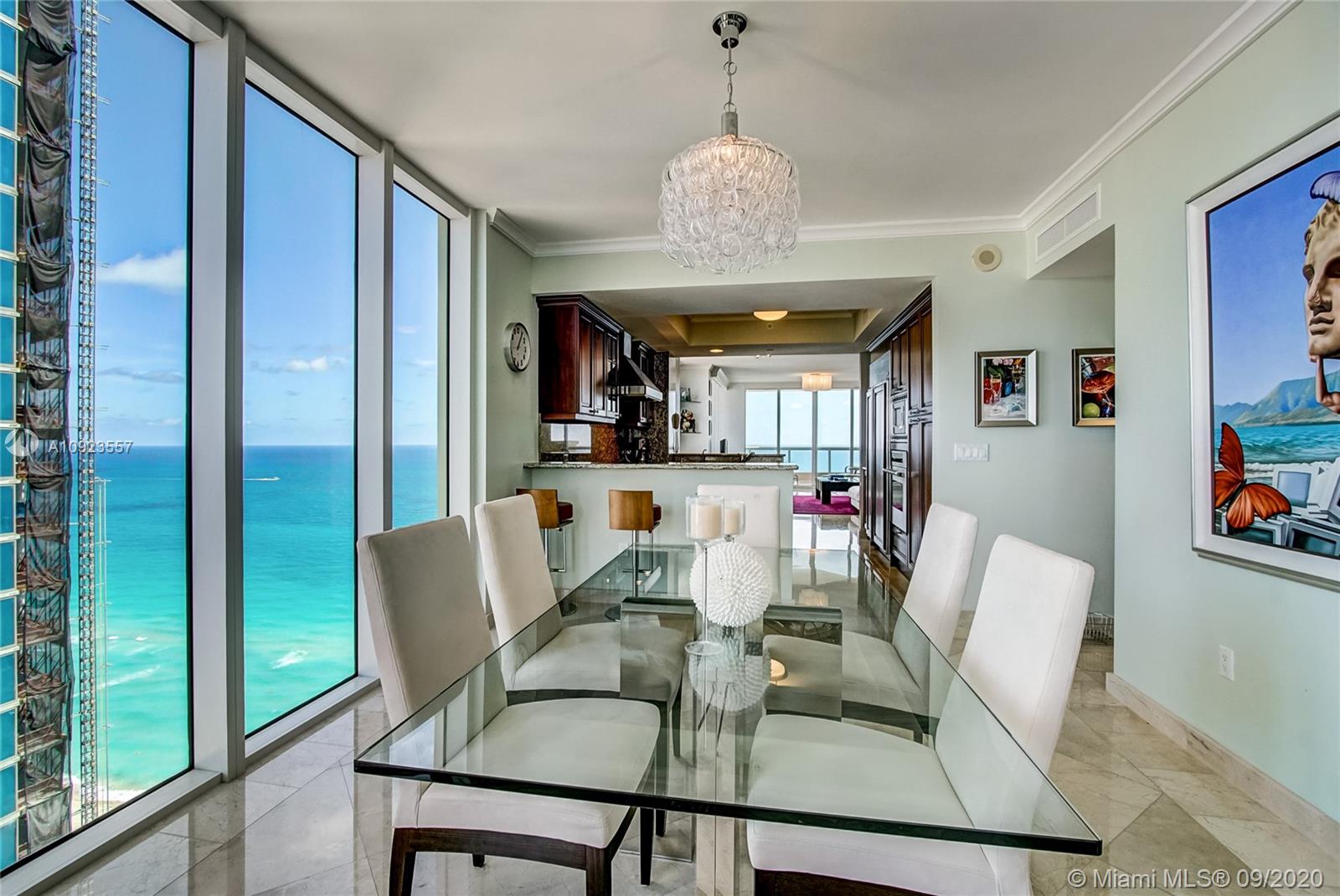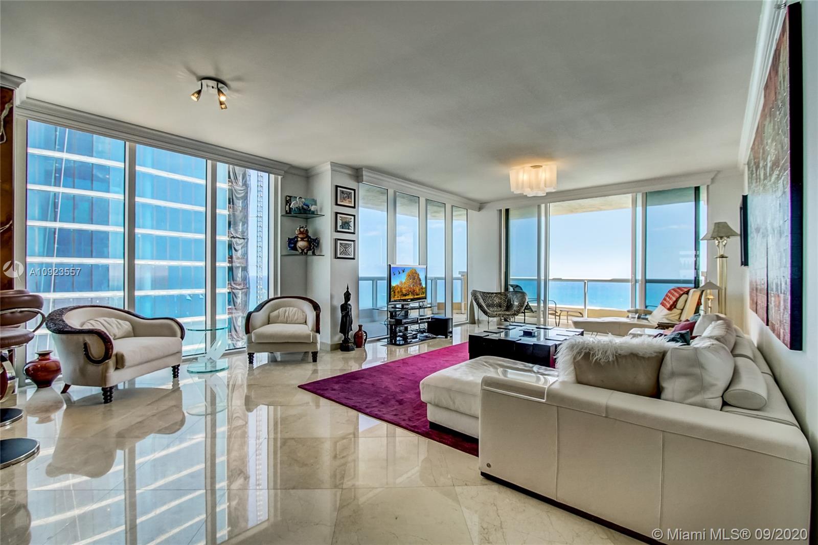 Prime 01 line at Acqualina Ocean Residences. 34th floor corner flow through residence with direct ocean views and Intracoastal views. Residence is currently a 3 bedroom but can easily be converted back to a 4 bedroom residence. Two large wrap around terraces, private foyer, top of the line appliances, marble throughout. 5 star luxury resort style living with 3 pools, beach club service, restaurants, spa, salon, valet, concierge and much more.