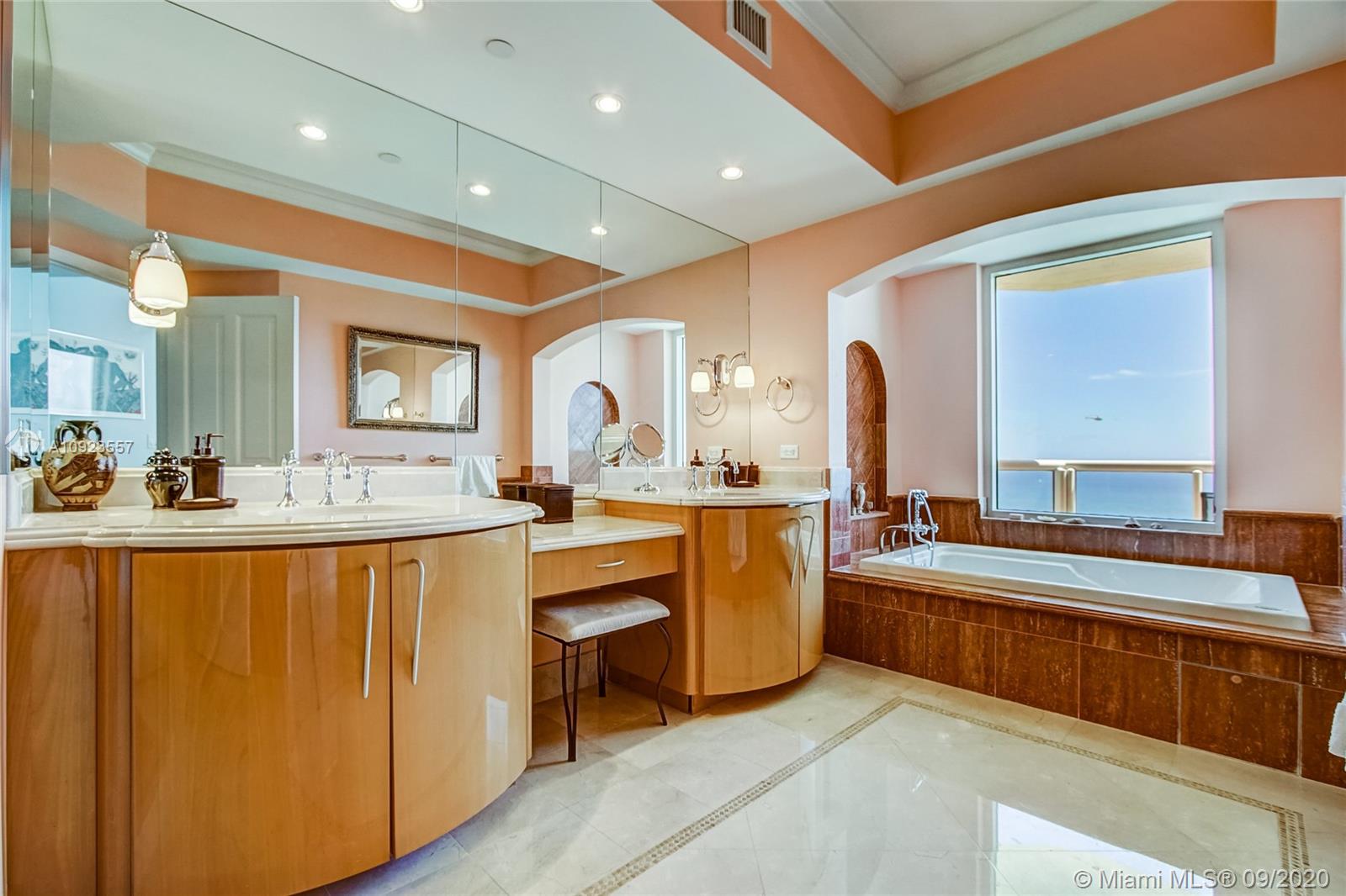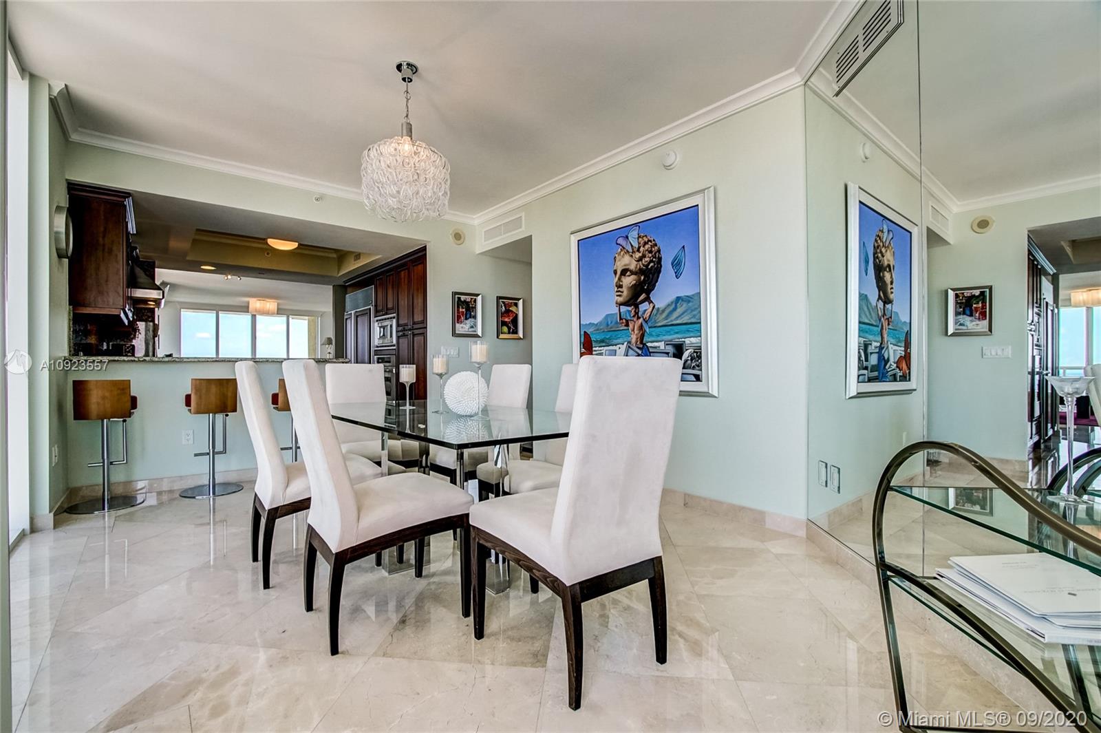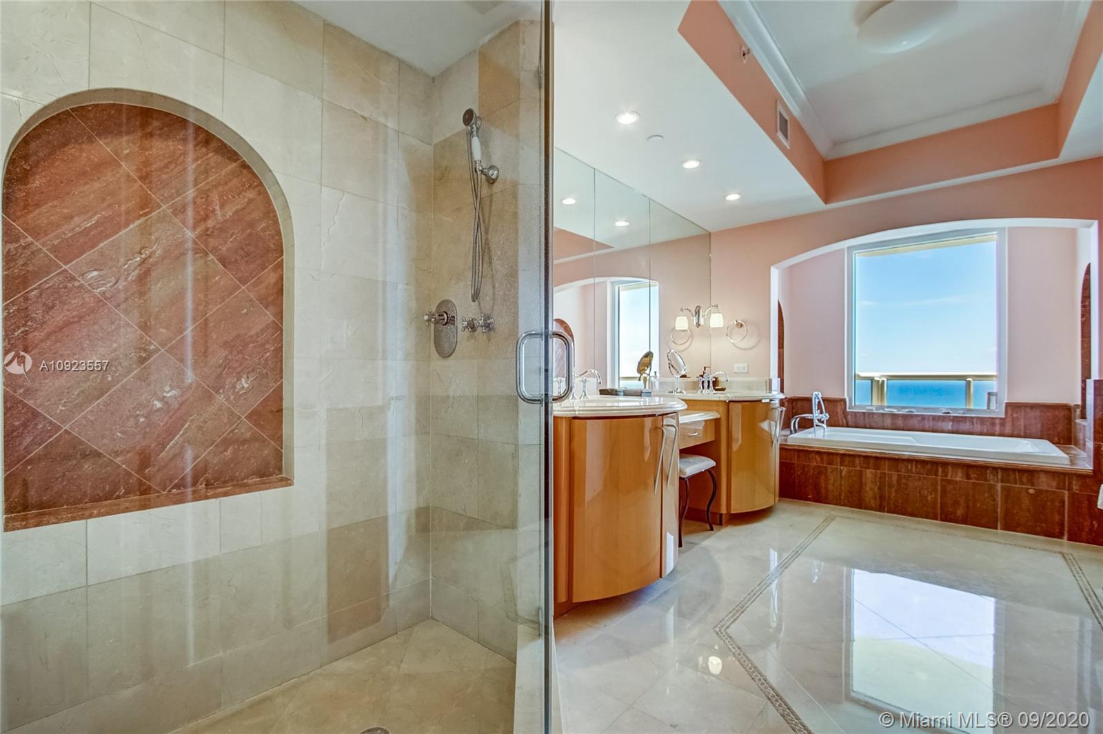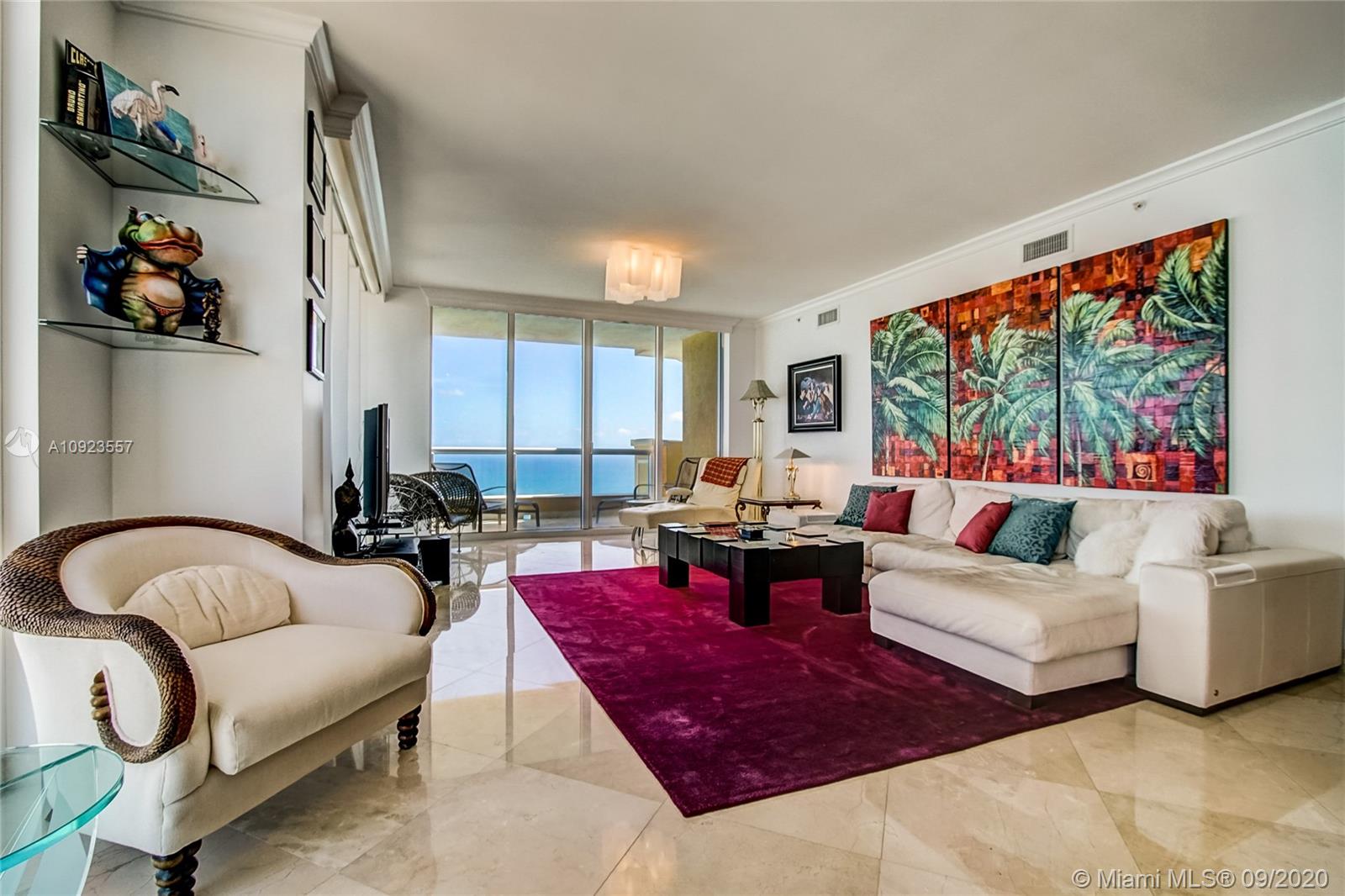 Prime 01 line at Acqualina Ocean Residences. 34th floor corner flow through residence with direct ocean views and Intracoastal views. Residence is currently a 3 bedroom but can easily be converted back to a 4 bedroom residence. Two large wrap around terraces, private foyer, top of the line appliances, marble throughout. 5 star luxury resort style living with 3 pools, beach club service, restaurants, spa, salon, valet, concierge and much more.