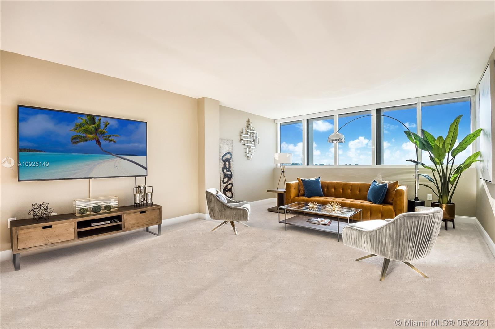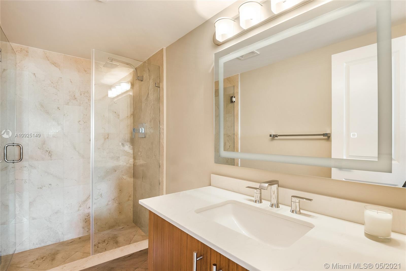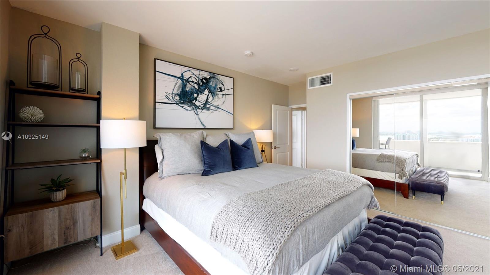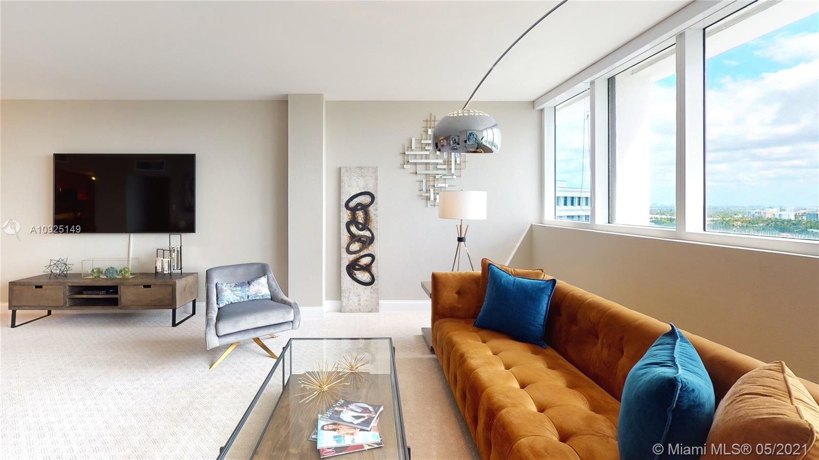 Gorgeous, newly furnished modern penthouse in full-service 5-star luxury building with views to match! Rare opportunity to own in prime location near Bal Harbour Shops, next to The Ritz-Carlton. Designer decorated showpiece with large open floor plan, boasts two large masters with oversized closets, wall to wall windows with expansive water and city views, new non-toxic paint, new carpet, marble floors, new stainless appliances, new doors, new bathroom countertops and fixtures, touch activated lighted mirrors, new kitchen fixtures, new lighting, washer/dryer, energy-efficient features, artistic and custom touches throughout, and huge double balcony.