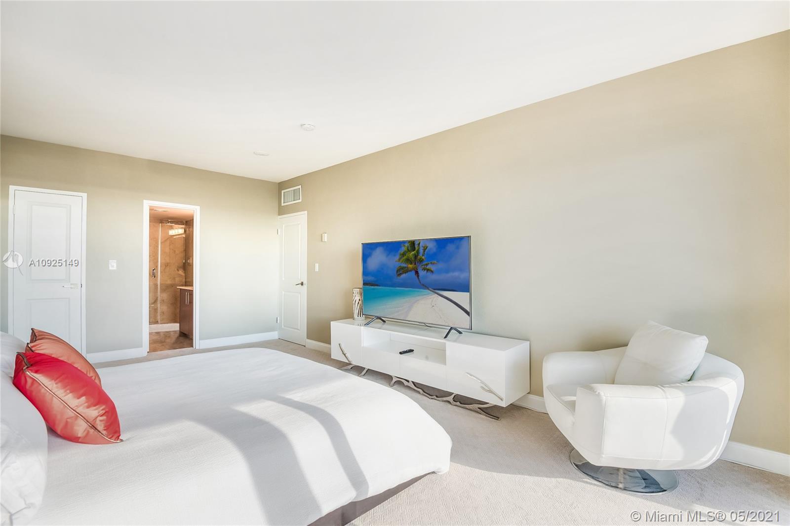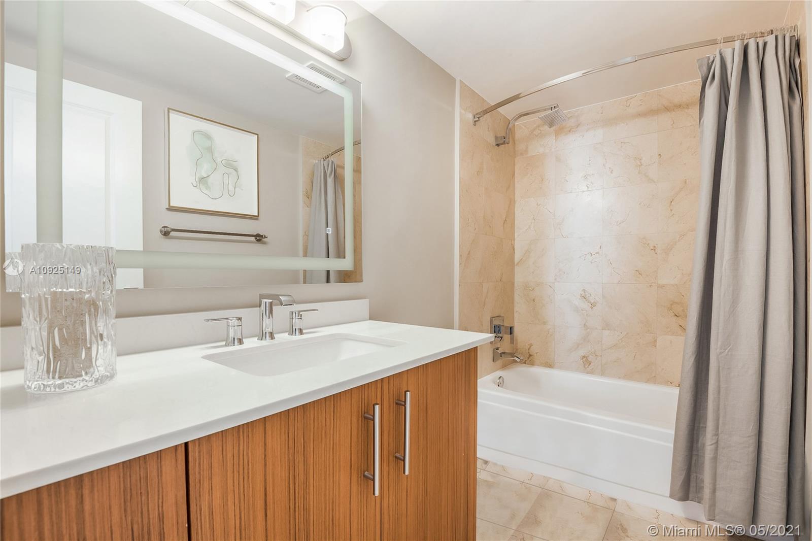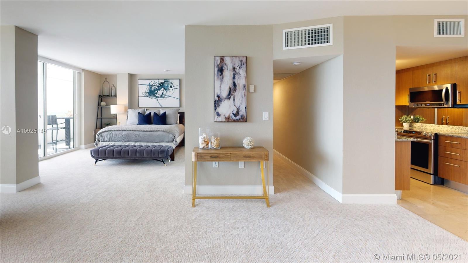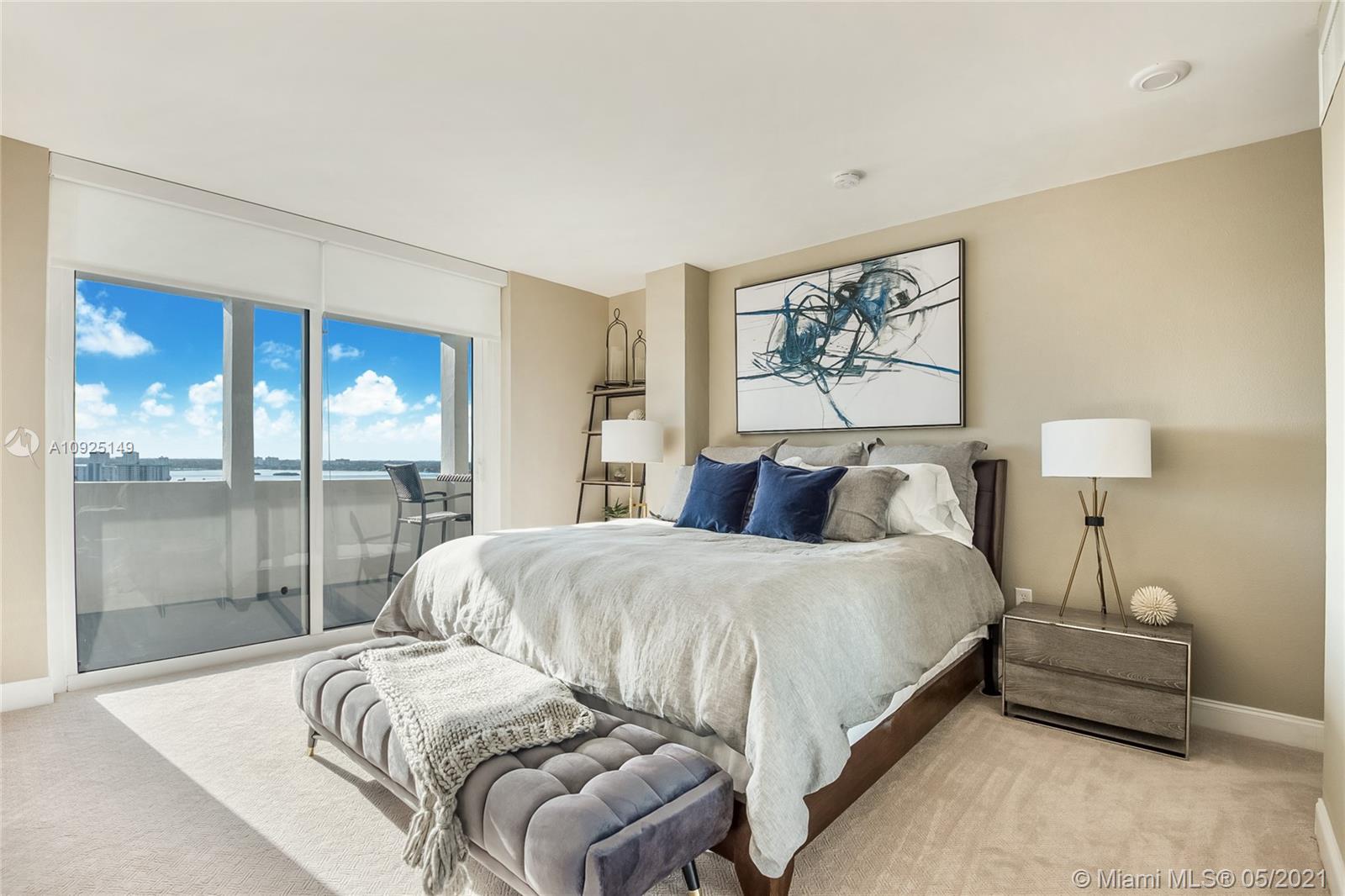 Gorgeous, newly furnished modern penthouse in full-service 5-star luxury building with views to match! Rare opportunity to own in prime location near Bal Harbour Shops, next to The Ritz-Carlton. Designer decorated showpiece with large open floor plan, boasts two large masters with oversized closets, wall to wall windows with expansive water and city views, new non-toxic paint, new carpet, marble floors, new stainless appliances, new doors, new bathroom countertops and fixtures, touch activated lighted mirrors, new kitchen fixtures, new lighting, washer/dryer, energy-efficient features, artistic and custom touches throughout, and huge double balcony.