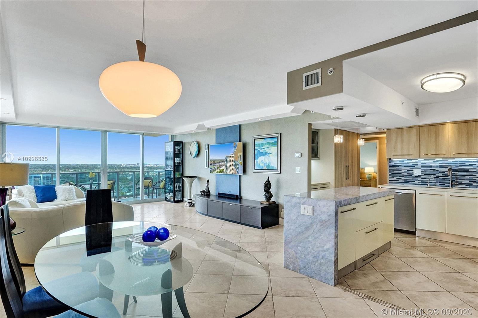 What a Great opportunity to own this spacious condo with breathtaking Intracoastal and Skyline views. Open modern kitchen with onyx island top. Custom lighting. Hurricane proof windows, tile floors. Experience The Wave Lifestyle - one of the finest and most exclusive Luxury buildings on the Beach for the price value. Great amenities: Newly remodeled Resort style pool deck with lush palm trees, fountains, Jacuzzi, GYM overlooking the ocean and complimentary Beach services. Condo is perfect for Investors or as a vacation home. You can rent 4 times per year, 90 days minimum. Pet friendly building- can have 2 pets up to 40 LB. For primary residence for qualify buyers’ 90% financing available.