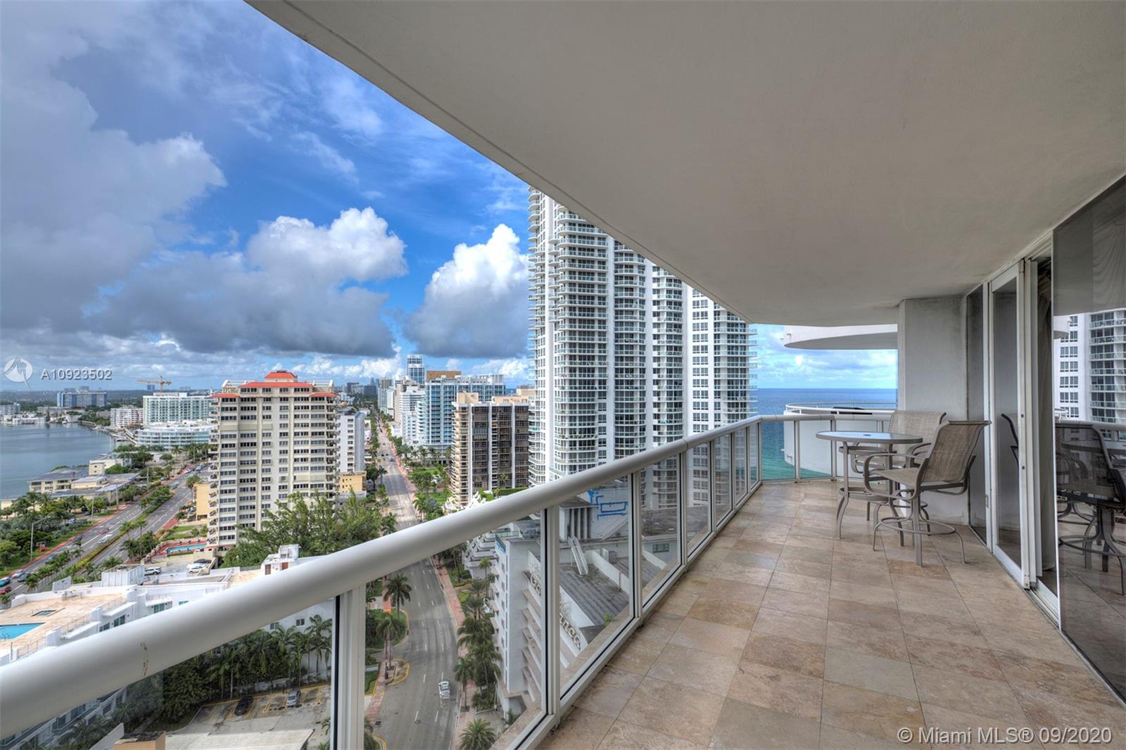 Oceanfront beauty in architecturally brilliant LaGorce Palace. This high floor 2 bedroom 2 bathroom is sunlit and airy with breathtaking intracoastal, bay, city and ocean views. An open split floorpan and oversized 36 ft balcony creating comfortable indoor outdoor living make this unit a total must see! LaGorce Palace is a full service amenity rich building offering beach service, gym, sauna, steam, heated pool, spa, community room, play area, BBQ pavilion, bike storage, board storage, concierge, valet and 24 hr security. COME LIVE OCEANFRONT AND ENJOY OUR LIFE CHANGING OCEANFRONT BEACH BOARDWALK TO START YOUR DAY OR STROLL AT NIGHT.