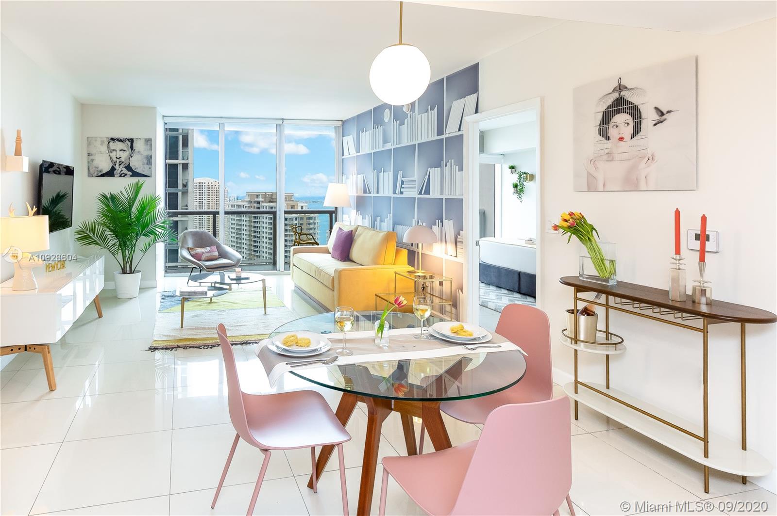 With views of Brickell, Miami River, Downtown Miami, and the Bay, this just-remodeled one-bedroom condo (which includes a queen-size sofa bed in the living room) has been decorated professionally by a European designer. It is uncommonly well equipped, including its kitchen and walk-in closet, refined furniture and complements, design tableware, high-quality linen and towels, HD Smart LED TV (watch 100+ channels including HBO and Showtime as well as Netflix, Prime, Hulu...), TV also in the bedroom, fast and free Wi-Fi (100MB), full-size washer/dryer, Italian cabinets, premium appliances by Wolf & Subzero and Bosch, as well as solid black granite counters.