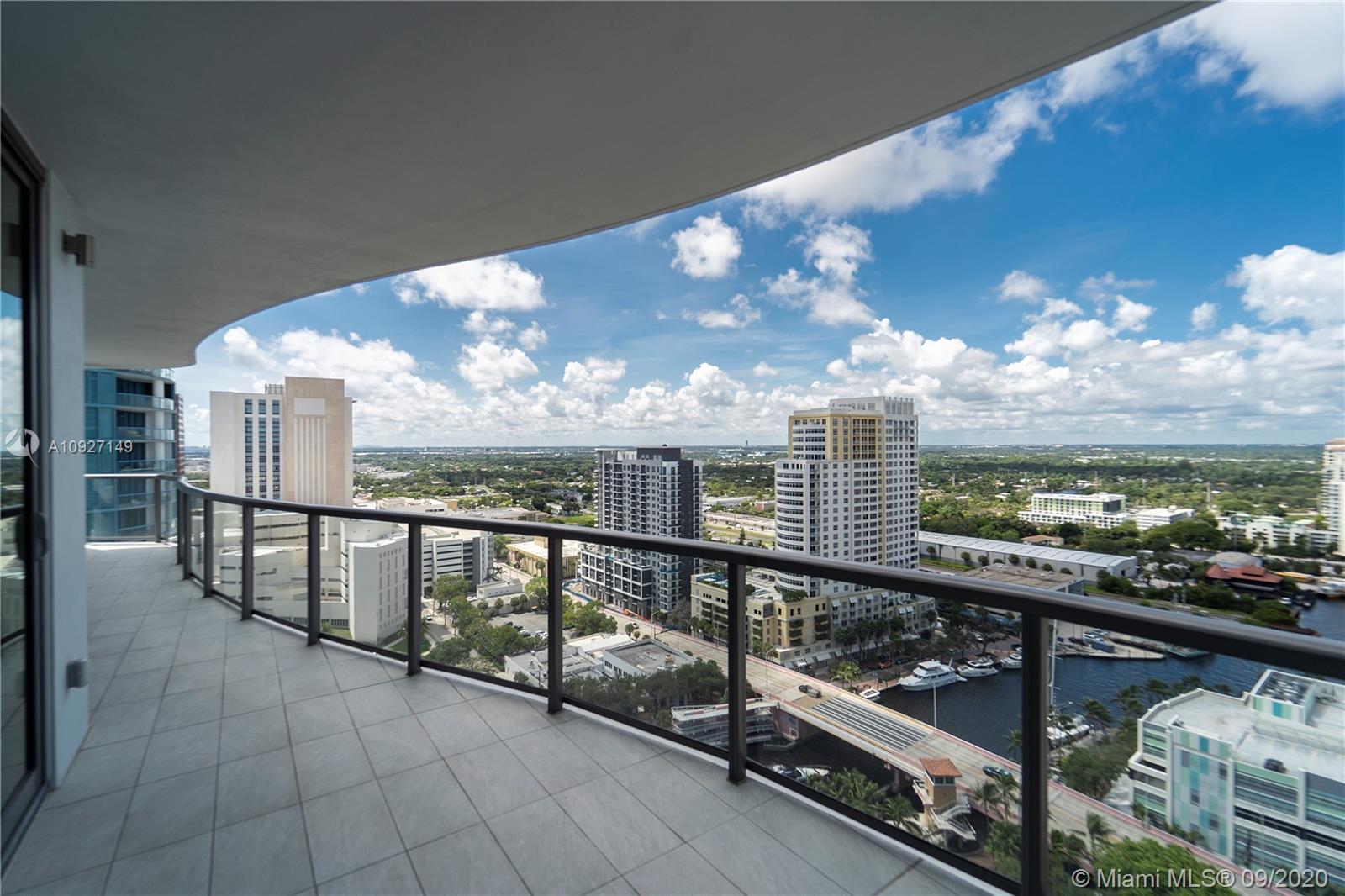 This is the newest and most luxurious building in downtown Fort Lauderdale and is located in a prime area for entertainment, shopping, dining and relaxation. This flow through residence on the 24th floor offers amazing city views as well as the most direct river view. The unit is finished beautifully with porcelain tile floors, quartz countertops and stainless-steel appliances. The master suite features 2 walk-in closets, a luxuriously appointed bathroom, and the den/ home office has been turned into an optional third bedroom! The building has an array of luxury amenities such as a resort style pool, day cabanas, a fully equipped fitness center, club rooms and entertainment areas throughout. This residence is an urban oasis of pure luxury and is priced to sell!