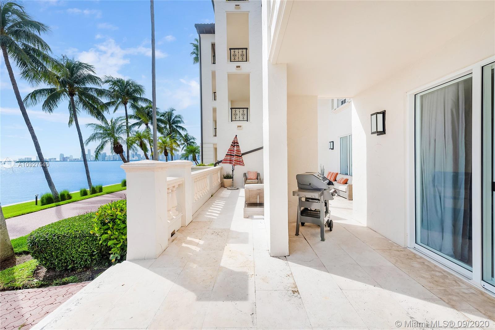This contemporary, 1st floor condo on exclusive Fisher Island is impeccably decorated and has undergone an extensive renovation and in turnkey condition. This unit with 2 plus one bonus bedroom features exquisite blush oak floors, an open dining room and living room layout with a wood burning fireplace, bar, and direct step-out terrace access with open views to Biscayne Bay, Miami skyline, Ocean & Virginia Key. Beautiful kitchen with custom Italian Stosa cabinetry, Caesarstone counters, and top-of-the-line appliances. The principal bedroom suite offers terrace access & bay views, plus a beautiful bathroom with a sunken tub and a steam shower. A large open terrace to relax and entertain completes this offering.