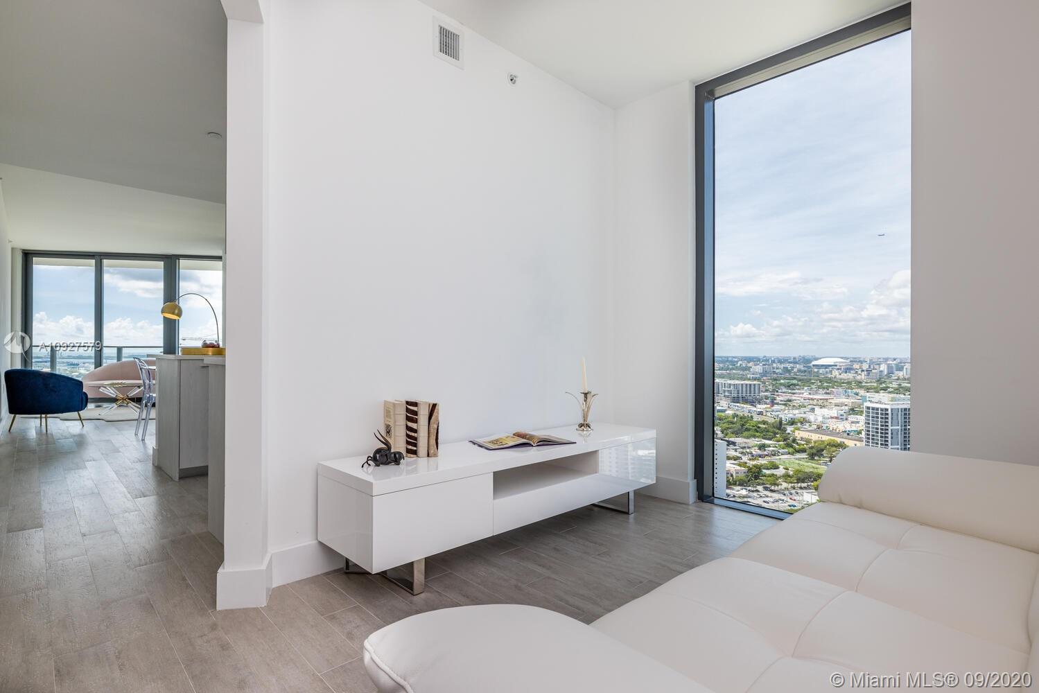 Stunning views from this beautiful high floor corner unit, 2 Bedroom/ 2 bathroom with Den, 2 large balconies, with open view from every room, largest line in the building! Top of the line kitchen appliances, hurricane impact windows, private foyer. Paraiso Bayviews is a full amenity building, access to Paraiso Bay Club, rooftop pool, sunset pool, tennis court, BBQ area, kids room, fitness center, movie theater, billiards, valet parking, concierge, security and much more. Location, Location Location! Minutes away from the Airport, Wynwood, Design District and Middtown.