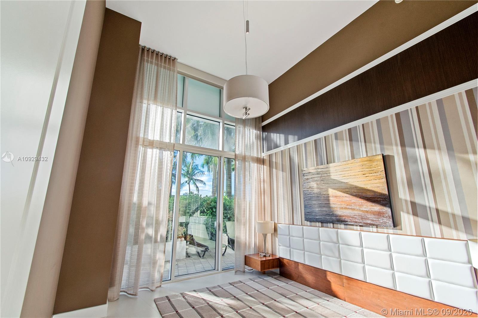 As you enter this 2BR, 2 BA luxury condo, you are taken aback by the magnitude of those 15 ft. ceilings. The West facing part of the condo enjoys copious amounts of daylight in the afternoon and a beautiful view of the sunsets. Motorized shades help you adjust the level of brightness that enters the condo. With small views of the ocean and the Intracoastal, you sense the closeness to the water. This unit is quite unique as it is on the same floor as the building's pool, so instead of having a small balcony, it enjoys its own private patio area, which is adjacent to the pool. This unit also sits on the same floor as all of the building's amenities (movie theater, library, ocean-facing gym, and breakfast area) so everything is within walking distance without having to wait for an elevator.