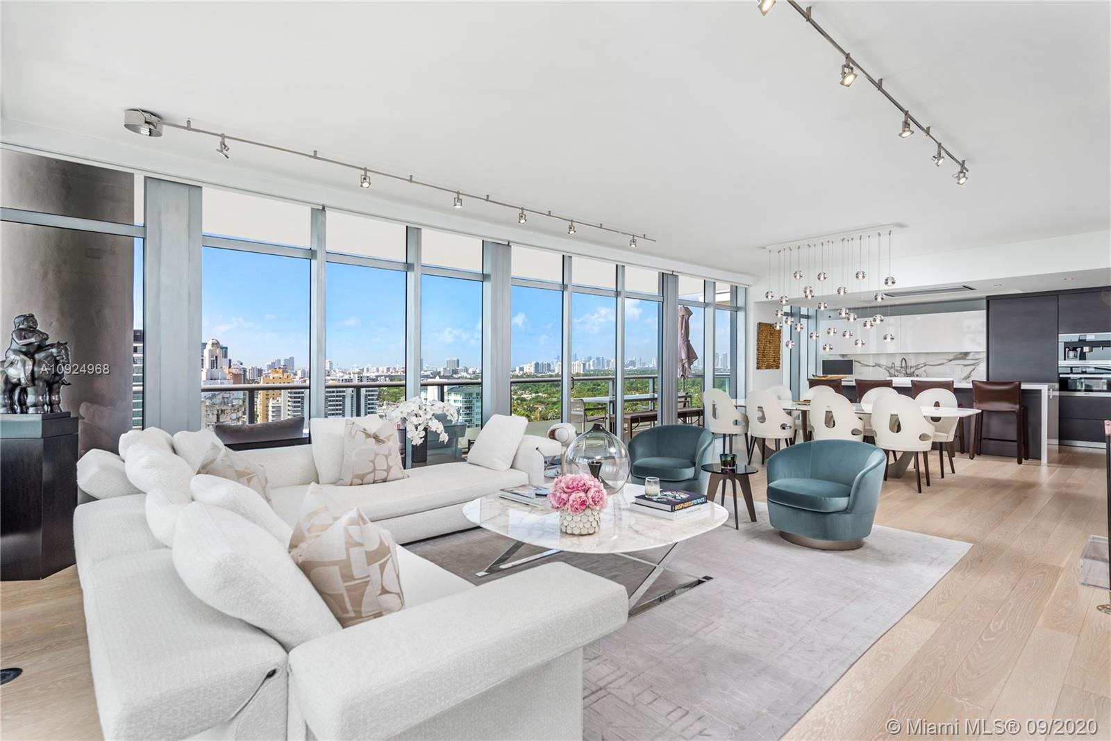 Impeccably designed & decorated Faena District residence at the Caribbean. This home features a masterful design and unobstructed views of the Ocean, City, and Downtown Skyline. Boasting 2,326 interior SF with two massive wrap-around terraces totaling 842 SF, this home features 2 beds + den (originally a bedroom), & 3.5 baths. The private master suite features a magnificent book-matched marble bathroom w/ large walk-in steam shower, and direct terrace access. Highlights include: wired smart home system, electric & silent shades, Ornare closets, Miele & SubZero appliances in the Eggersman kitchen, in-wall speaker system, personal wine cellar & cigar storage, artwork display lighting, & light wood flooring indoor & out. This residence is ideal for art lovers, world travelers, and families.