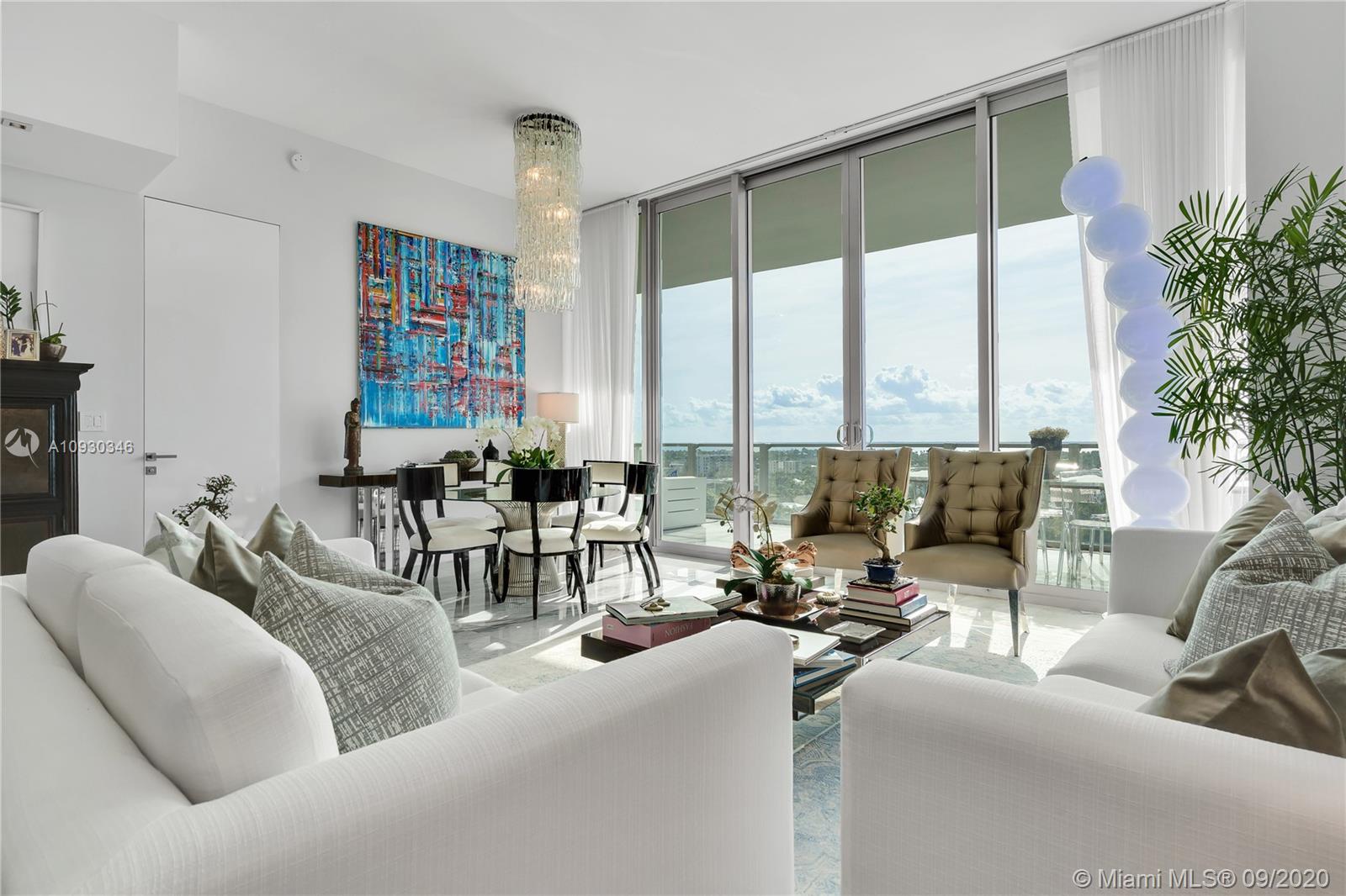 Immaculate Lower PH at exclusive beachfront Oceana in Key Biscayne. Private elevator opens to one-of-a-kind 3BR + Staff, 4 full BA, 1883 sf unit w/ 11’ft ceilings, high impact windows & 48x48 Carrara marble floors & integrated speakers throughout. Breathtaking views of Biscayne Bay & Miami Skyline! Unit is fully automatized w/ Control4. Kitchen features long island w/ Miele appl. & wine cooler. Den boasts drop down TV. Master BR features two walk-in closets, Master Bath w/ natural light & built-in TV in mirror. Remodeled private lobby & glass door that opens to unit, new A/C, linear A/C ducts, tinted film on all windows. Oceana offers grand pool & lap pool, al-fresco restaurant, tennis court, gym & spa, kids play room, party & media rooms, putting green & volleyball on 500 ft private beach