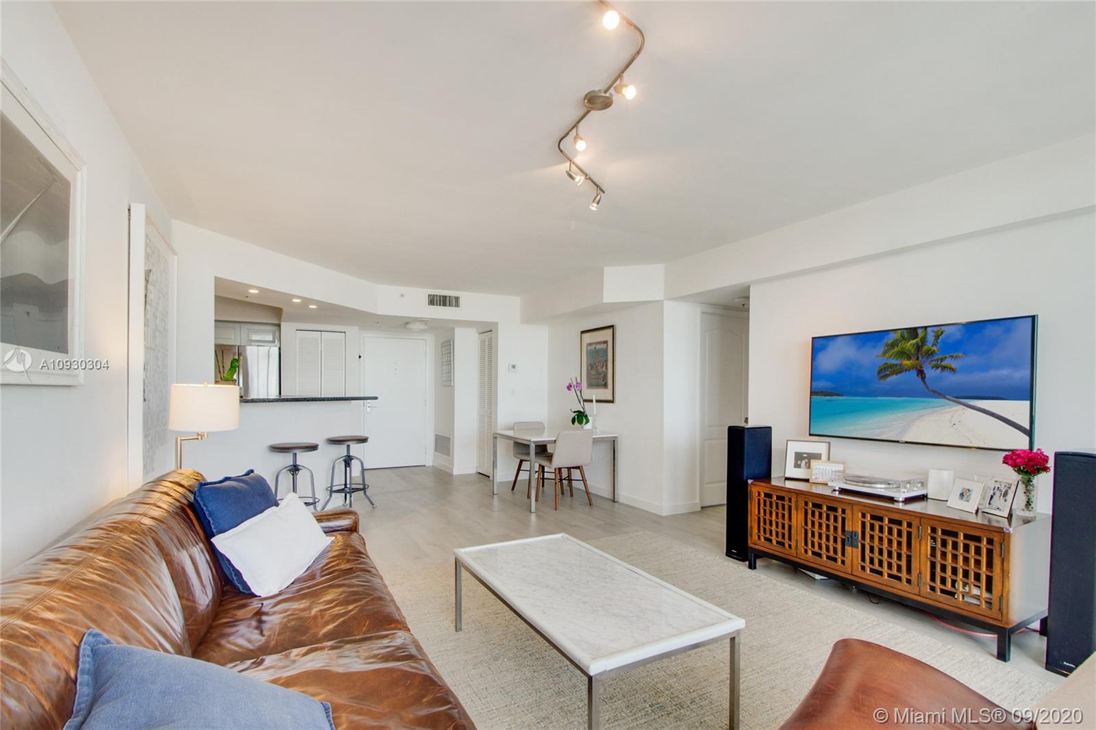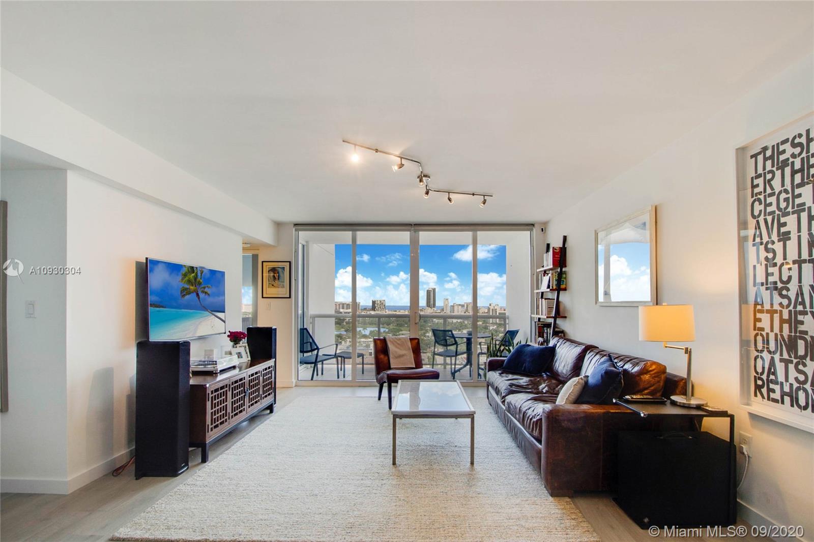Enjoy unobstructed sunrise and sunset island views from this NE corner unit perched on a high floor with 2 private balconies. Ultimate serenity is yours with hurricane impact sliding glass doors and windows (unique for this building) providing noise reduction and safety from storms. Situated in the heart of Sunset Harbour, this upgraded unit provides its owner with a true walkable neighborhood full of locally owned boutique shops, restaurants, and fitness clubs as well as Fresh Market, Trader Joes, Publix markets. Water sports, yacht club, and boating are at your fingertips from this full service building with 24 hour concierge, valet, security, gym, sauna, club room and 2 pools.