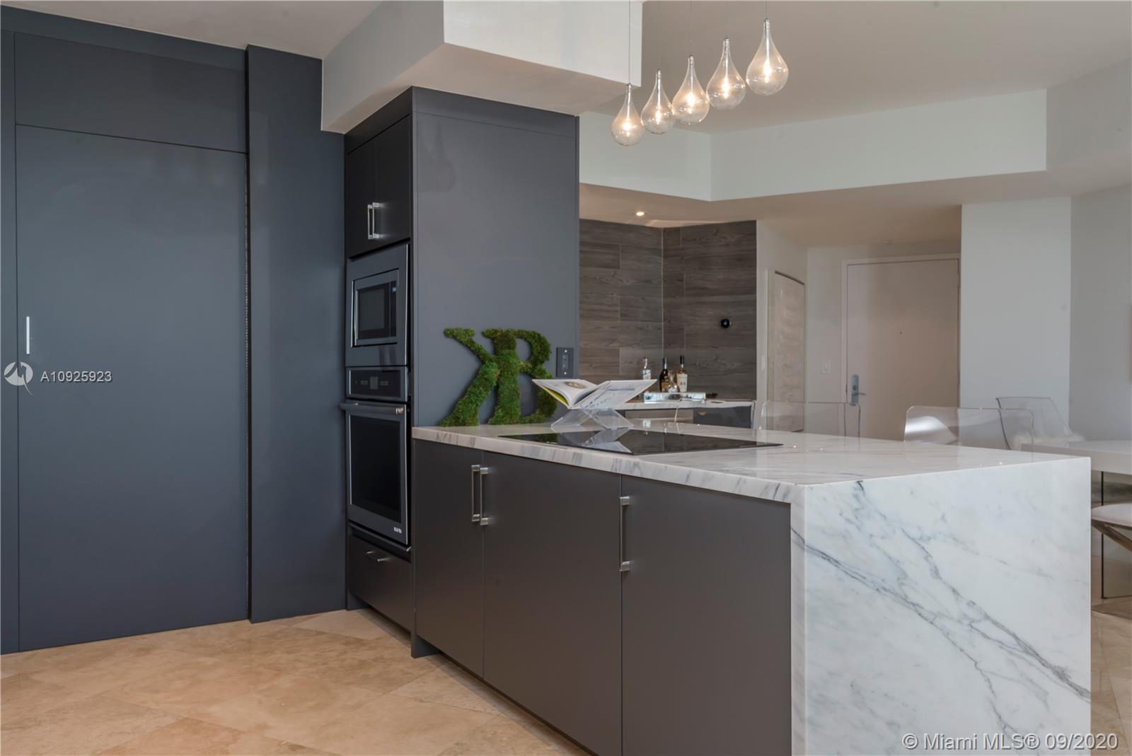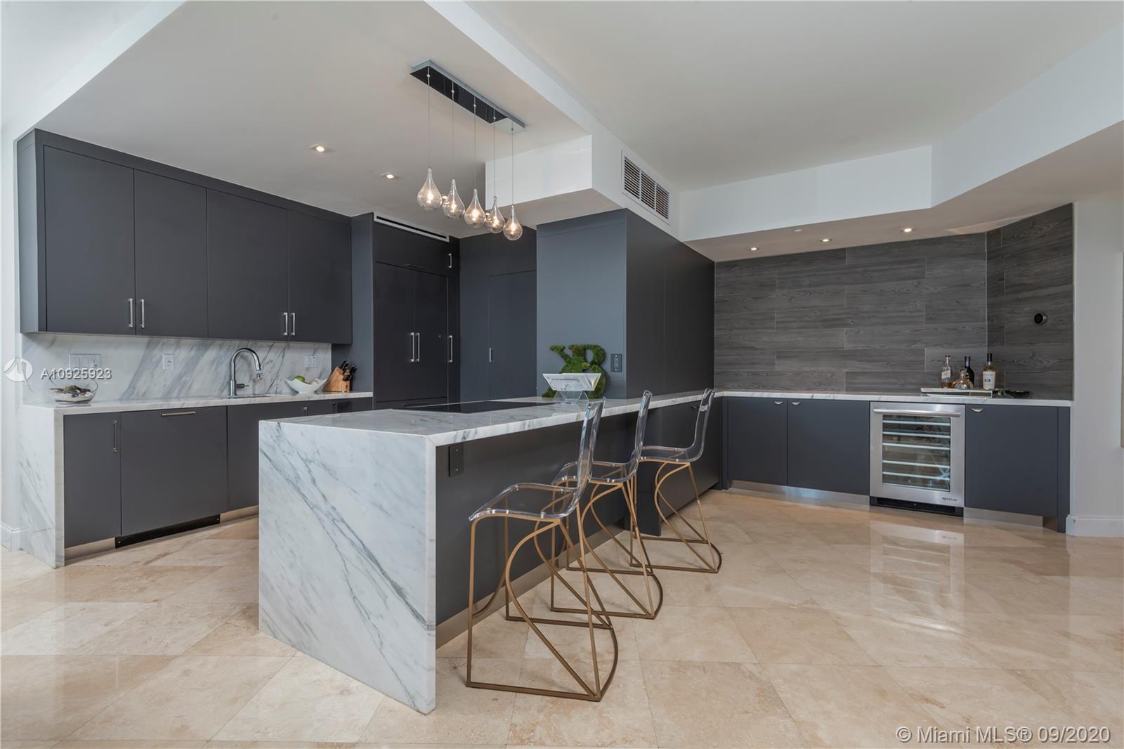 This fully renovated, designer finished residence has impeccable features throughout with an open floor plan perfect for entertaining. 1,658sqft 2-bedroom and 2-bathroom unit with completely upgraded, custom kitchen and appliances. Waterfall marble countertop, which extends to a custom bar area with a built in wine fridge. 3 walk-in closets in the master plus whirlpool tub. Expansive custom built-in storage throughout. Large balcony with great ocean and bay views. Enjoy world-class amenities including a resort-style pool, tennis court, state of the art fitness center, spa and more. Murano Grande is a premier luxury building in the South of Fifth neighborhood and offers fantastic walkability to nearby beaches, shops and the best restaurants Miami Beach has to offer.