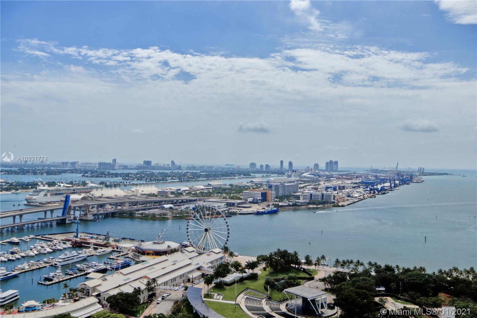 Gorgeous water views overlooking Biscayne Bay from this east facing 33rd floor condo. The unit is a studio, but spacious enough to be turned into a 1bd if desired. Vizcayne condos offers a great downtown location and unmatched amenities in this price range. Reliable tenant makes this a true turnkey investment. Flooring was upgraded (ceramic tile) in March/ April 2020.