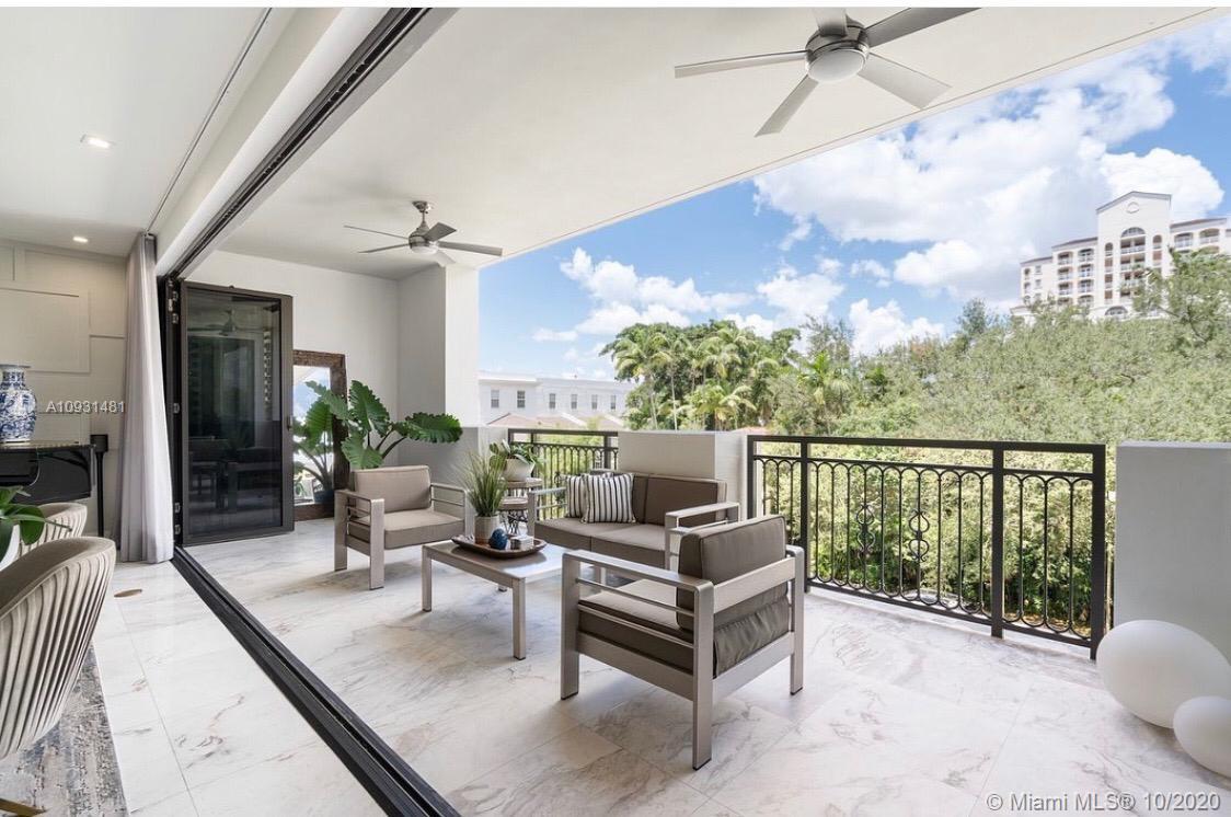 Spectacular designer completed 2 bedroom 2.5 bathrooms, den unit in the exclusive Biltmore Parc. Gorgeous views of "The City Beautiful" from every terrace and bedroom window over looking lush green avenues. Grandiose main terrace with nana bi-folding walls integrating the airy outdoor space with the open living and dining areas. Owners spared no expense with the finishes of this unit, carefully selected by a team of designers. Beautiful built-ins and walk in closets, large laundry room, grand den that can be converted to a third bedroom or an at home office combined with entertainment room. Walking distance to Miracle miles and Downtown Gables. A must see!