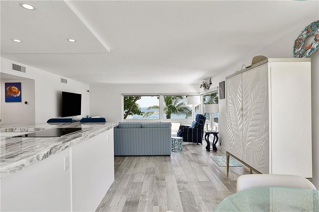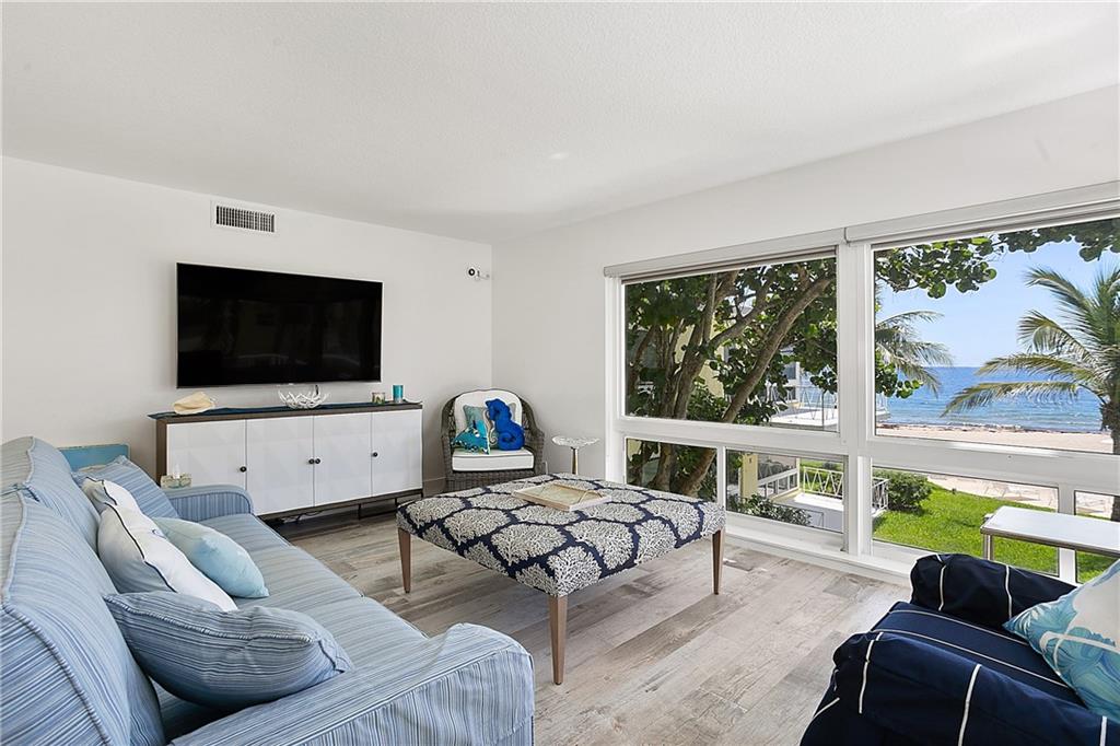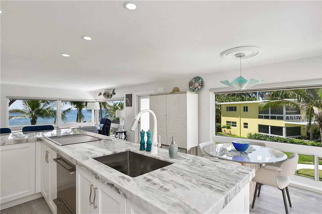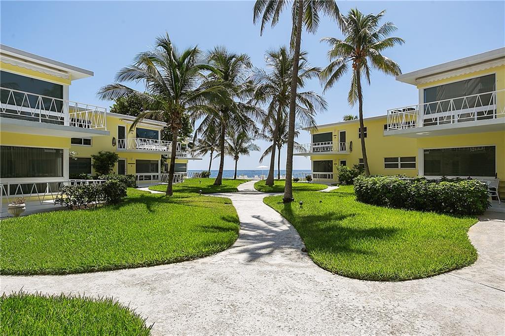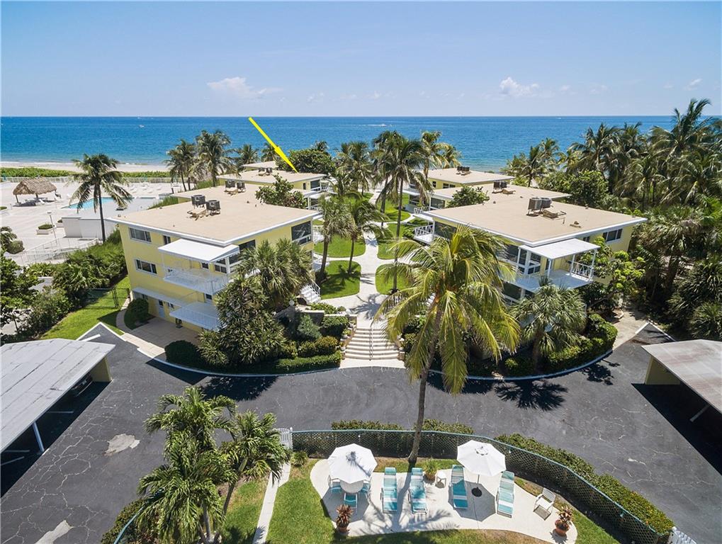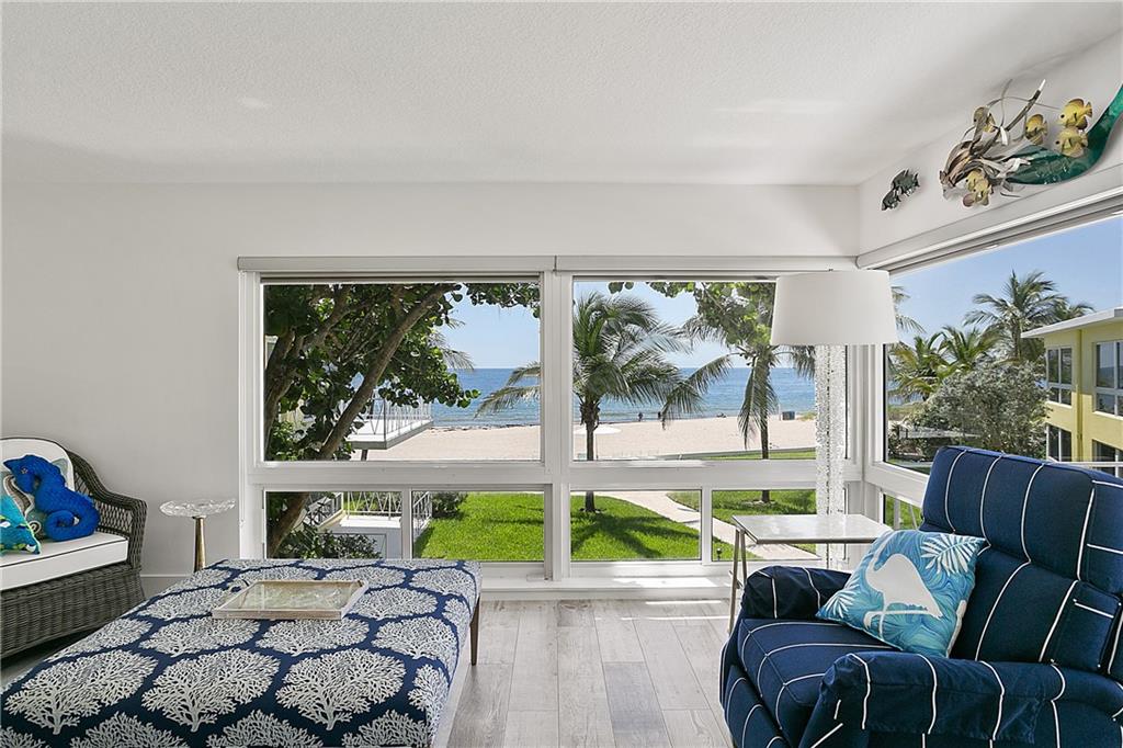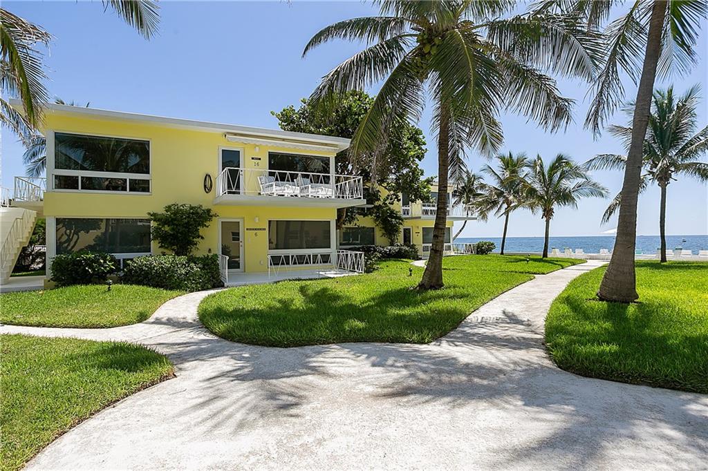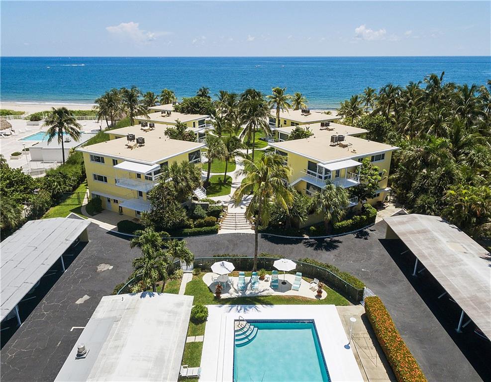 THE WAY WE WERE... True Old Florida Charm nestled Directly-on-the-Sand with MAGNIFICENT OCEAN VIEW! FABULOUSLY UPDATED 2-bdrm/2-bth co-op in secluded enclave of only 14 units. Get-out-of-the-cold Second Home? Or Tropical Residence in favorable low tax state! All New Interior with Top-line Appliances (Bosch, Fisher Paykel, Kraus), New Elec/Panel, State-of-Art Bath Fixtures; Driftwood Porcelain Flooring; Impact Windows; New Roof/Exterior Paint 2019; Covered Parking; Heated Pool in the Sun and Swaying Palm Trees all on one of the Nicest Beaches in the County - just minutes to Laud-by-the-Sea and Atlantic Blvd shops, restaurants and piers. BEAUTIFULLY FURNISHED Casual Florida Lifestyle. Concrete restorations to balconies, landings, stairs already completed 2017/18. Onsite Maint/Mgr, too