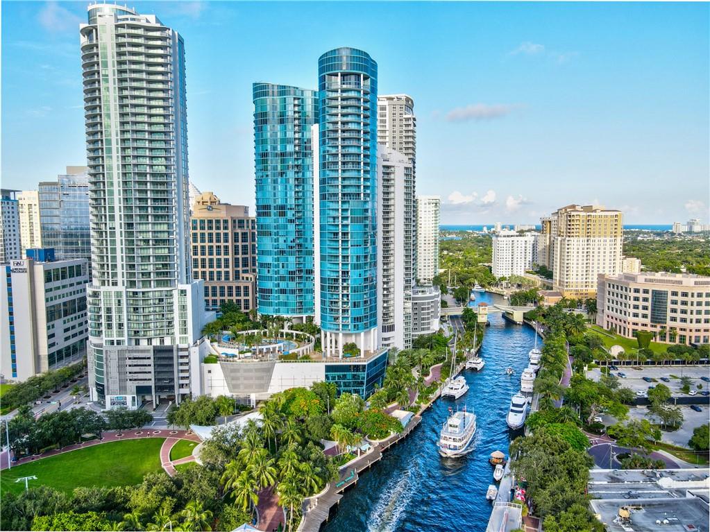 Get ready to be WOWED! This Stunning 3 bed/3 bath condo is the Columbus model floor plan. Of all of the floor plans this is one of the best! A coveted location in the building, the 04 stack is rarely available. This stack looks right down onto the New River. You are so close your can almost reach out & touch the boats. Private elevator opens directly into your double door foyer where you are greeted by floor to ceiling windows throughout. Beautiful kitchen, equipped with Subzero refrigerator, subzero wine fridge, island & ample cabinet space. Newer washer and dryer in separate laundry room. Brand new A/C, less than a year old. 5 Star living. Include new lobby and common areas designed by Steven G. world class fitness center, tropical pool with Cabanas & BBQ areas concierge, valet parking.