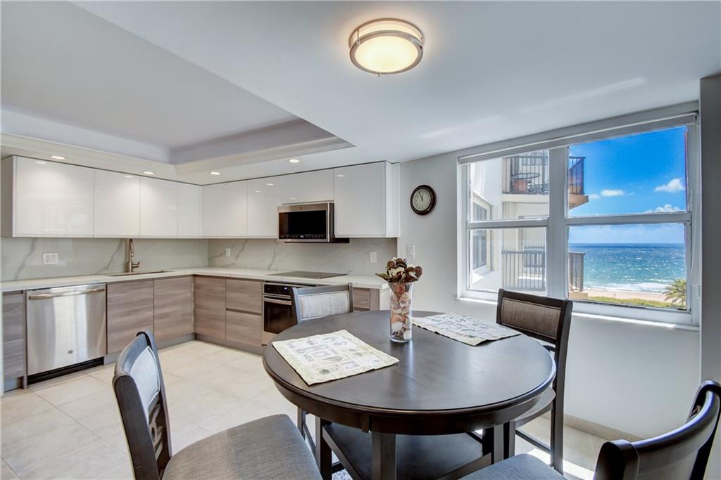If you are looking for space, you found it! This Oceanfront 3 Bedroom/3.5 Baths Condo offers 3,350 square feet of open living space. Direct Ocean views from the kitchen and living room. City Views from the Bedrooms. The Chef's kitchen features custom Cabinets, stainless steel appliances and beautiful Calacatta Quartz counter tops. Porcelain floors throughout the living areas and newer wood floors in the bedrooms. Enjoy Resort style amenities like the heated pool w/outdoor kitchen, gym, tennis & pickle ball, fire pits and putting green. 24hrs security, garage parking and plenty of guest parking. Close to excellent Restaurants, shops and the center of Lauderdale by the Sea.