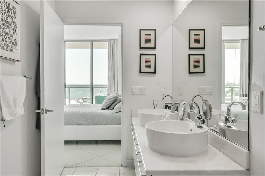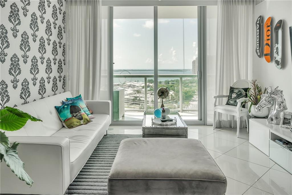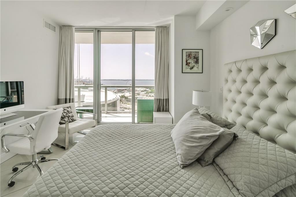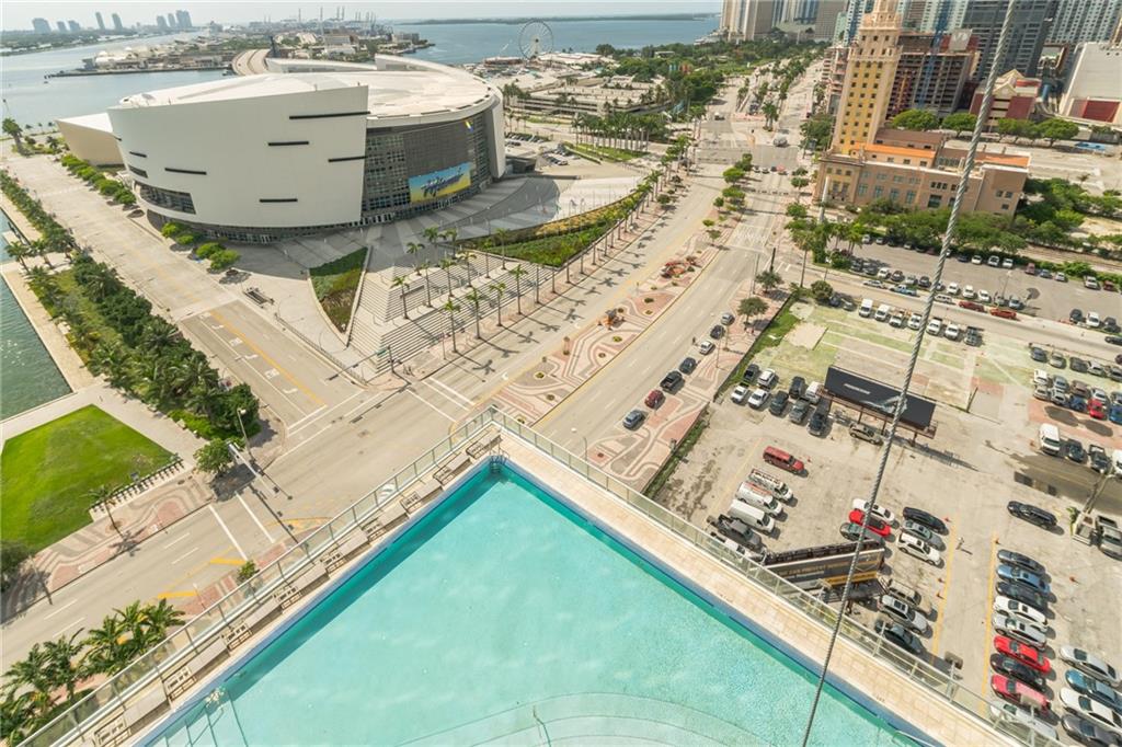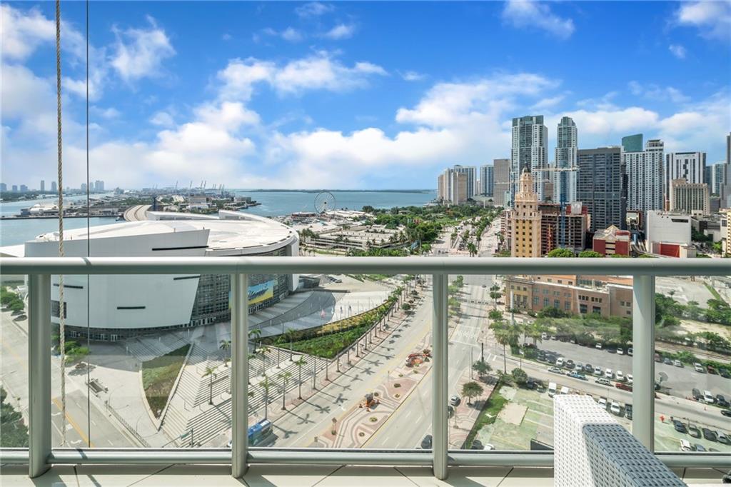 One of the only units in the building 2bed/2bath+den that can be used as a 3rd bedroom, home office, or extra dining room. Enjoy your stunning direct waterfront from the 21st floor. Relax on your large balcony enjoying the sunrise, fireworks and lights of the ferris wheel. The Hurricane impact windows brings a lot of natural light. Well designed open kitchen concept with granite countertop, plenty of cabinets, white marble floors throughout. Great location, right next to American Airlines Arena, Bayside Marketplace, restaurants, Publix, whole foods, pharmacies, restaurants, bars, M. Ferré Park & Bayfront Park. Complex w/2 pools the Sunrise and Sunset Pool, 2 hot tubs, a gym with a gorgeous view of the bay, volley ball court, putting green, valet, 24 hours security, concierge & more.