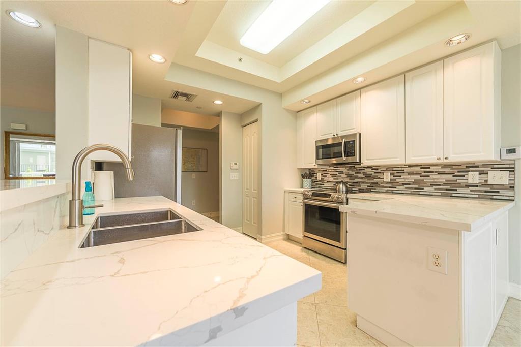 Beautifully designed spacious three bedroom two bath condo built in 2007. Kitchen has custom cabinetry, quartz countertops, newer appliance package and large dine in kitchen area. Formal dining area with tray ceiling. Master bedroom is oversized with tray ceiling and custom closet cabinetry. Recently remodeled both bathroom shower areas. Very large laundry room with laundry tub. Porcelain tile throughout the unit and newer A/C 2019. Private beach access directly across the street. Close to fine dining, upscale shopping, and only 30 minutes from International airport. 30lb weight limit on pets.