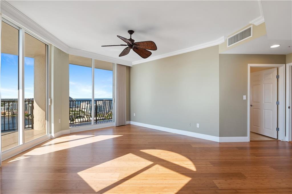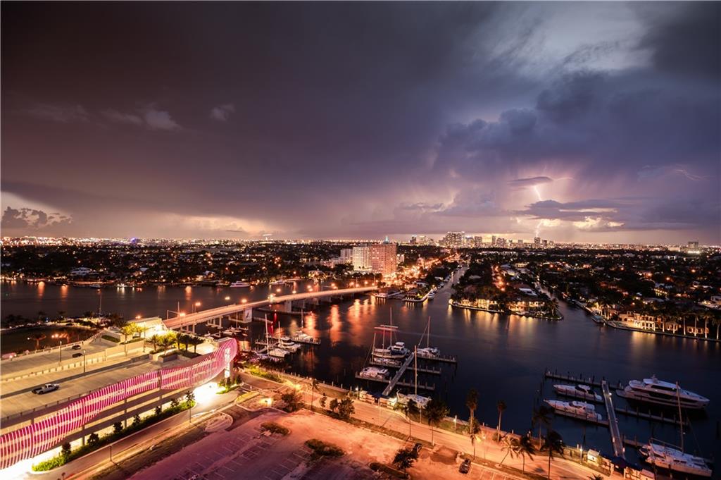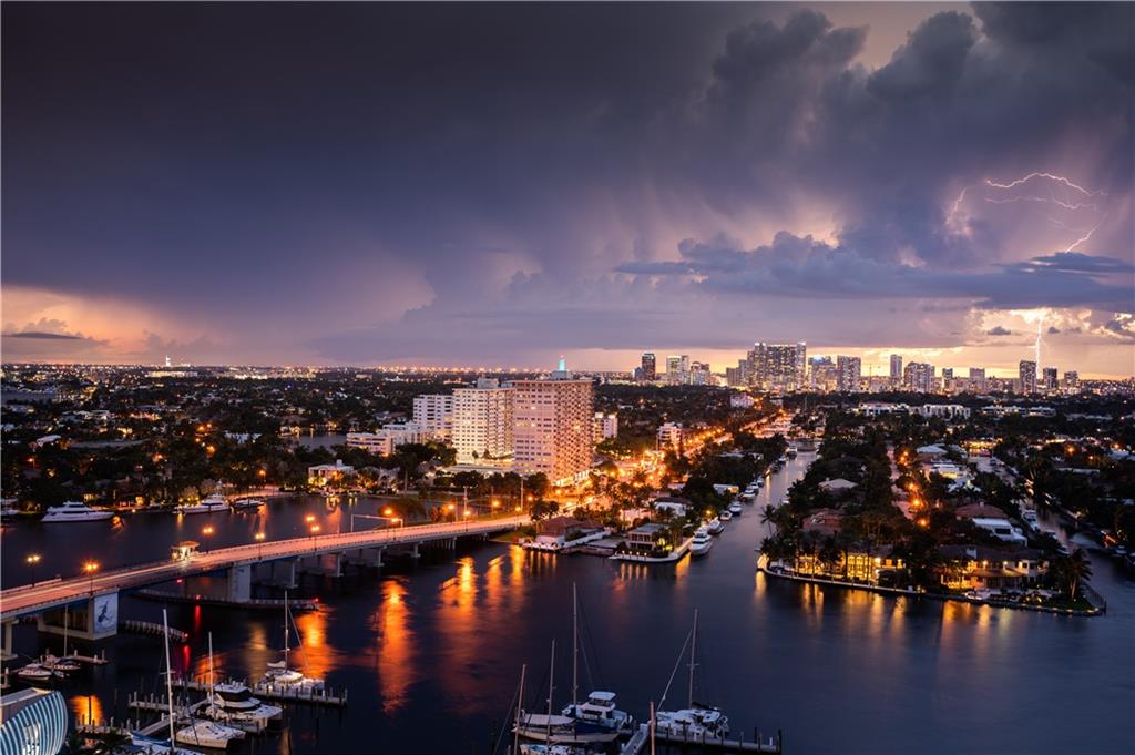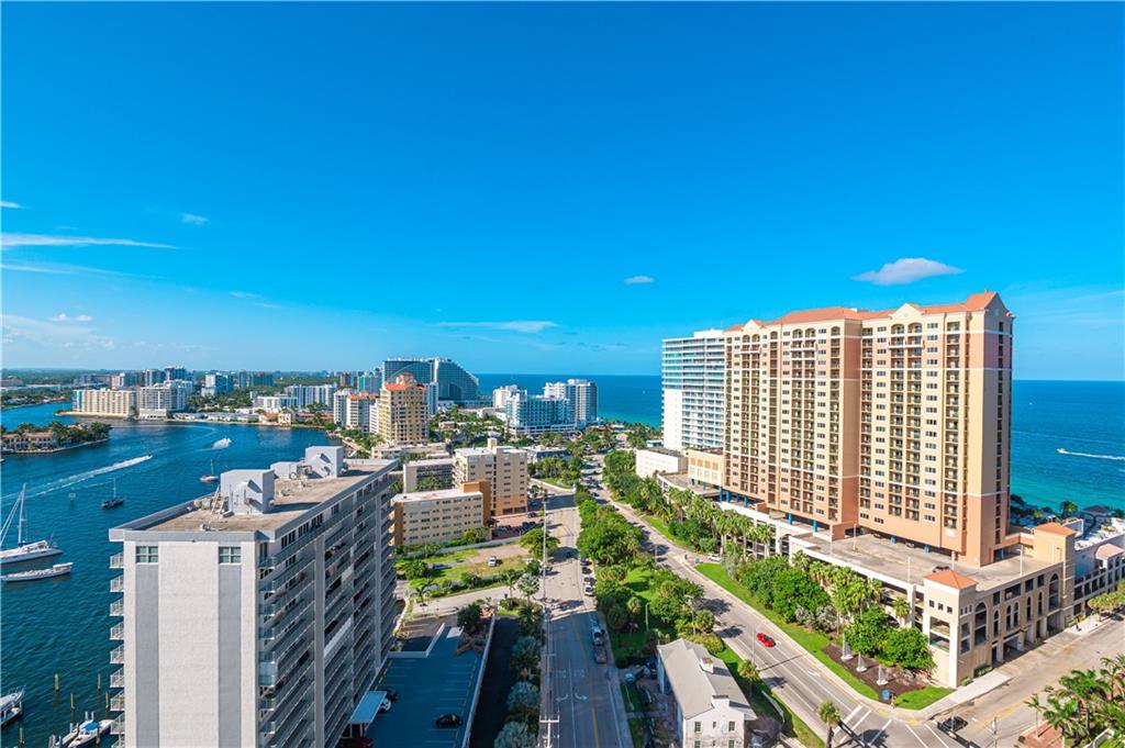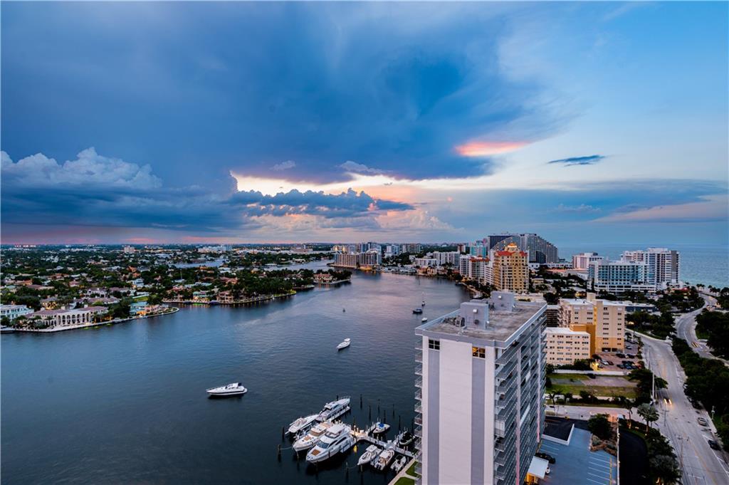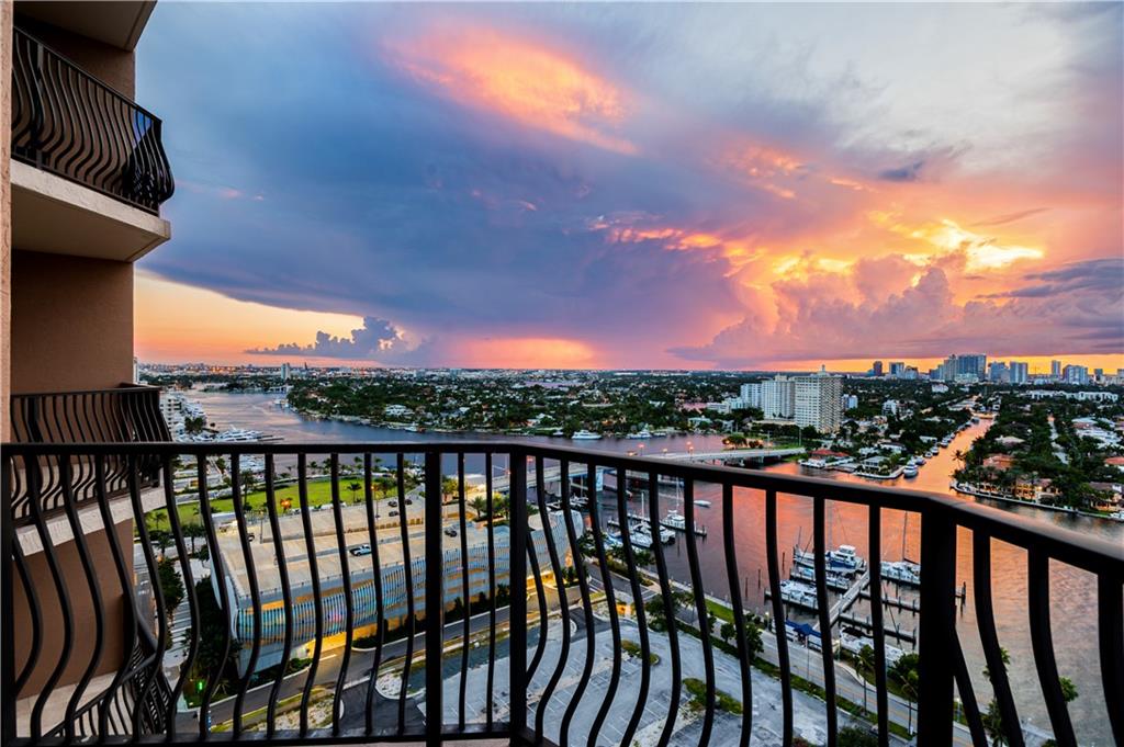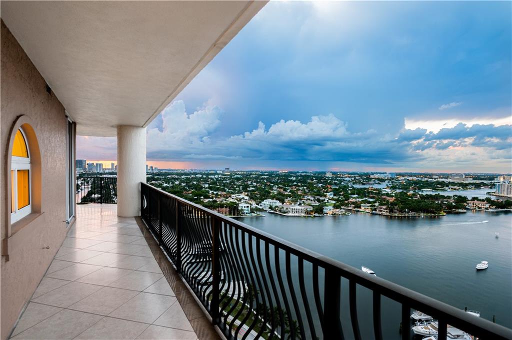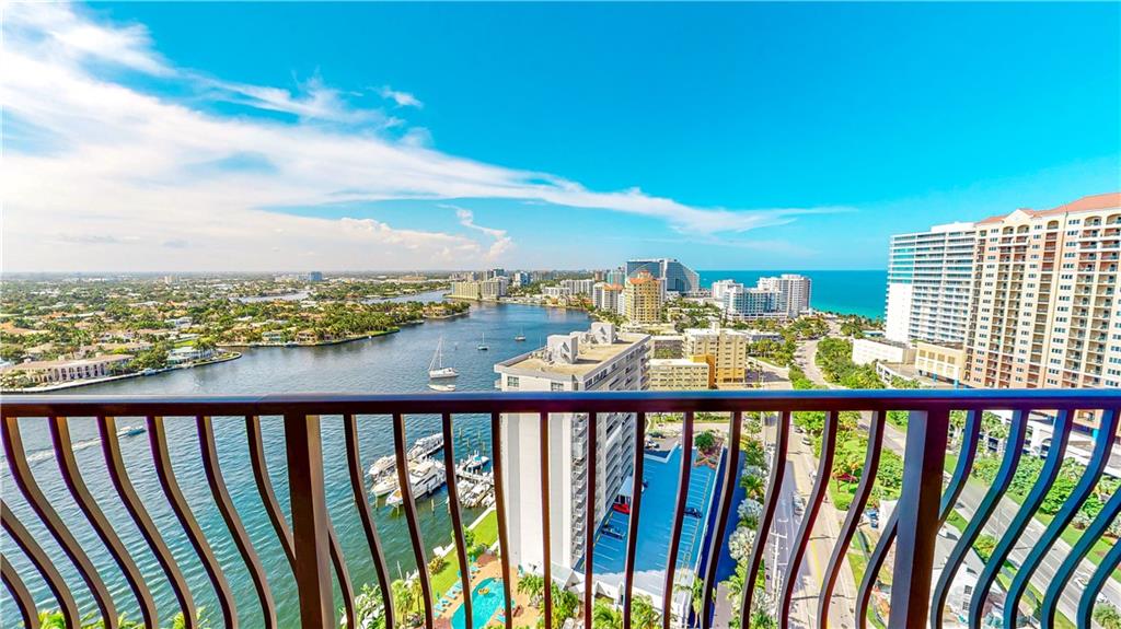 Do not miss this rarely available corner suite at Jackson Tower with breathtaking 180 degrees views of the ocean, Intracoastal and the Las Olas isles. The downtown Fort Lauderdale skyline glitters to the west. The wide, wrap-around balcony provides unobstructed views of sunsets and the boat parade below. Features include a private elevator lobby, a spacious and open plan, generous closets, a well appointed kitchen and a brand new A/C system. TWO GARAGE SPACES are included. Jackson Tower is a full-service building with 24-hour security a gym, heated pool, outdoor grill area, billiards and a club house with a bar for entertaining your guests. Fort Lauderdale's beach is a few hundred feet away. Downtown, The Brightline Train, Las Olas shops and Fort Lauderdale's airport are only minutes away.