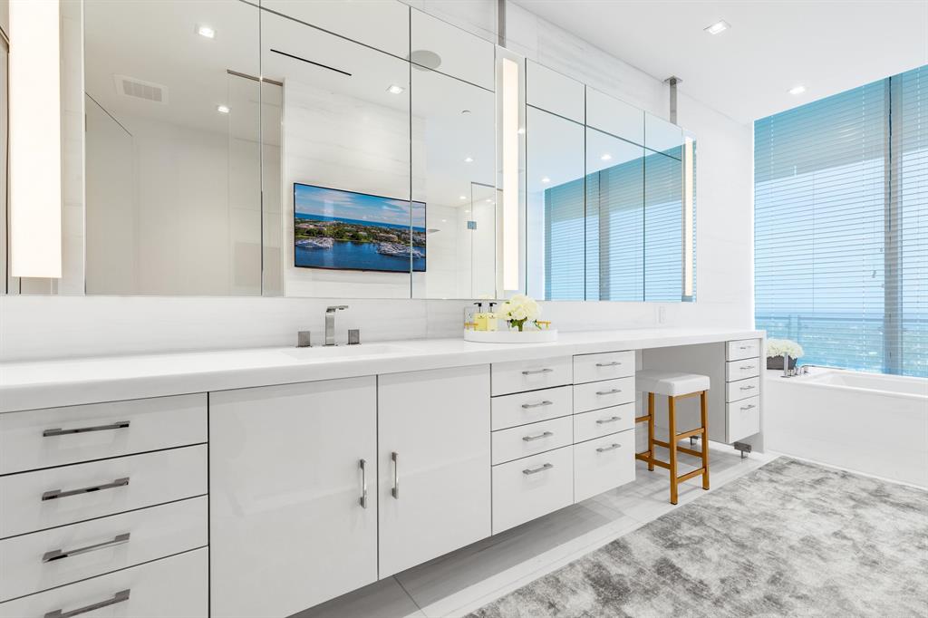 The most spectacular condominium available at The Bristol and arguably throughout South Florida. This Magnificent home in the sky has the most breathtaking panoramic ocean and intracoastal views. The entire residence facing East, North, and West has all floor-to-ceiling glass, including dramatic 11-ft. sliders and windows. This home was designed as a 4-bed/5.1-bath with an office and is designer decorated and offered fully furnished. Impressive 48'' marble flooring in the main living areas and gorgeous wood floors in the bedrooms. Spacious dual master closets and dual master baths with Dolomiti marble and stunning Italian Fantini fixtures. Beautiful open kitchen with Gaggenau gas stovetop, Calcutta countertops, & Snaidero cabinetry.